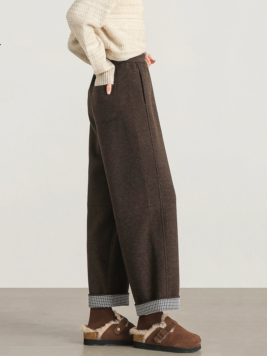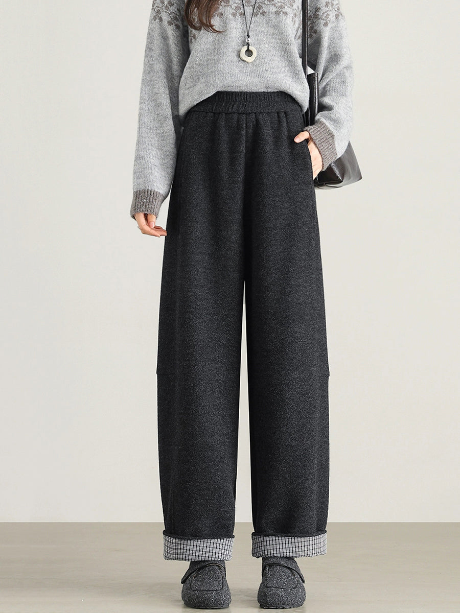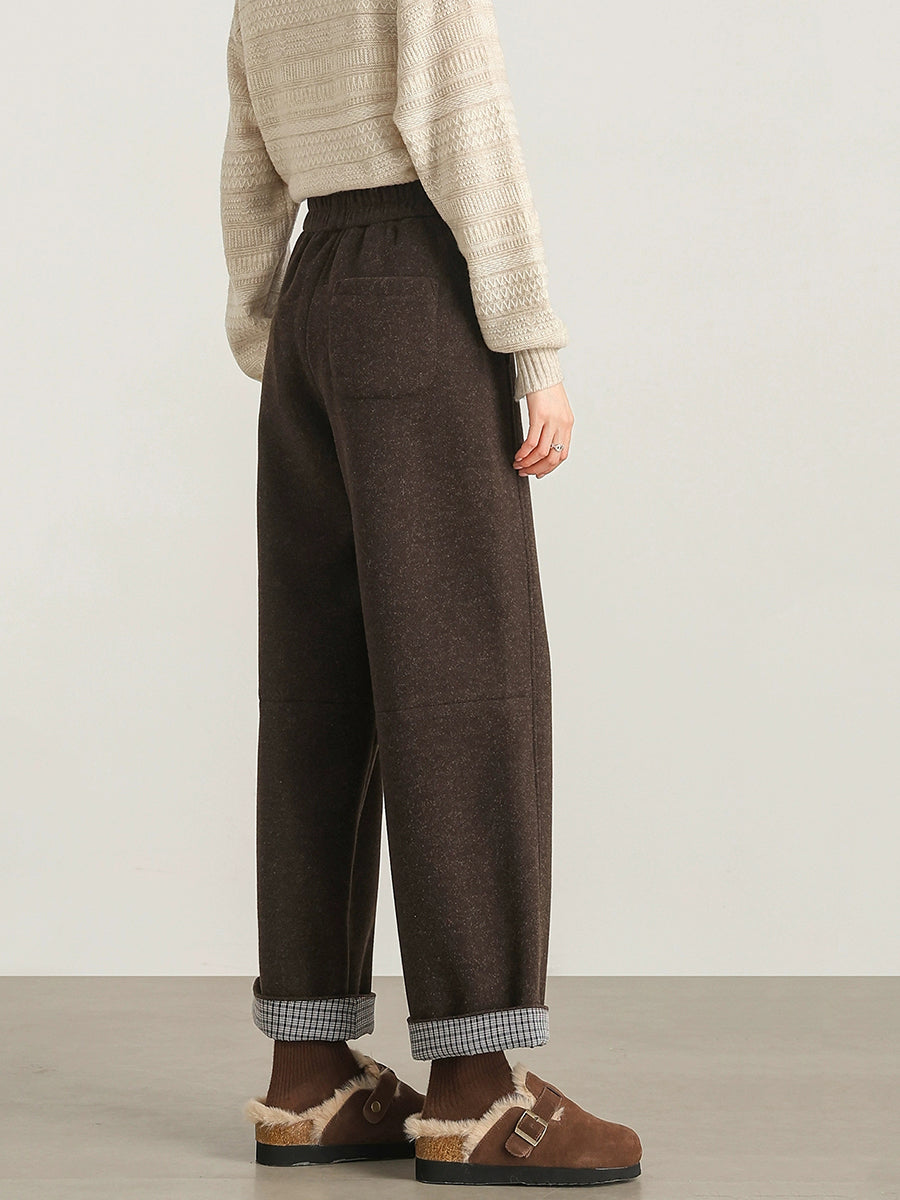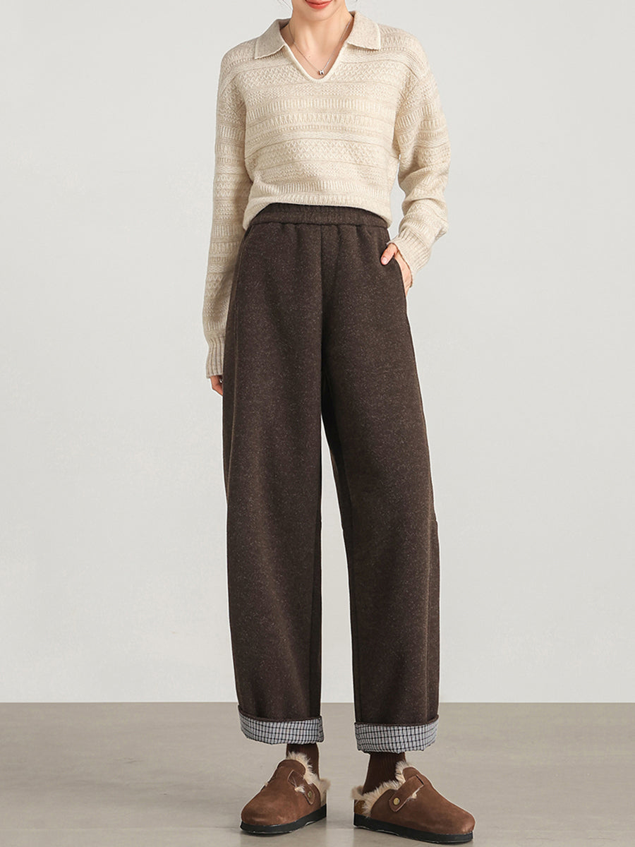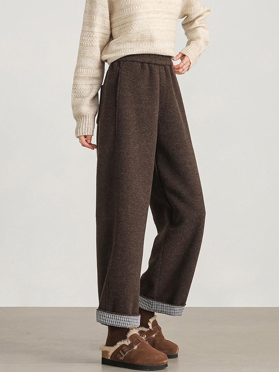 Women Winter Casual Pure Color Fleece-lined Straight Pants