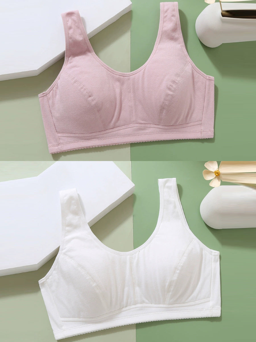 2 Pieces Women Artsy Pure Color One-piece Wireless Bra