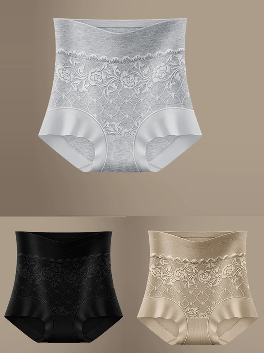 3 Pieces Women Artsy Flower High Waist Underwear