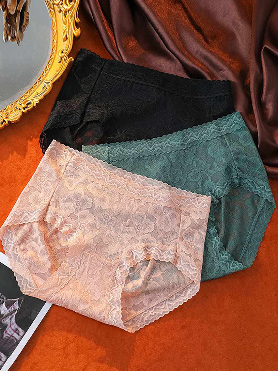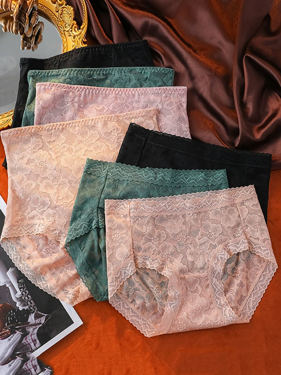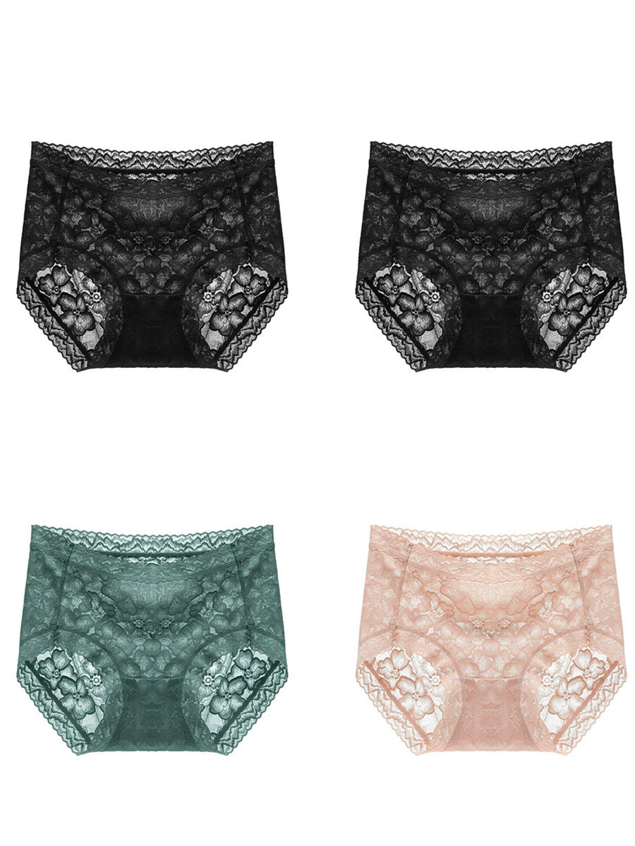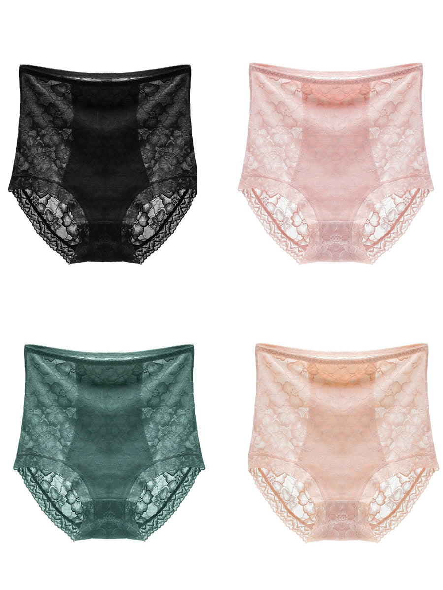 4 Pieces Women Artsy Flower Lace High Waist Underwear