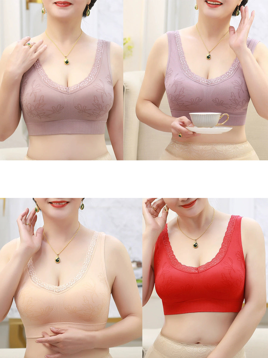 4 Pieces Women Casual Flower One-piece Wireless Bra