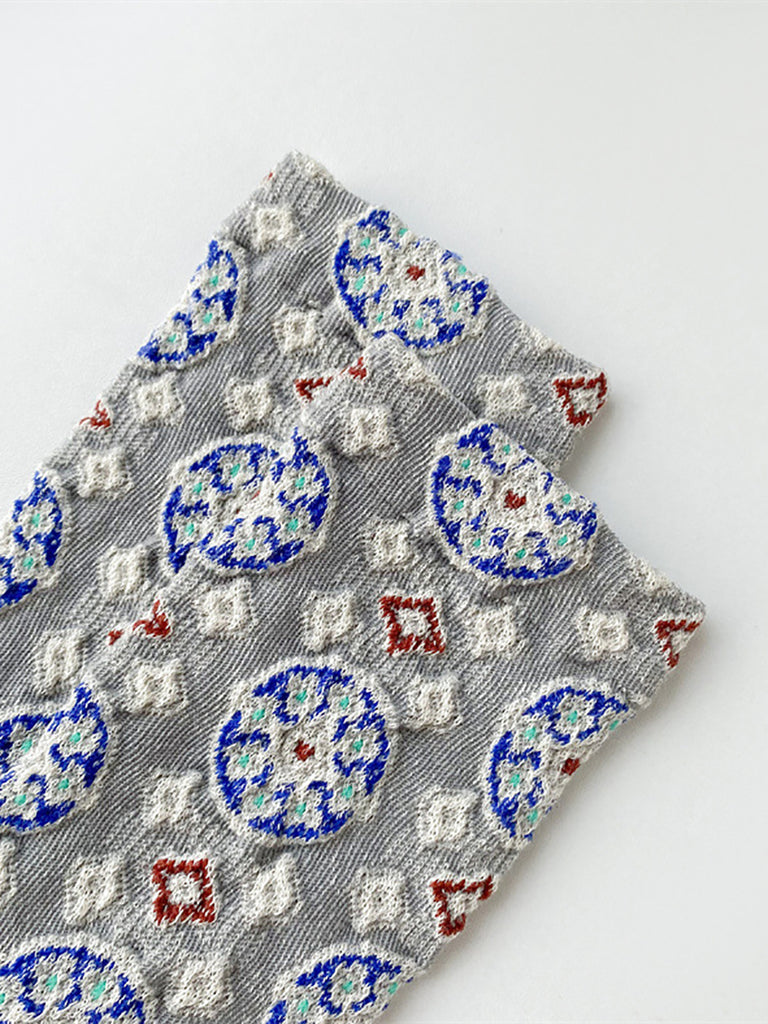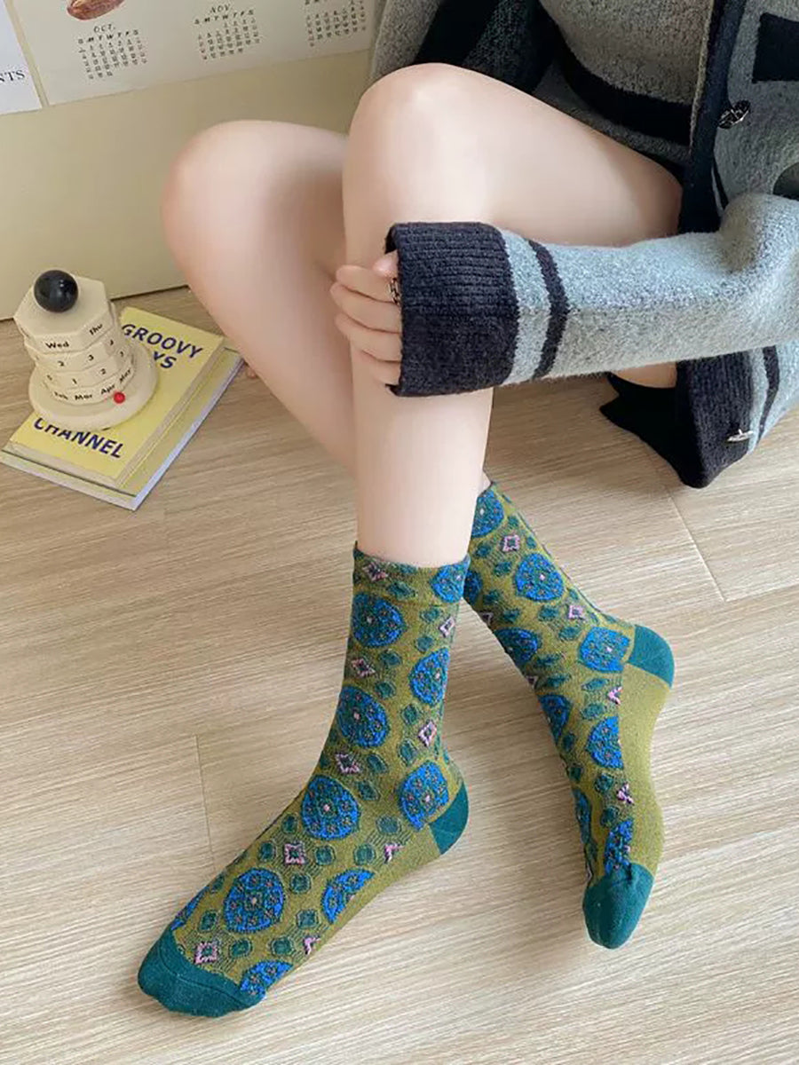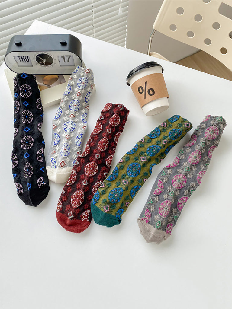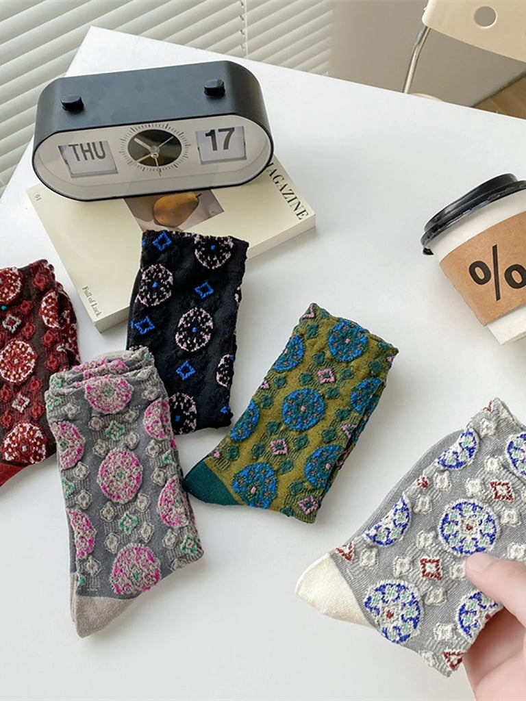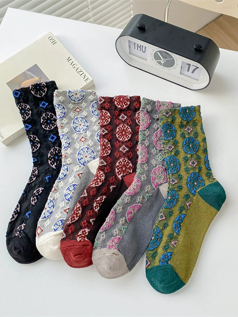 5 Pairs Women Vintage Circle Jacquard Cotton Socks