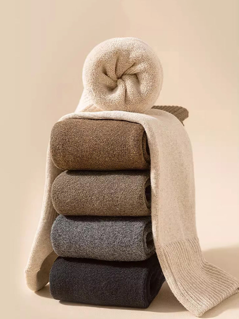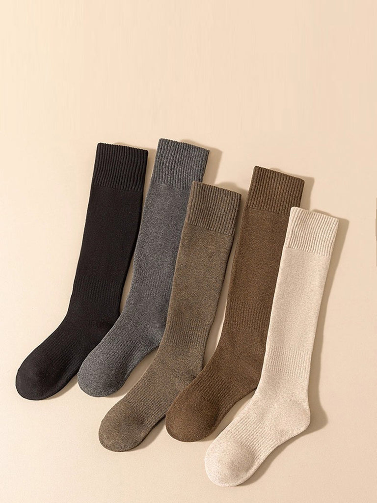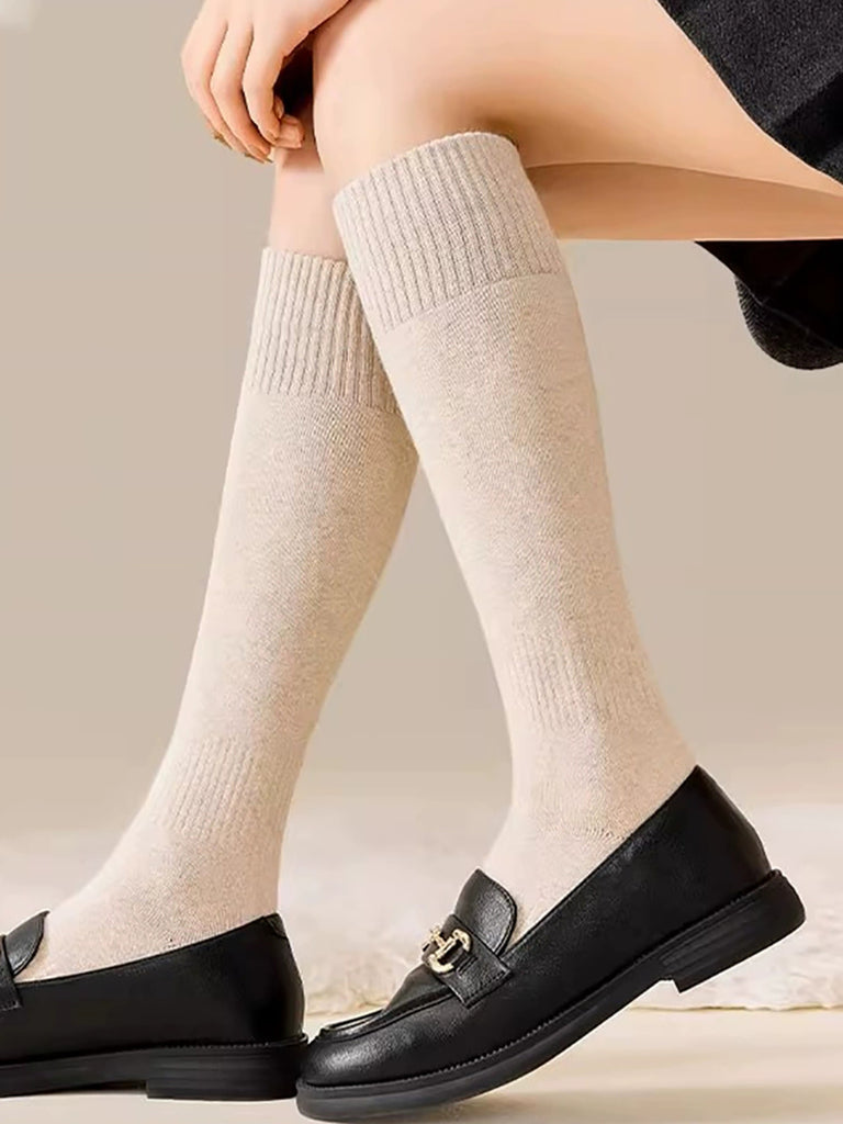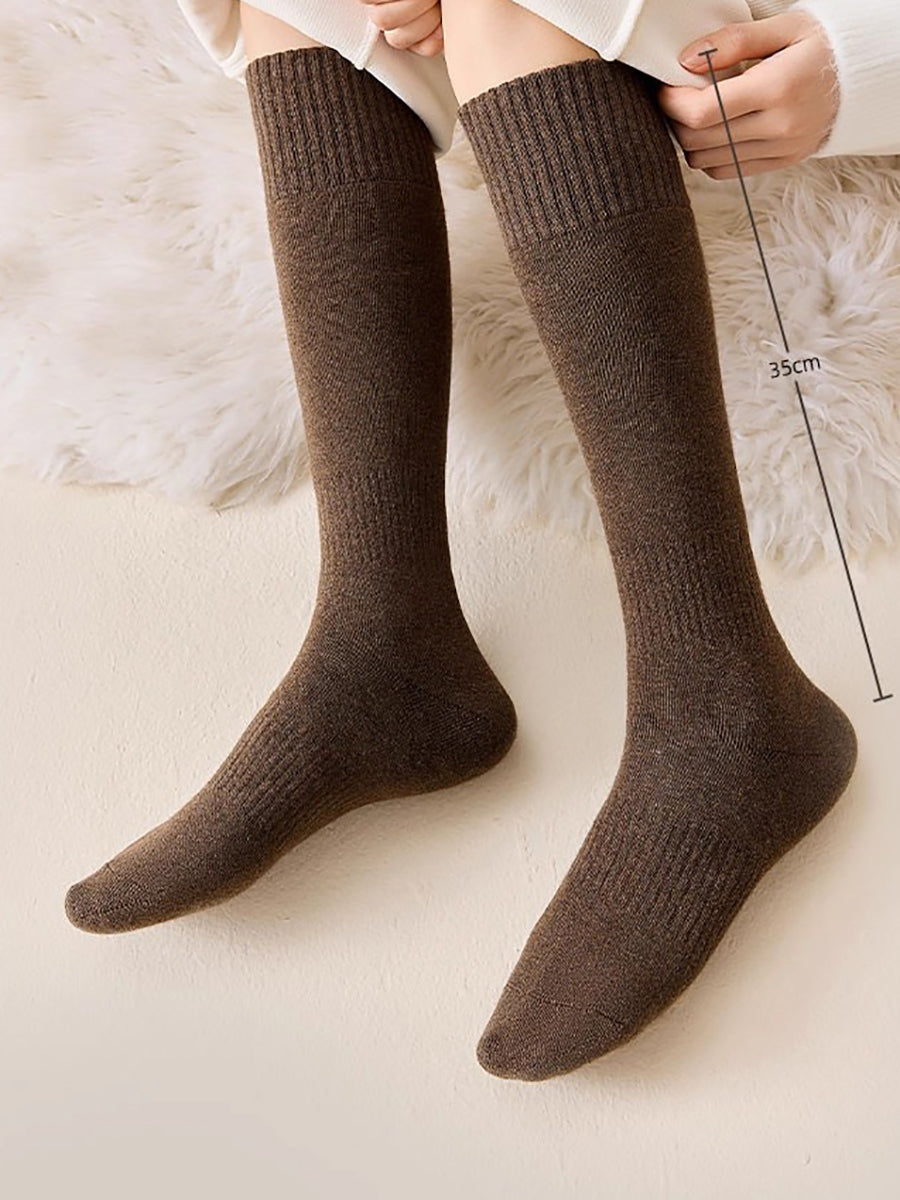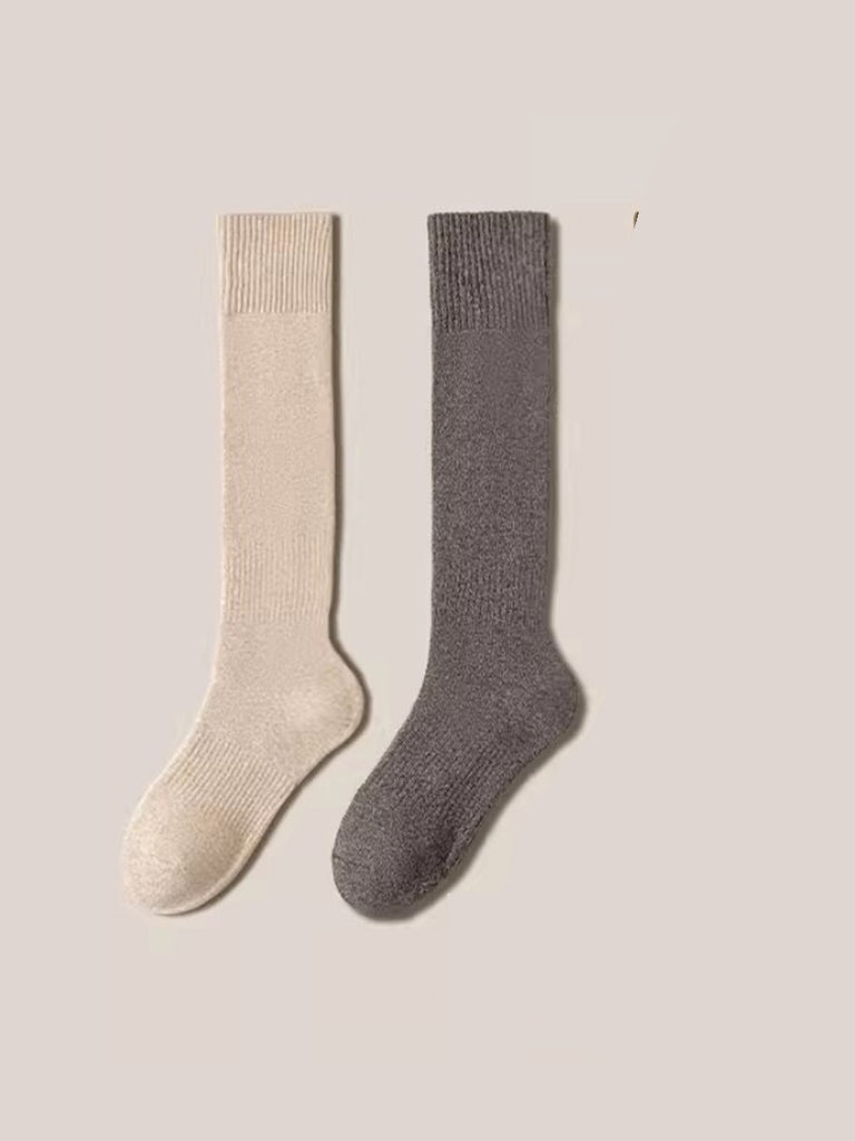 2 Pairs Women Winter Fleece-lined Thick Calf-Length Socks
