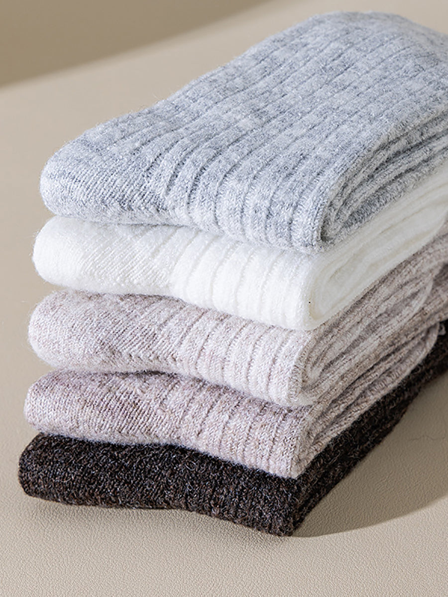 5 Pairs Women Winter Warm Pure Color Socks