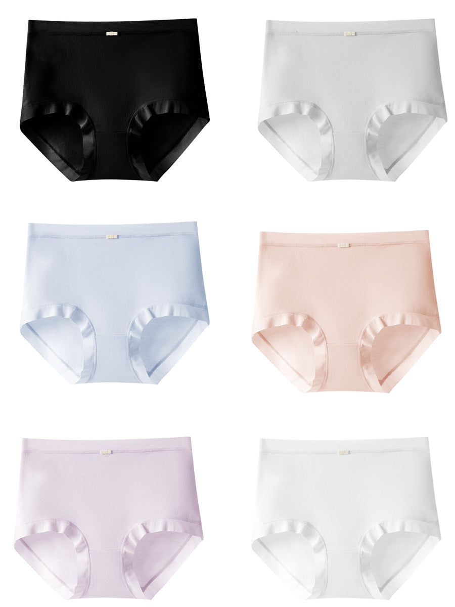 6 Pieces Women Pure Color High Waist Cotton Underwear