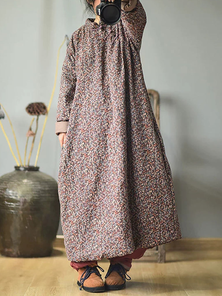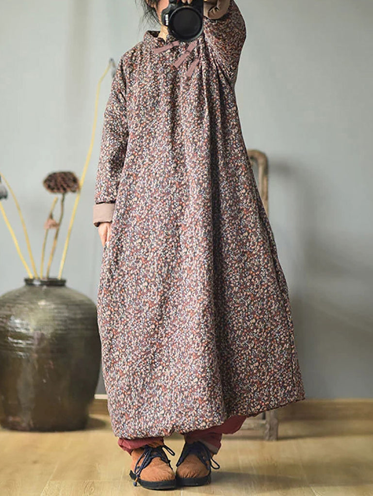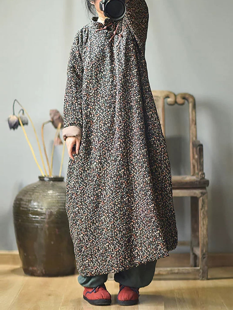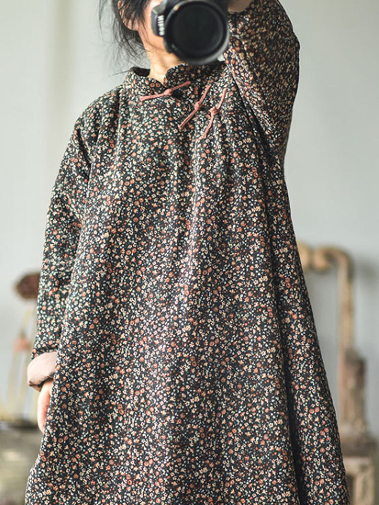 Plus Size - Autumn Women Loose Floral Cotton Dress