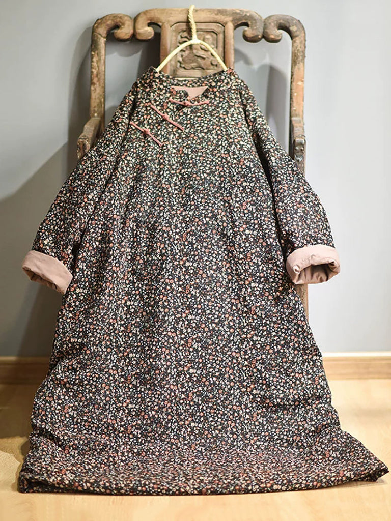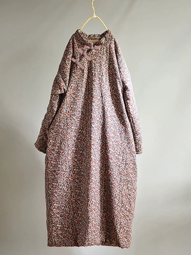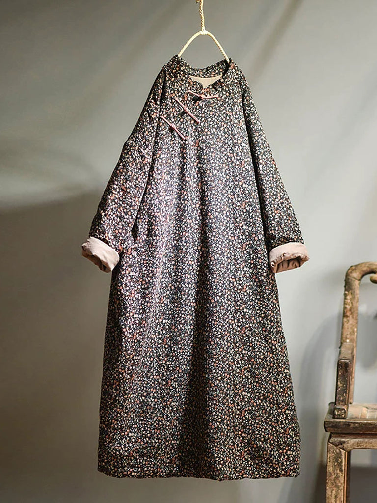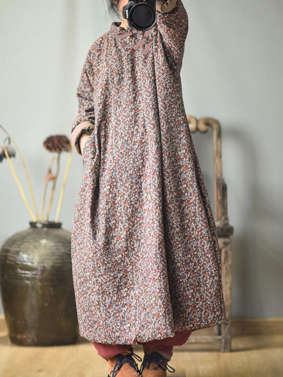 Plus Size - Autumn Women Loose Floral Cotton Dress