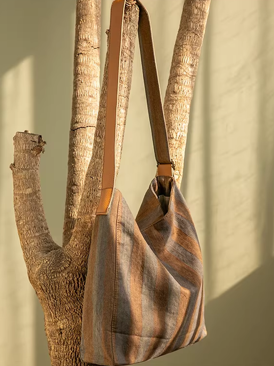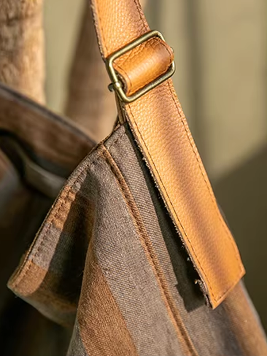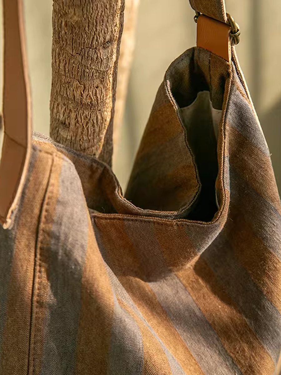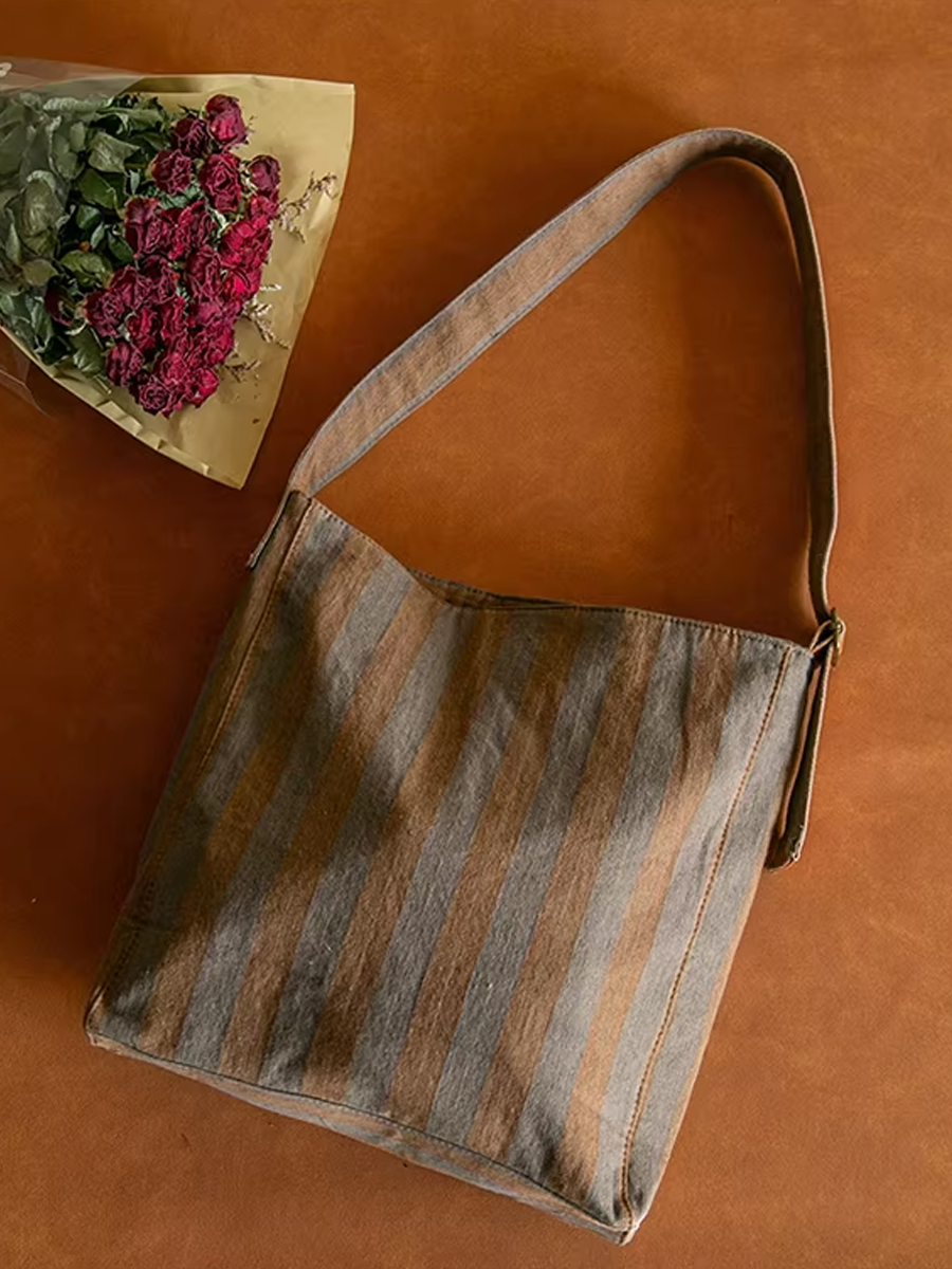 Casual Vintage Wash Colorblocking Stripe Canvas Bag