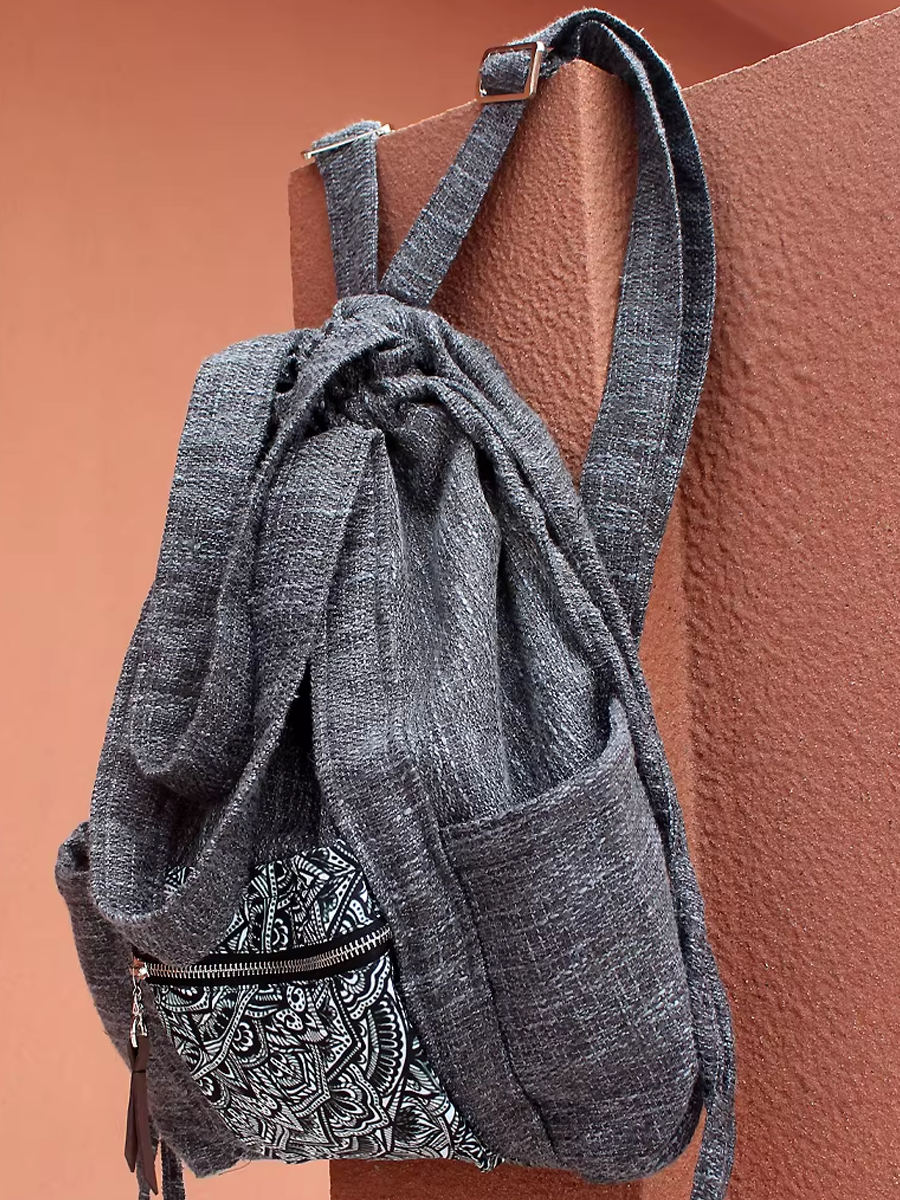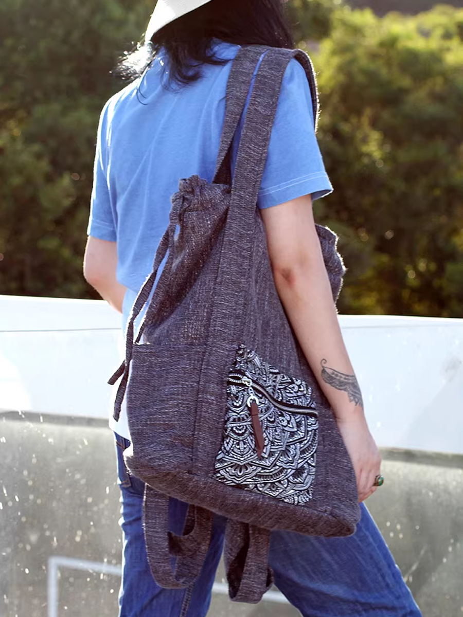 Ethnic Mori-style Spliced Drawstring Backpack Shoulder Bag