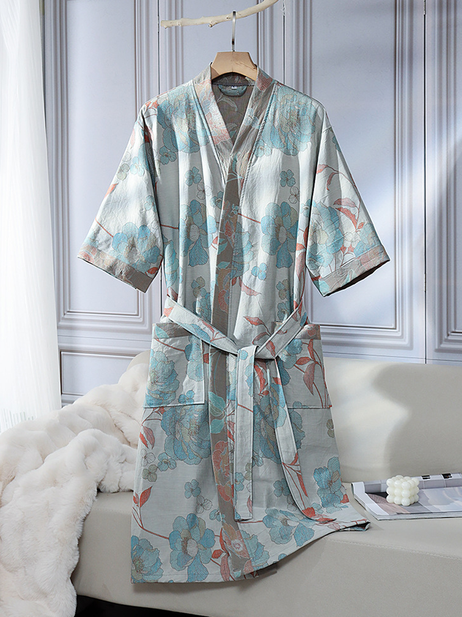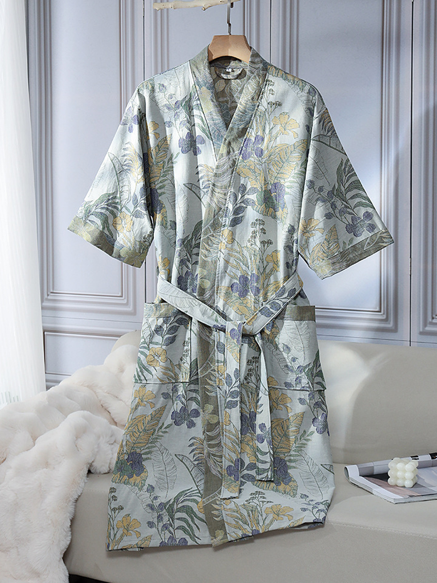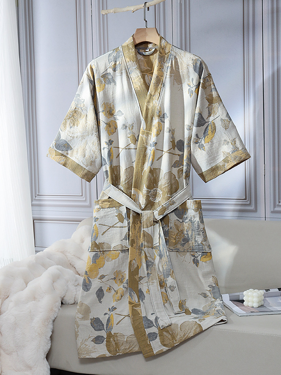 Floral Jacquard Cotton Gauze Bathrobe