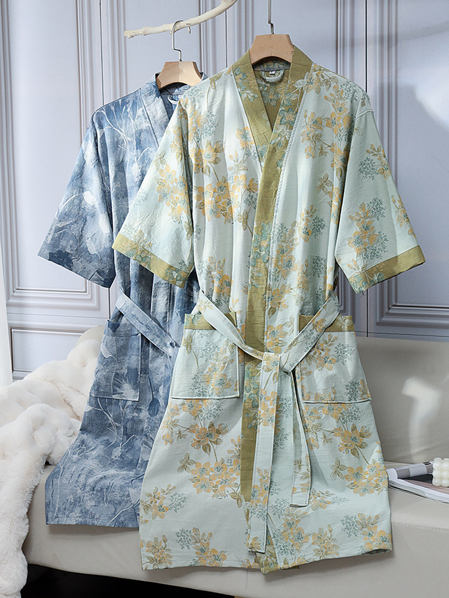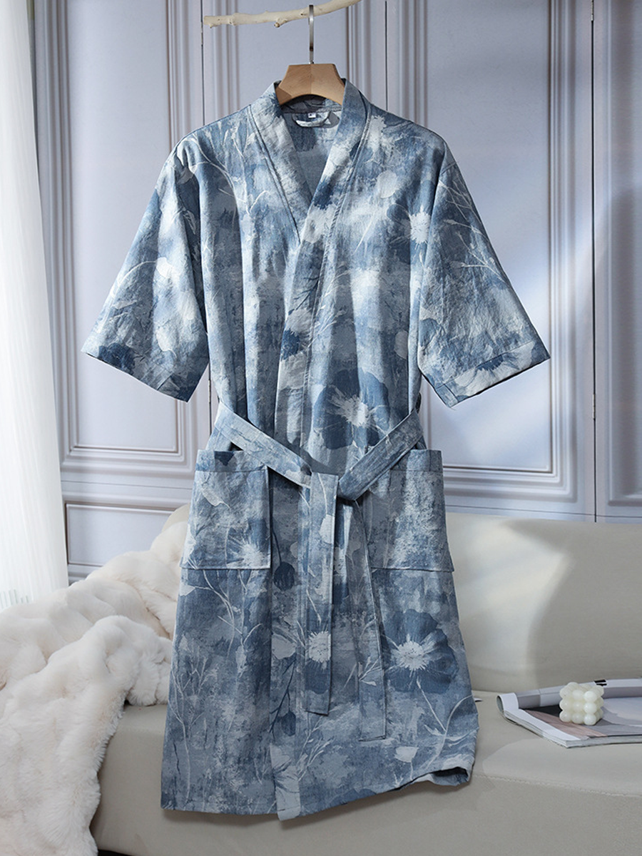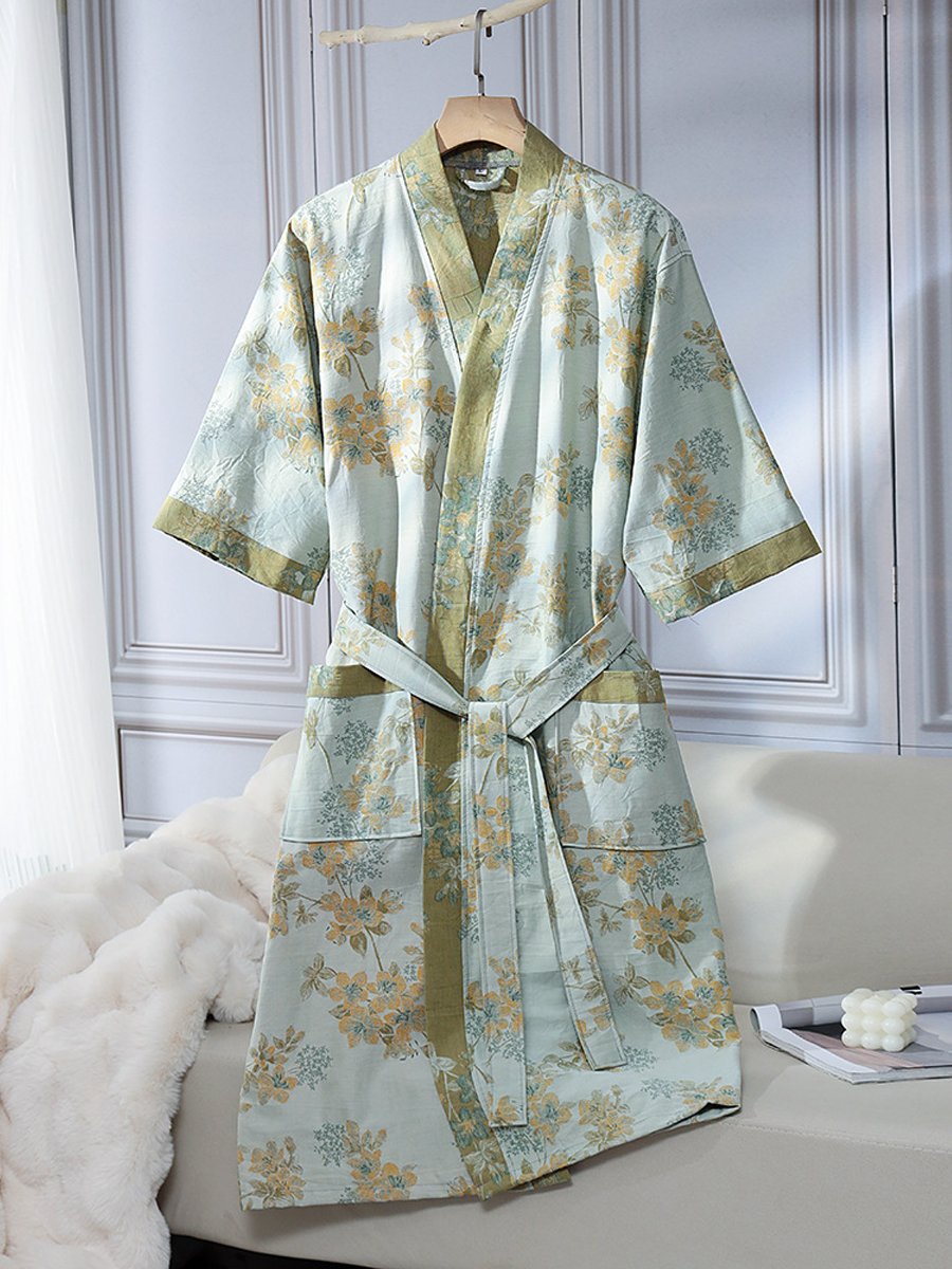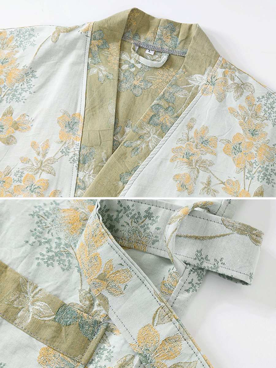 Floral Jacquard Cotton Gauze Bathrobe