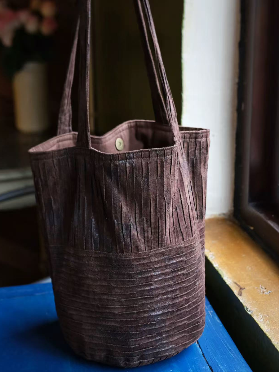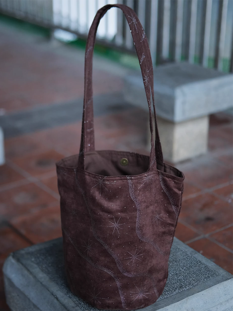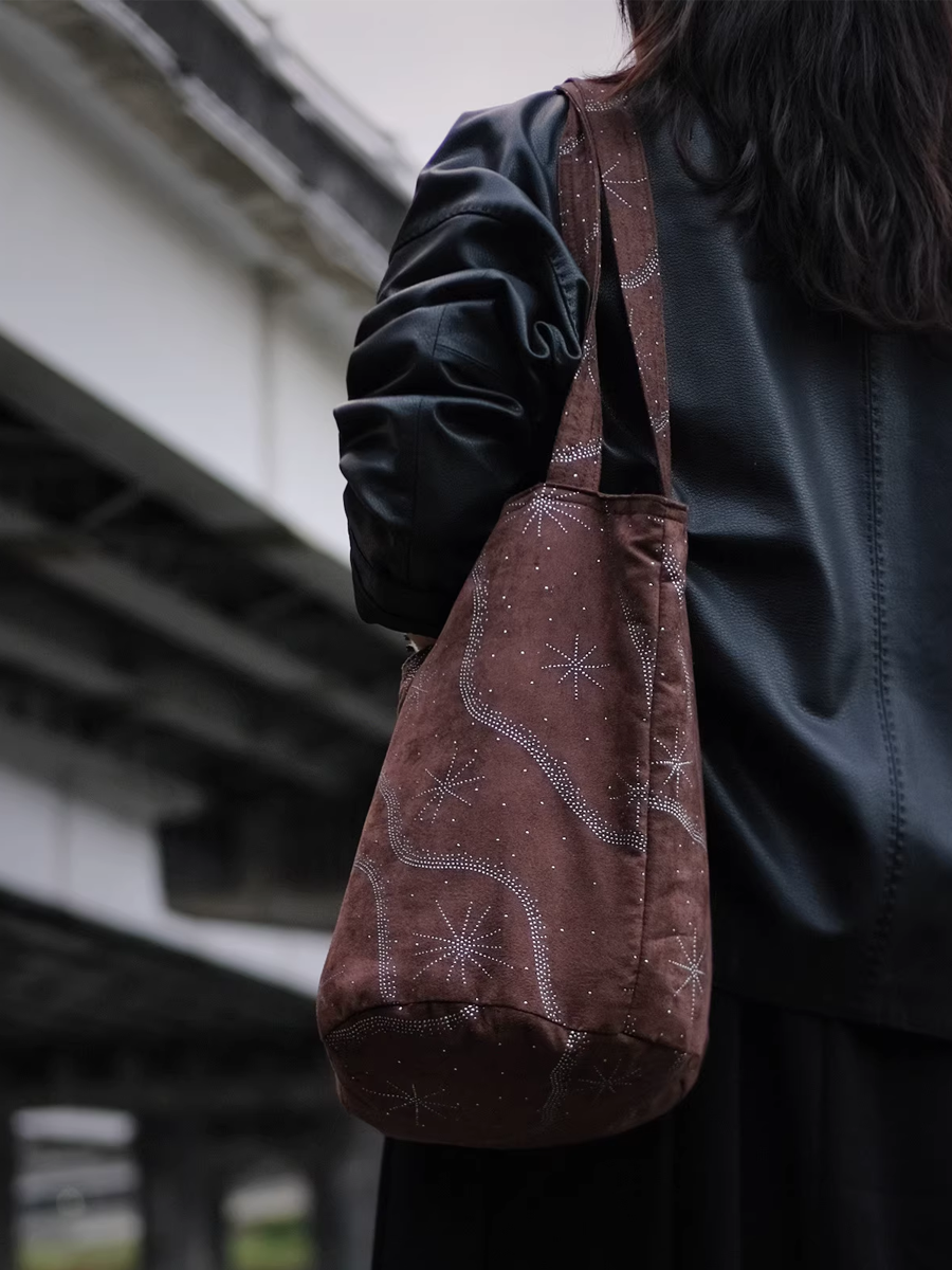 Retro Faux Suede Sequin Bucket Bag