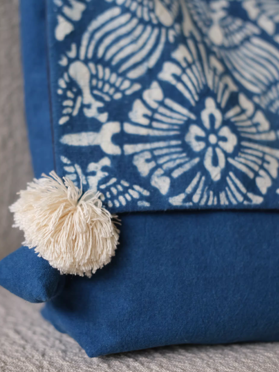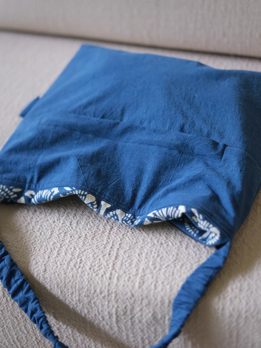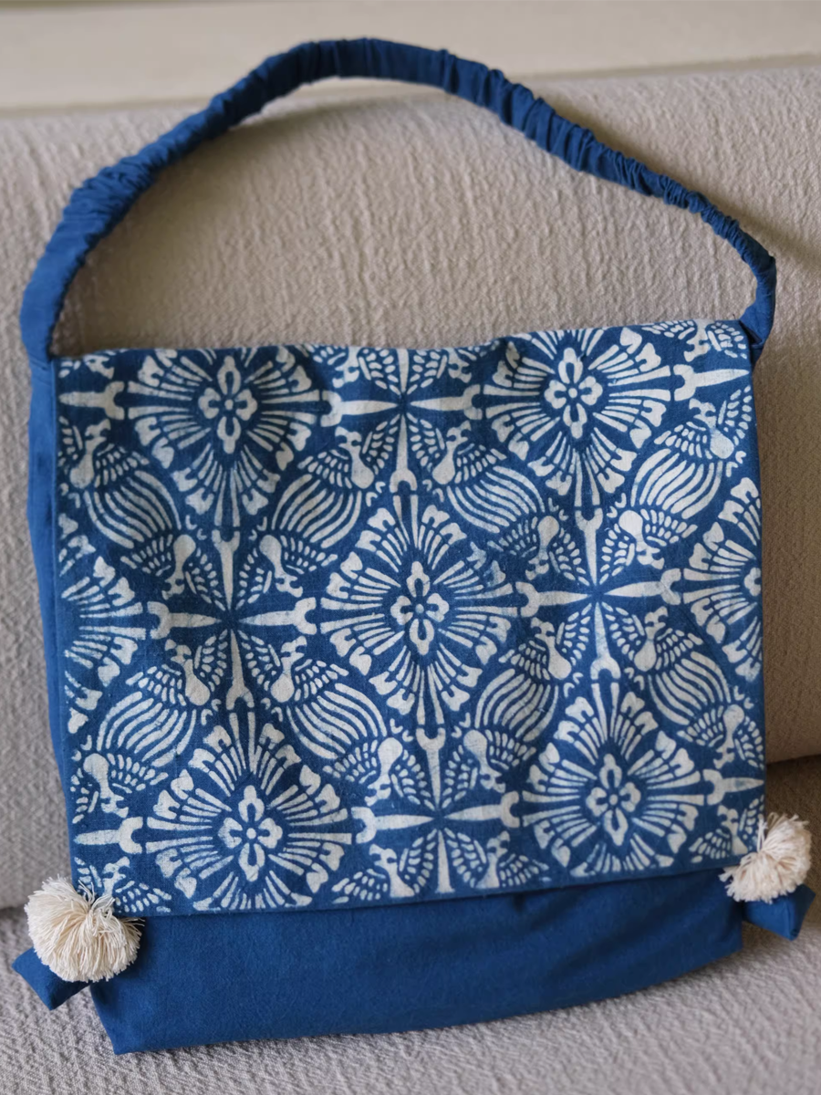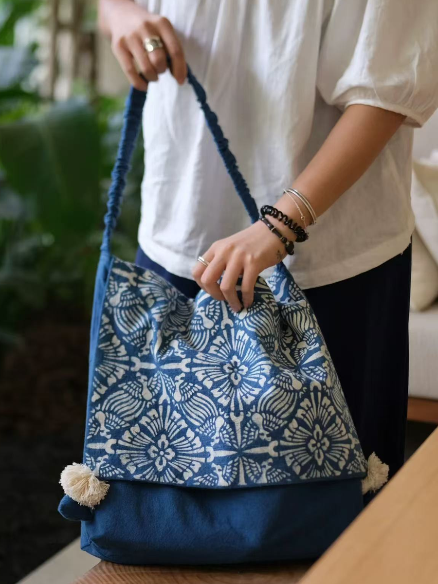 Vintage Indigo Dyed Floral Spliced Flap Shoulder Bag