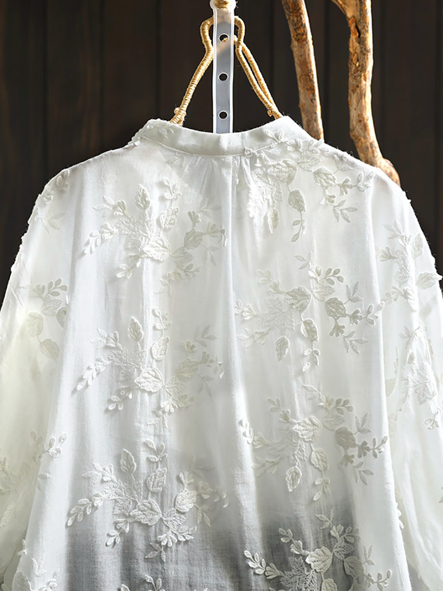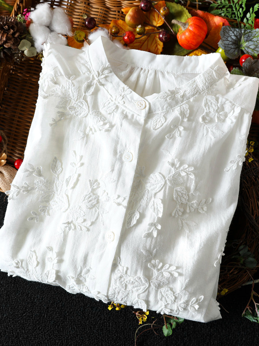 Women Artsy 100%Cotton Embroidery Stand Collar Blouse