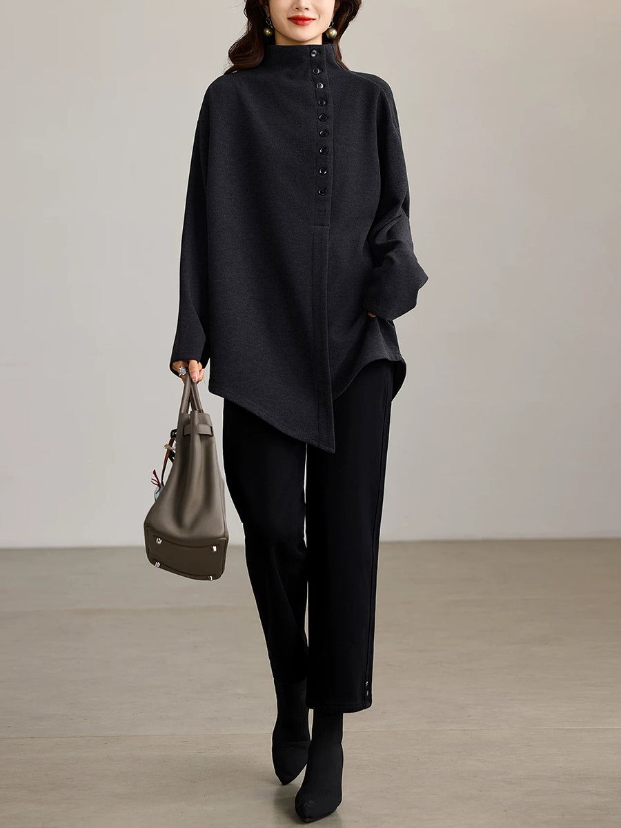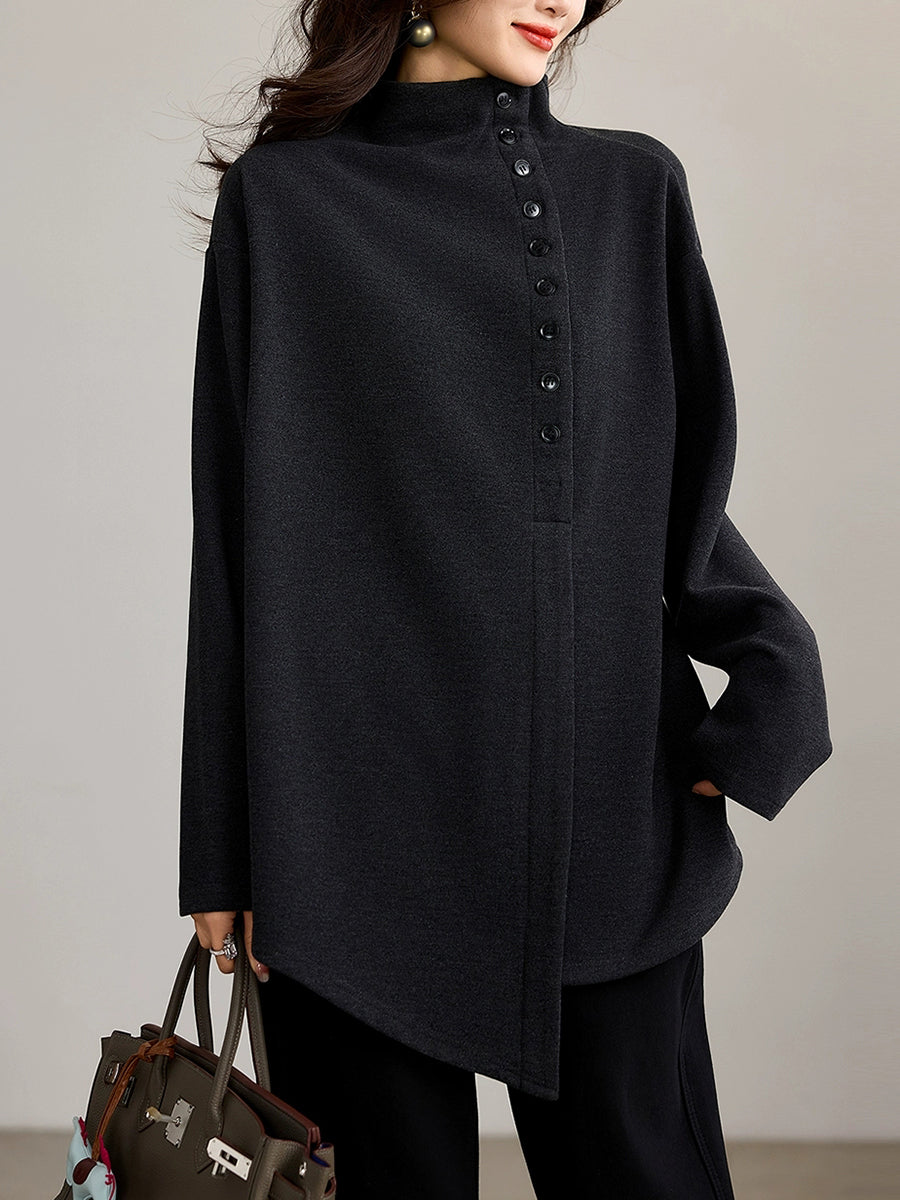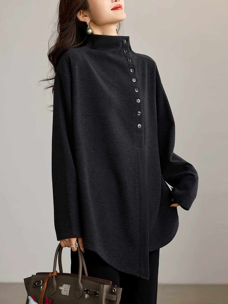 Women Artsy Autumn Button Turtleneck Blouse