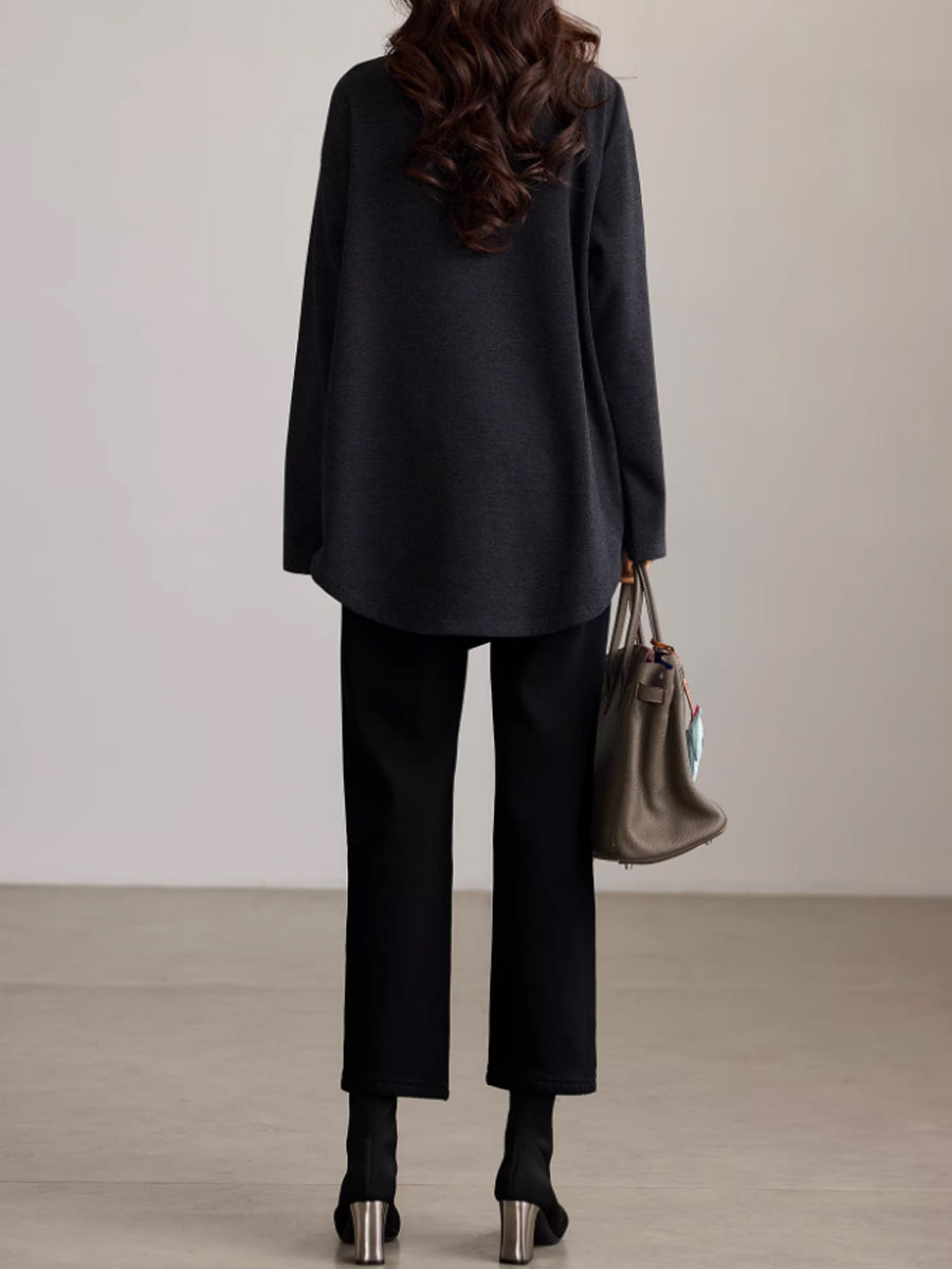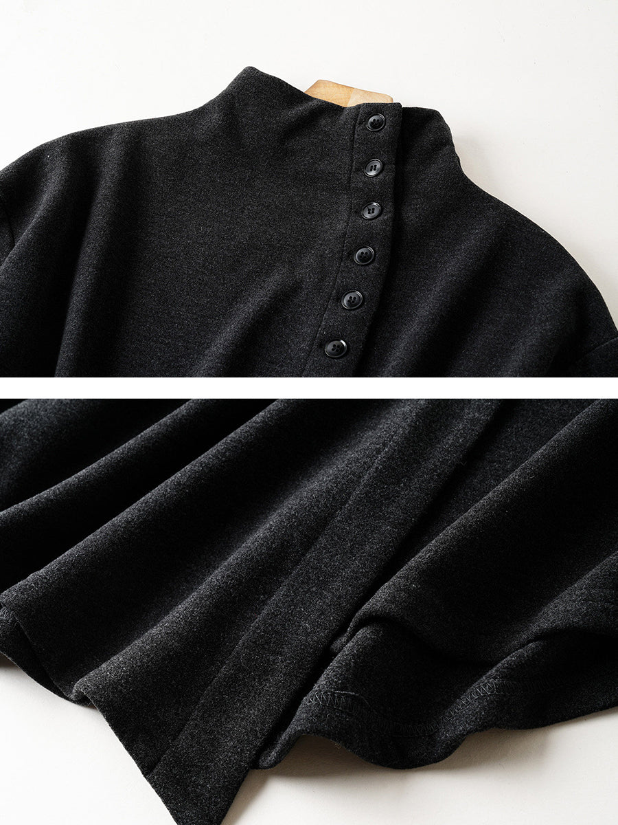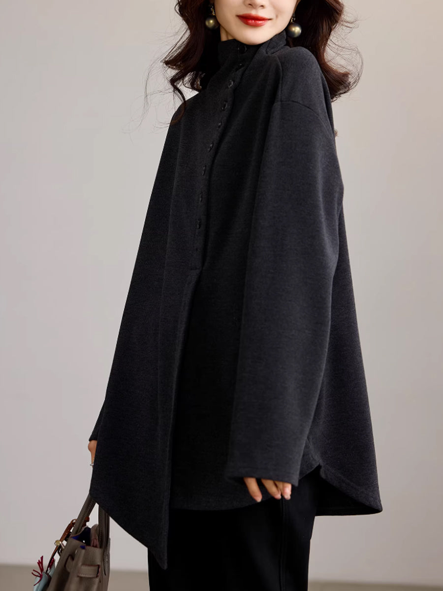 Women Artsy Autumn Button Turtleneck Blouse