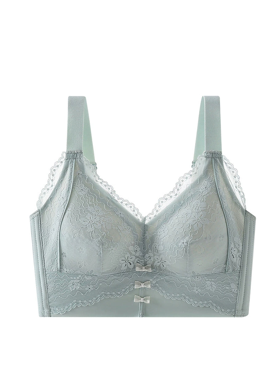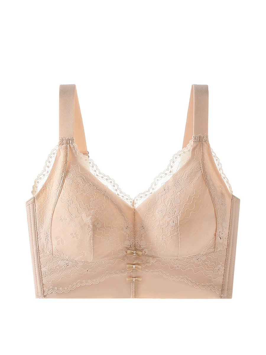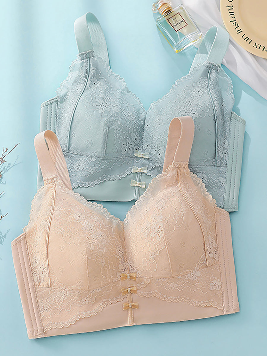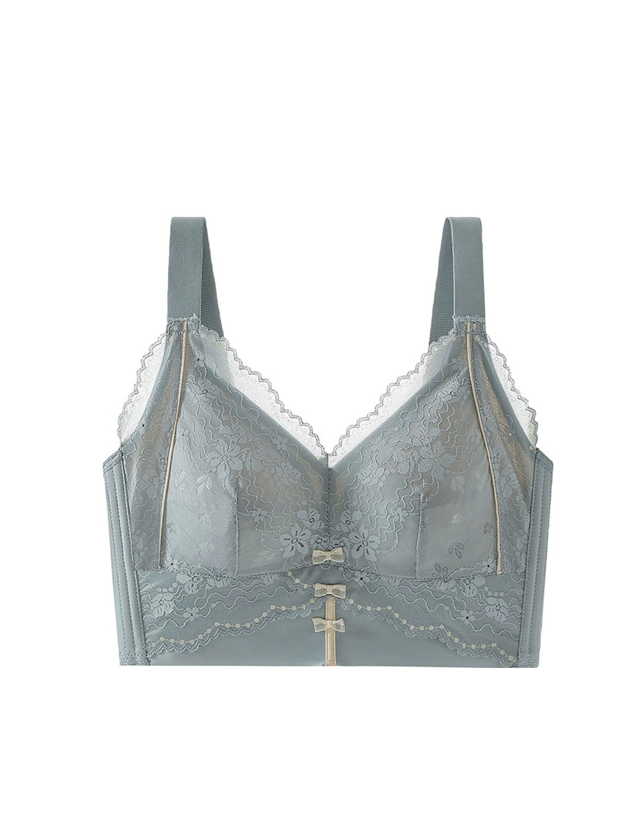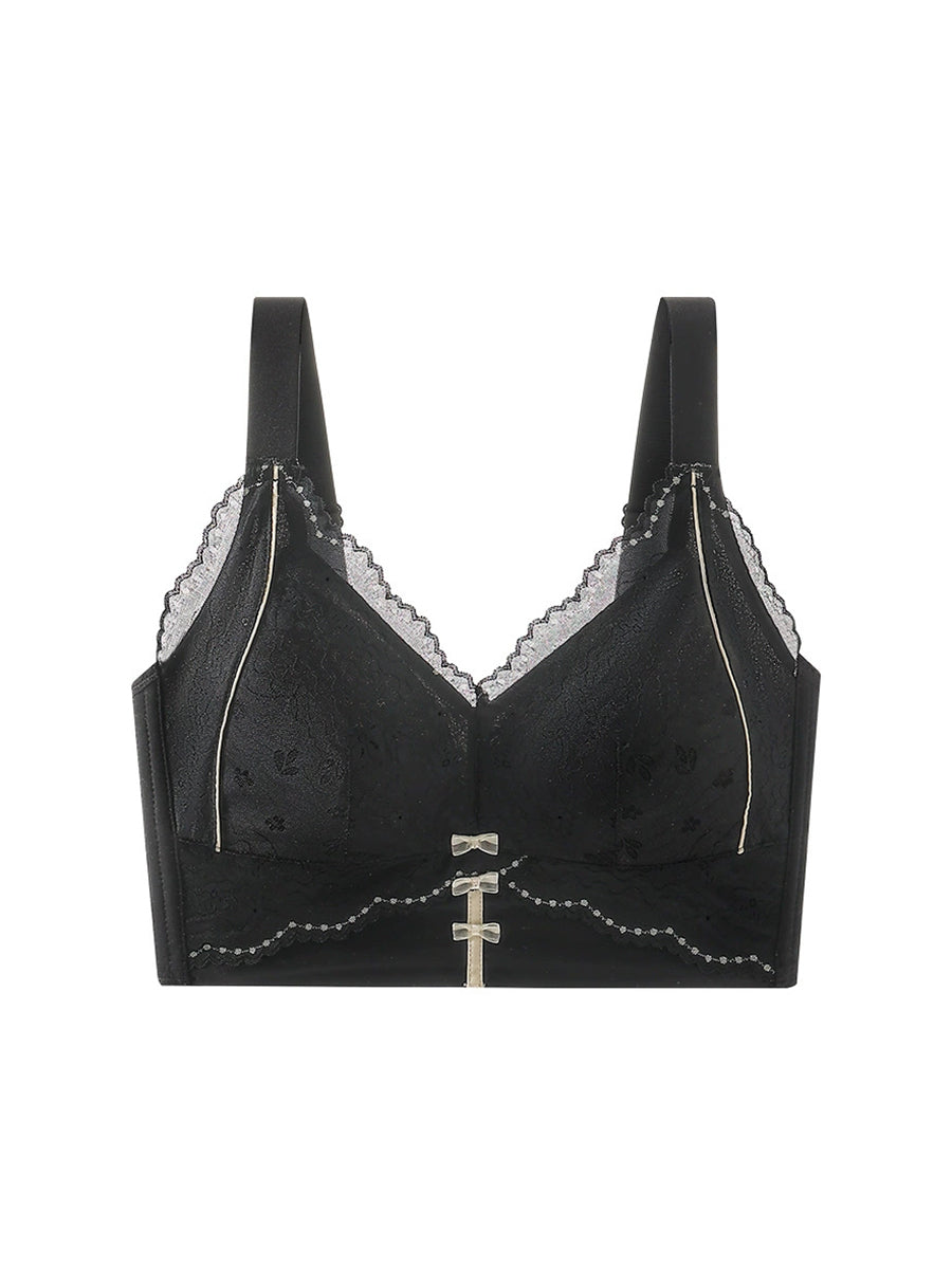 Women Artsy Flower Lace Silk Wireless Bra