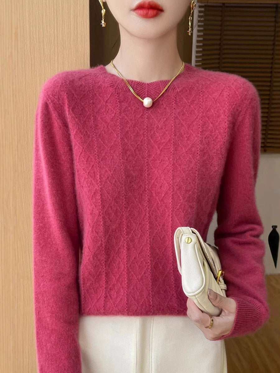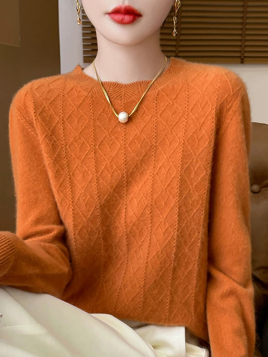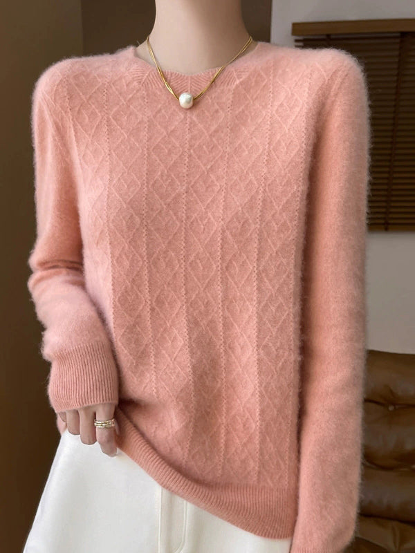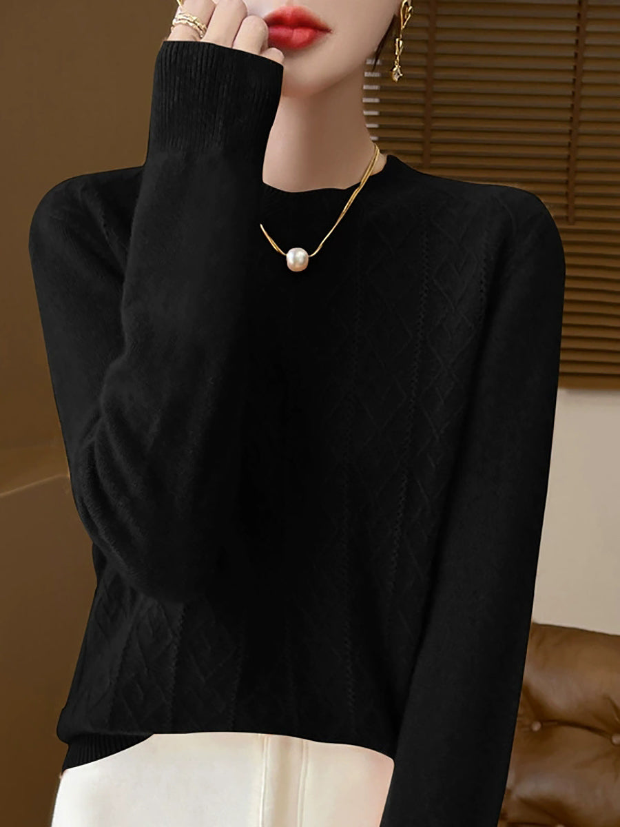Women Artsy Pure Color Cable Knit O-Neck Sweater