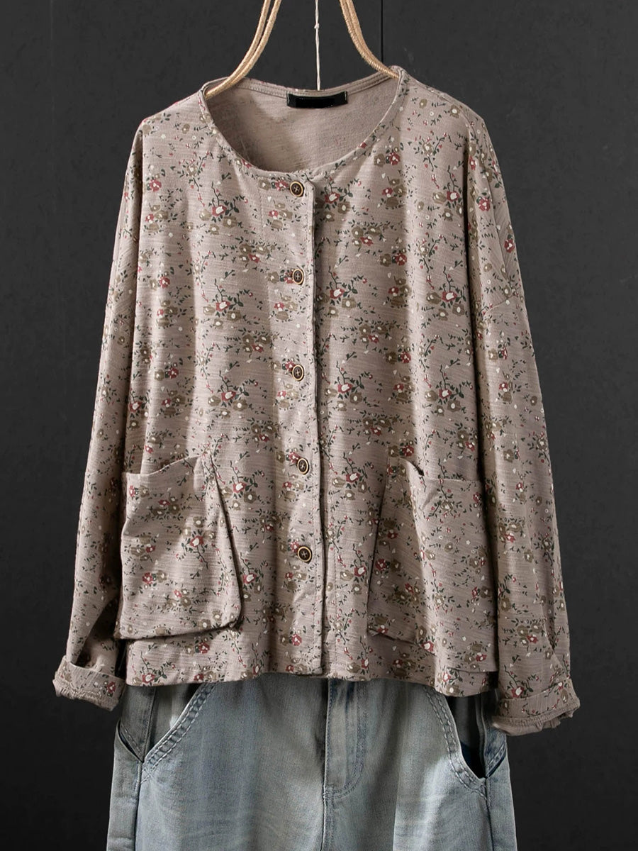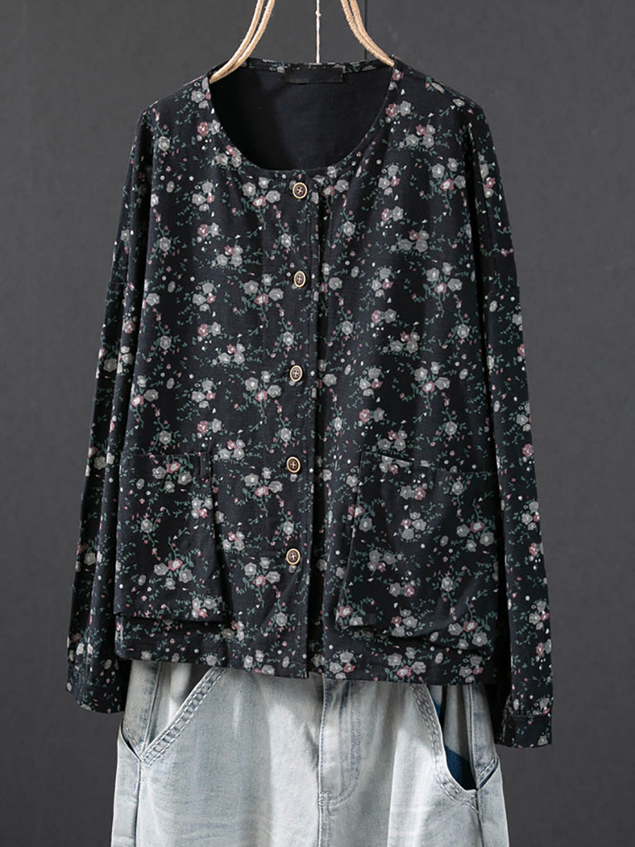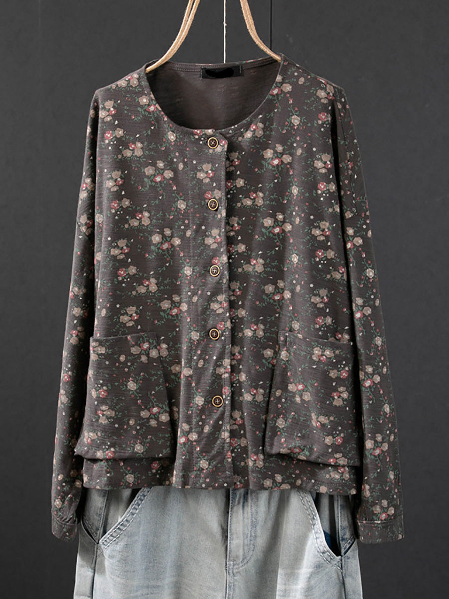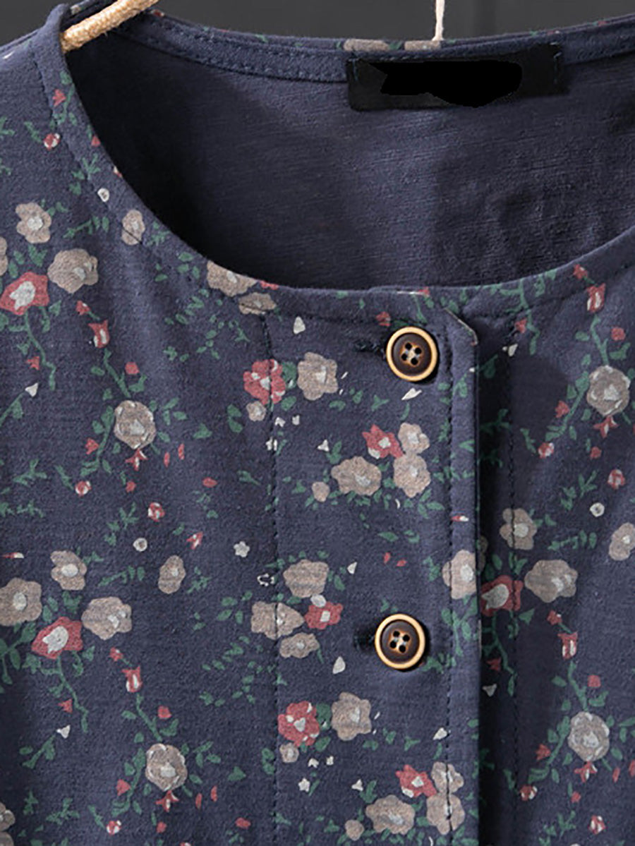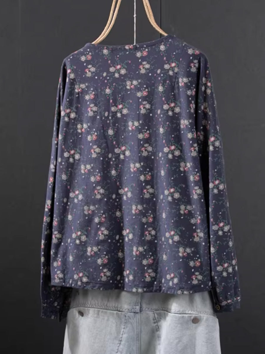Women Artsy Spring Floral Cotton O-Neck Shirt