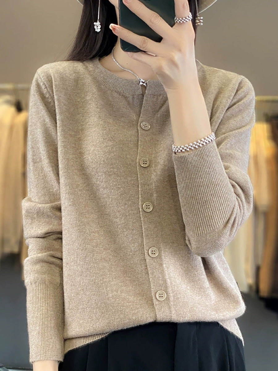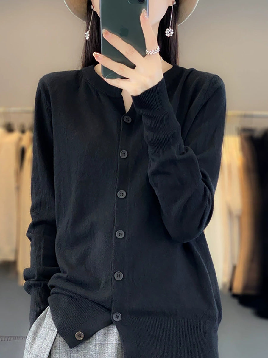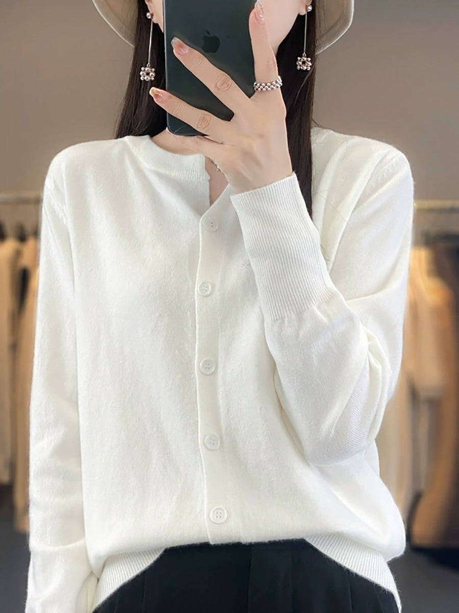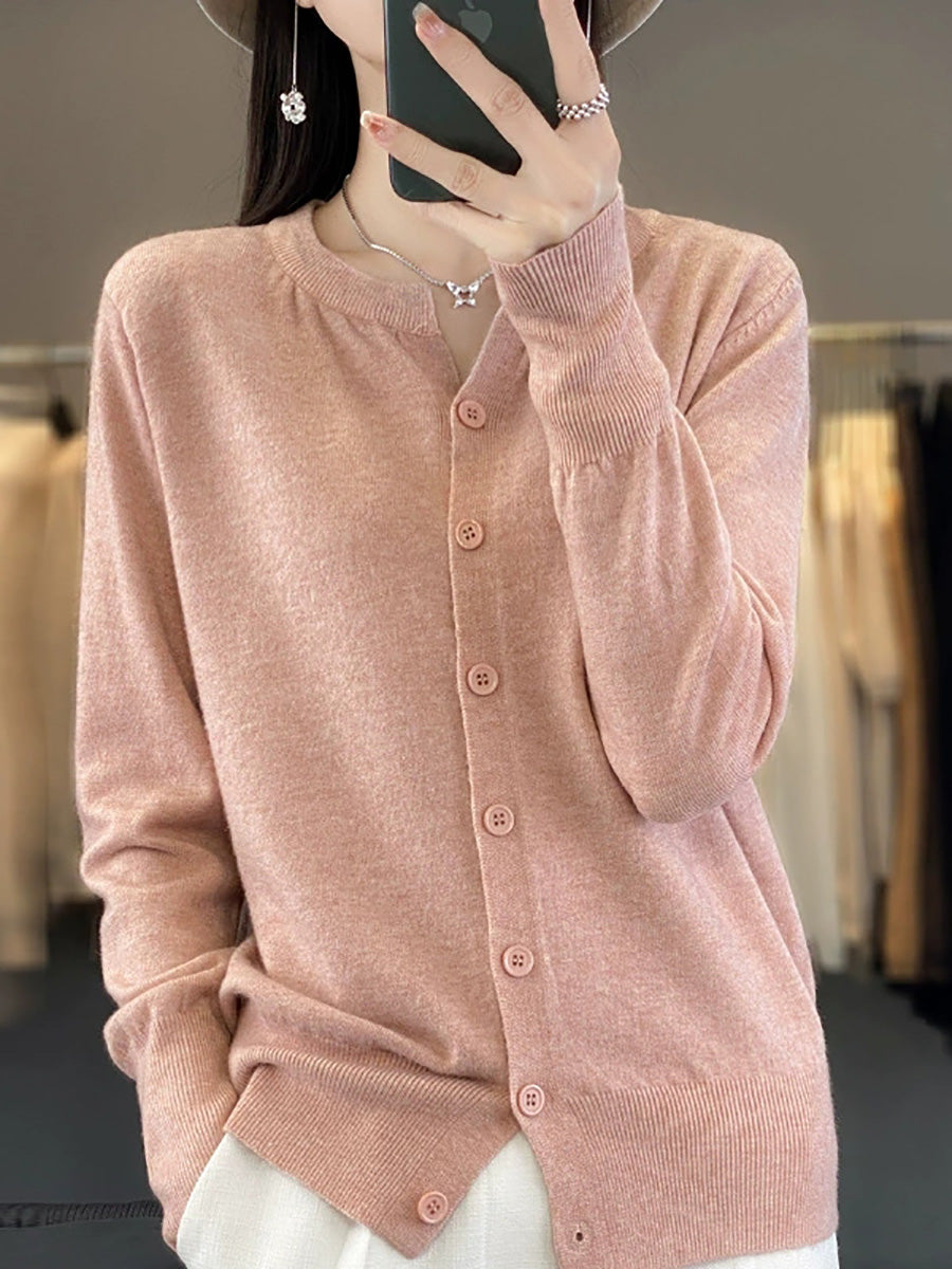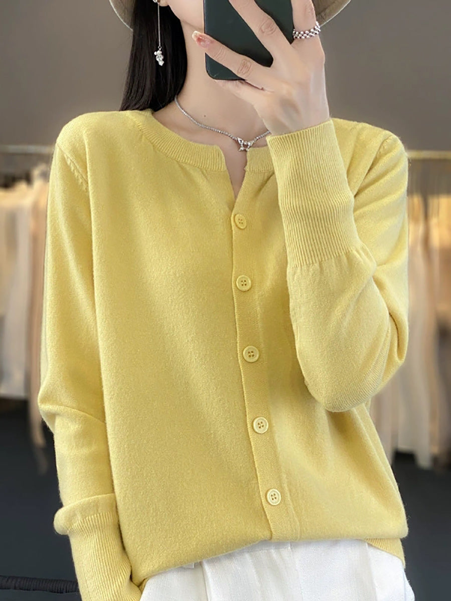 Women Artsy Spring Pure Color O-Neck Sweater