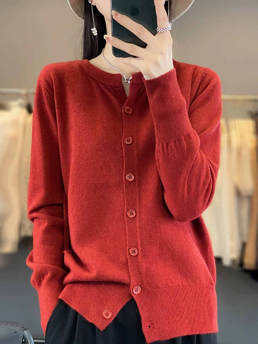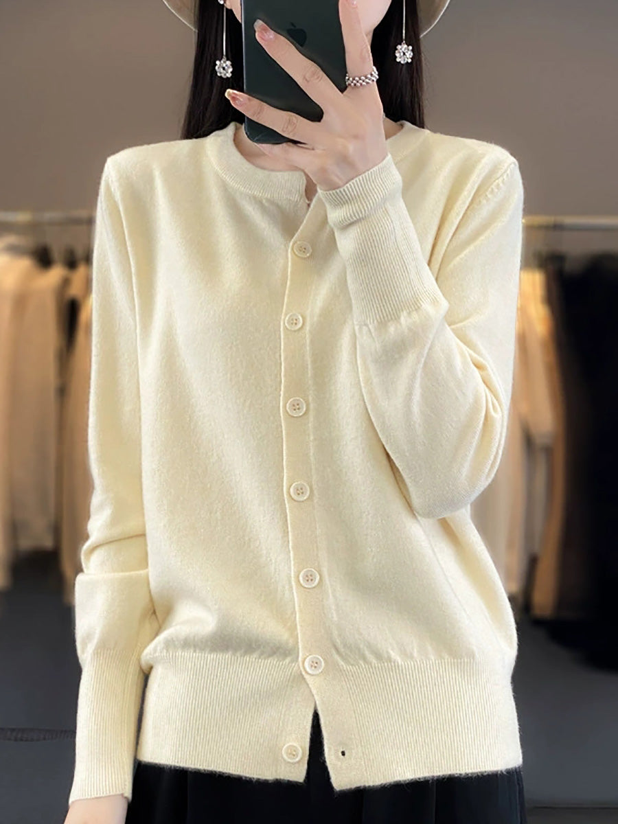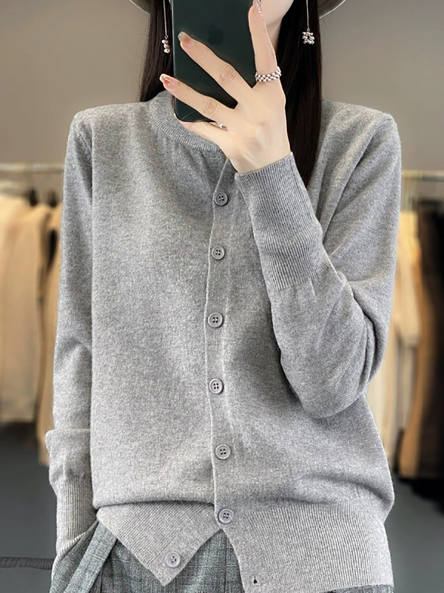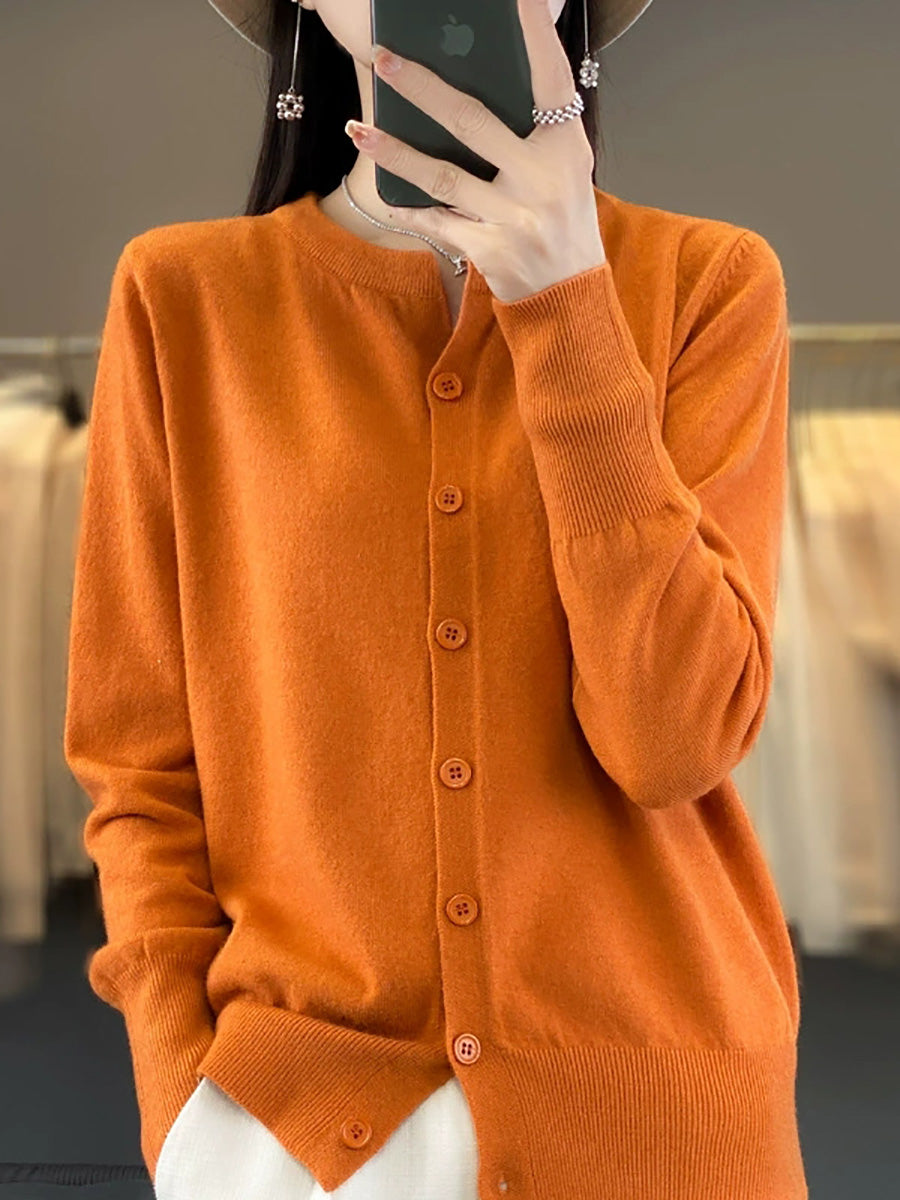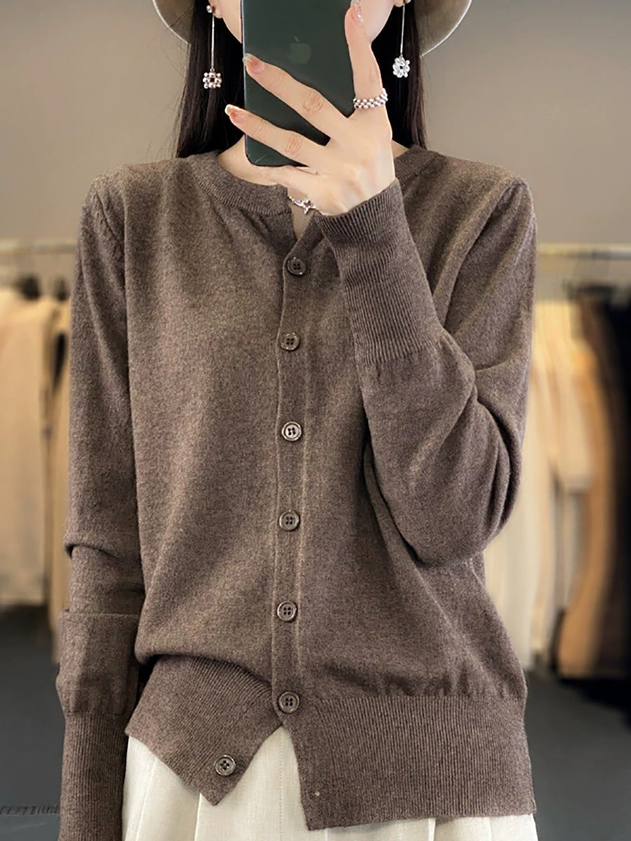 Women Artsy Spring Pure Color O-Neck Sweater