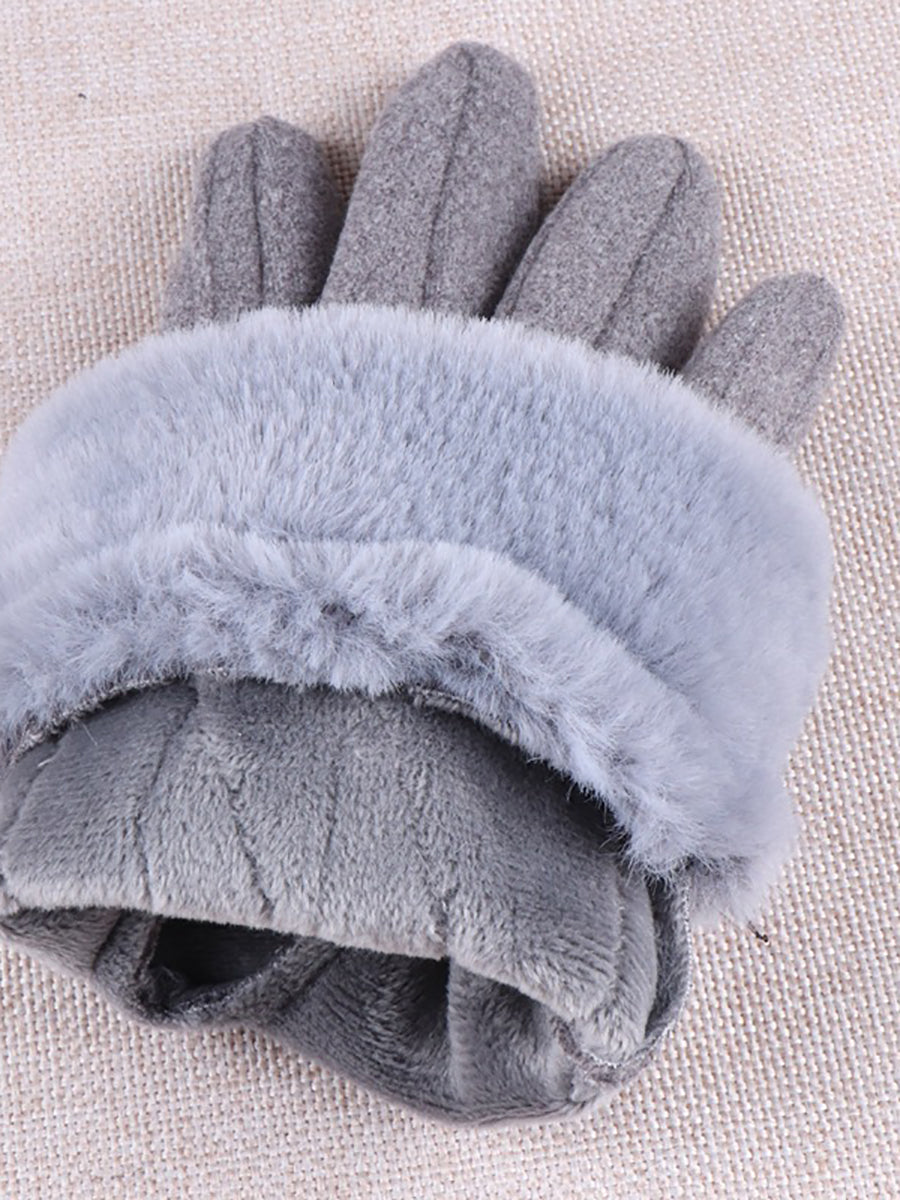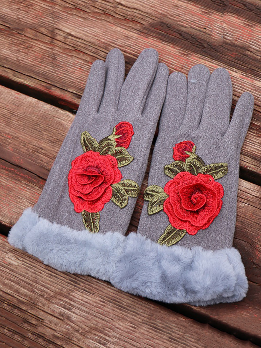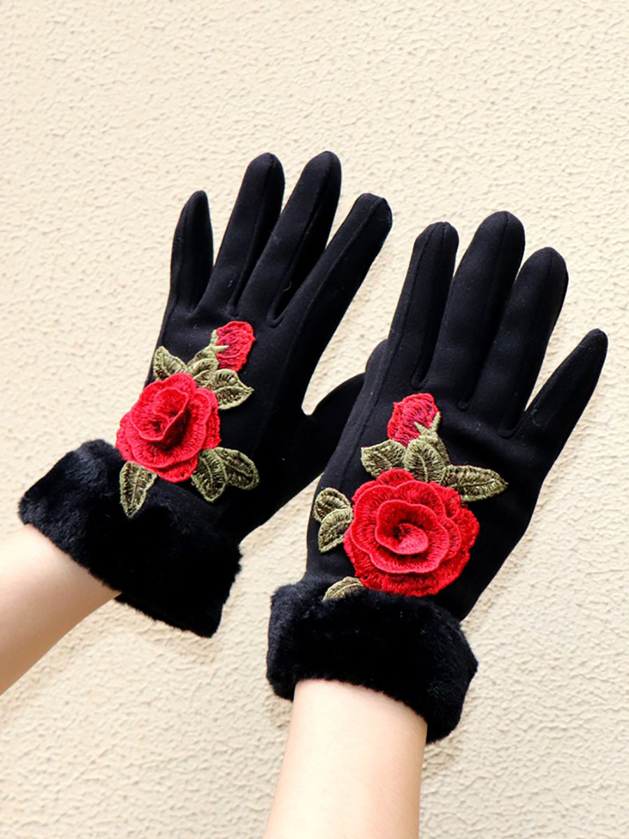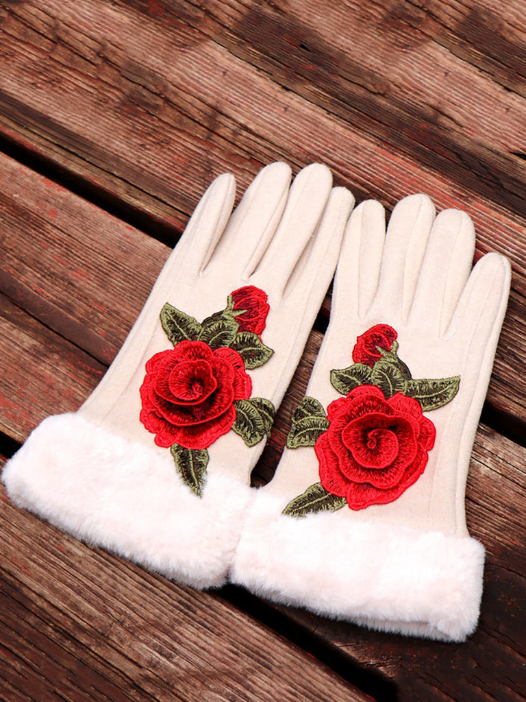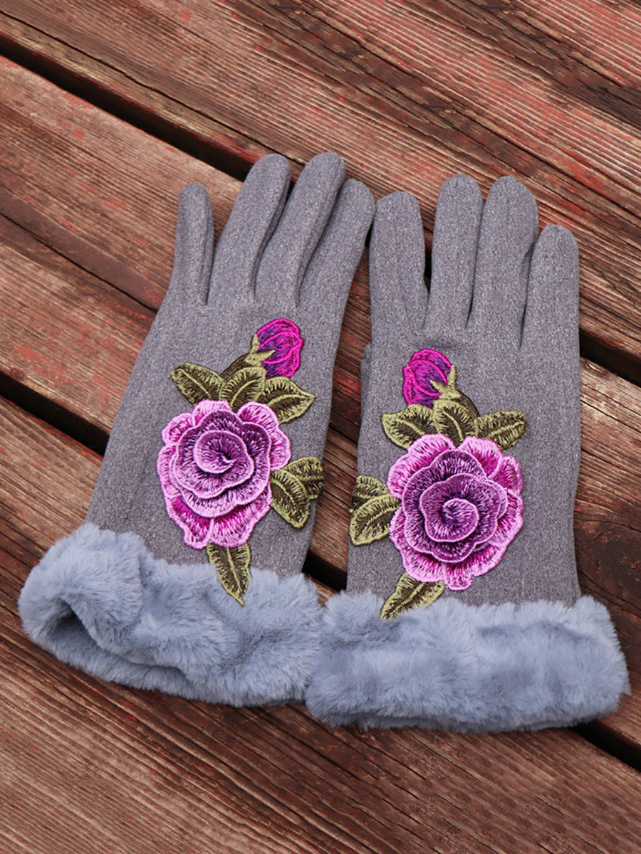 Women Artsy Winter Embroidery Fleece-lined Gloves