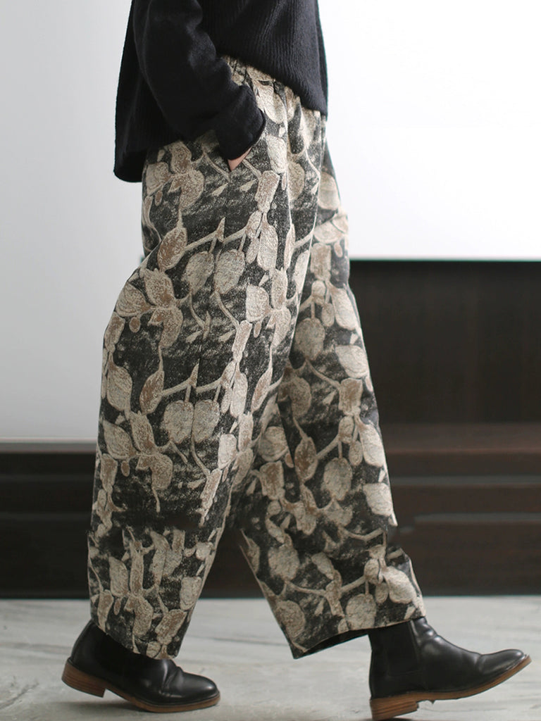 Women Autumn Artsy Leaf Wide-leg Pants