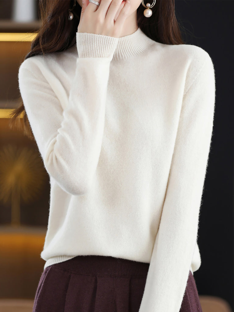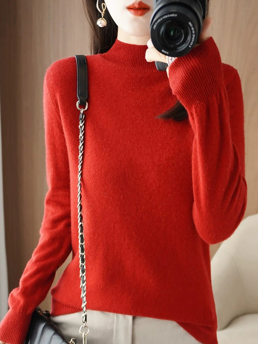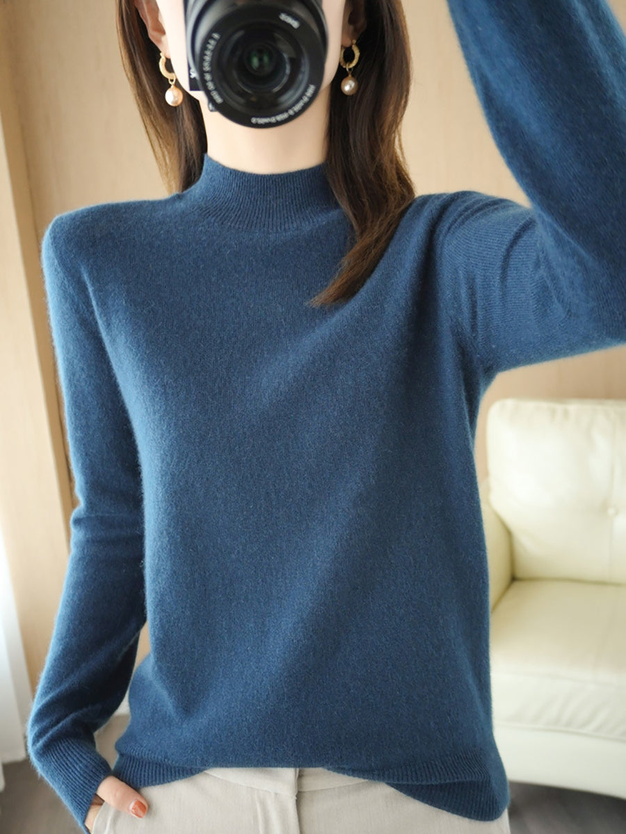 Women Autumn Artsy Pure Color Half Turtleneck Sweater