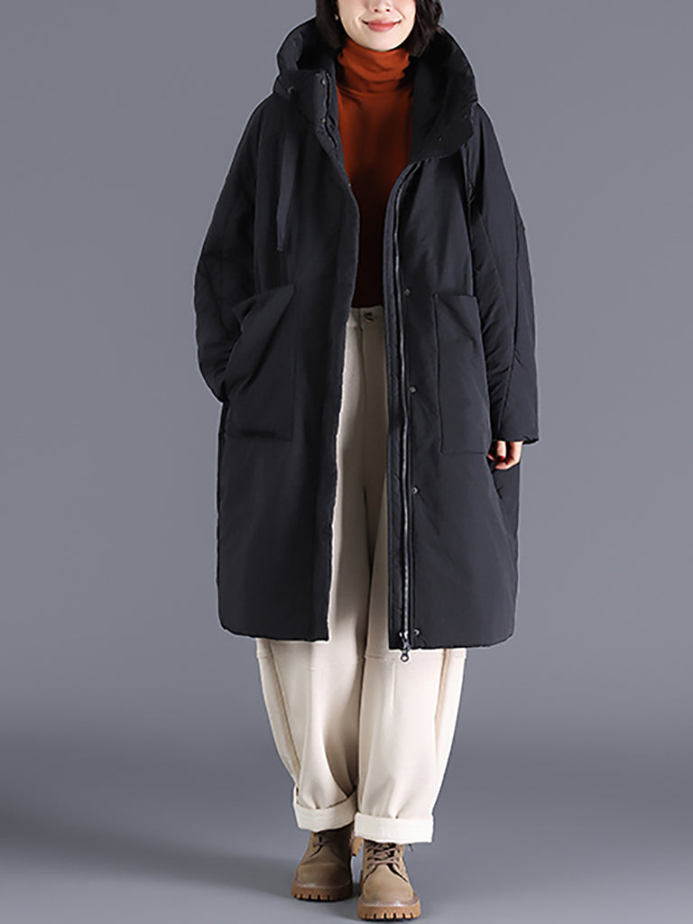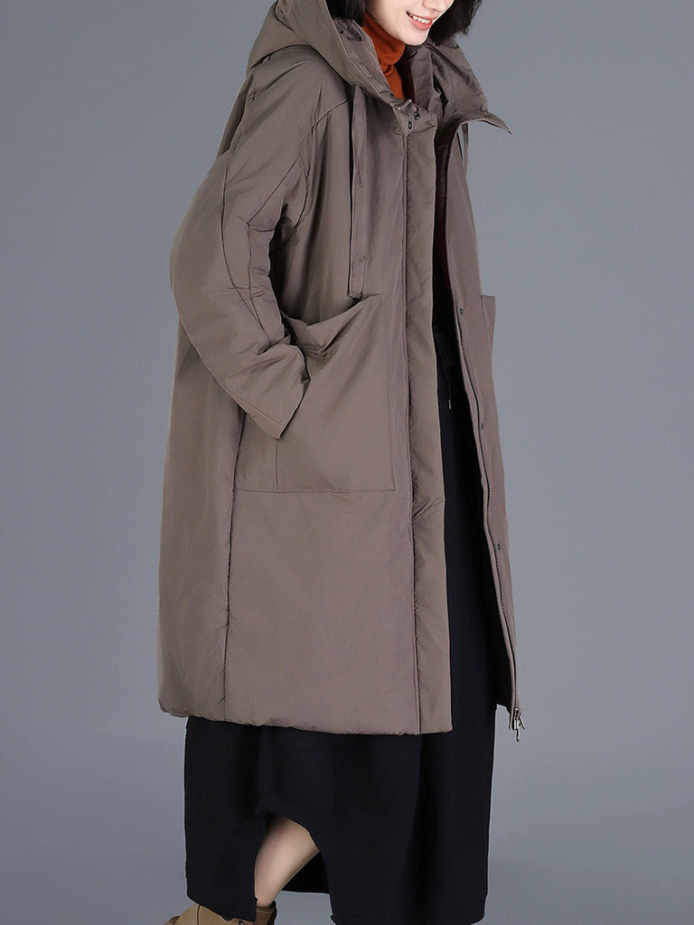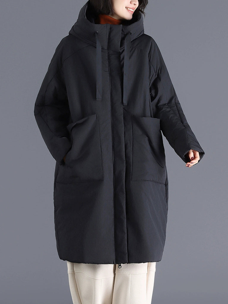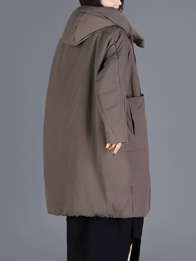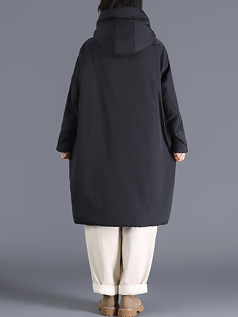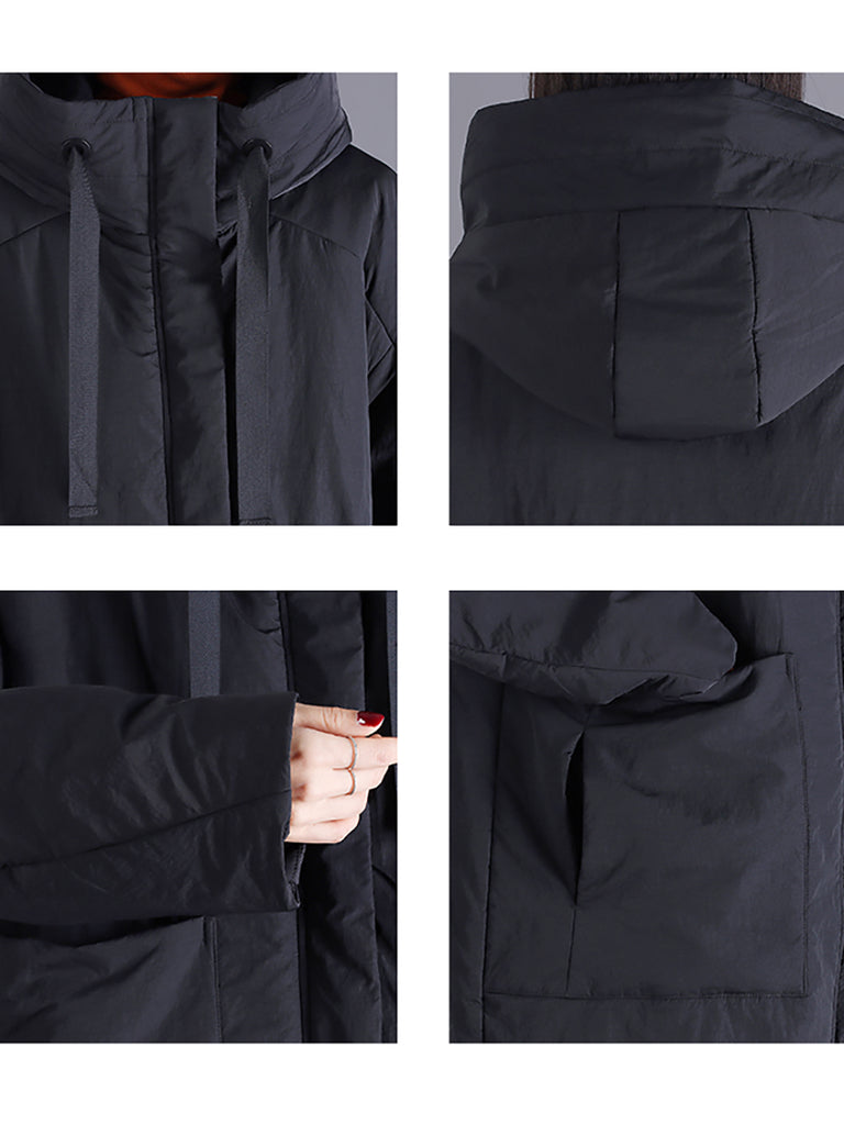 Women Autumn Casual Pure Color Hooded Padded Coat