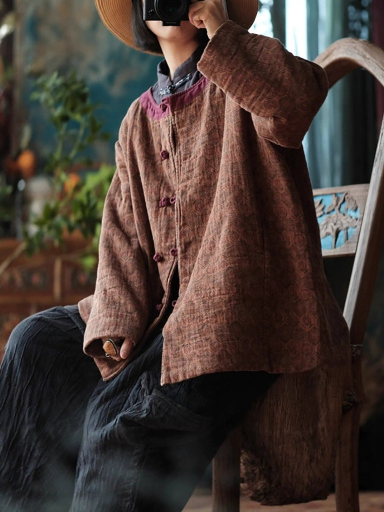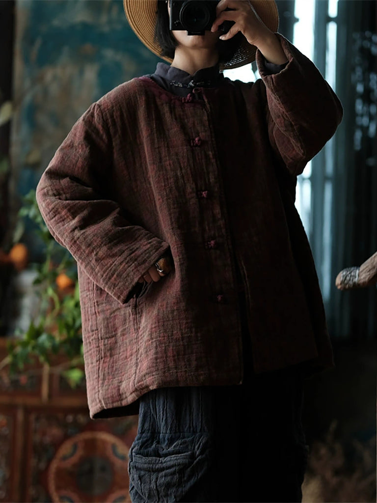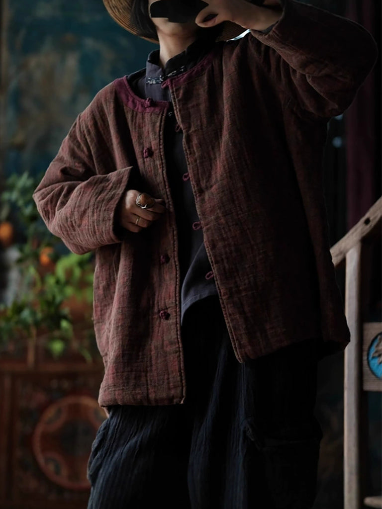 Women Autumn Ethnic Pure Color O-Neck Cotton Padded Coat