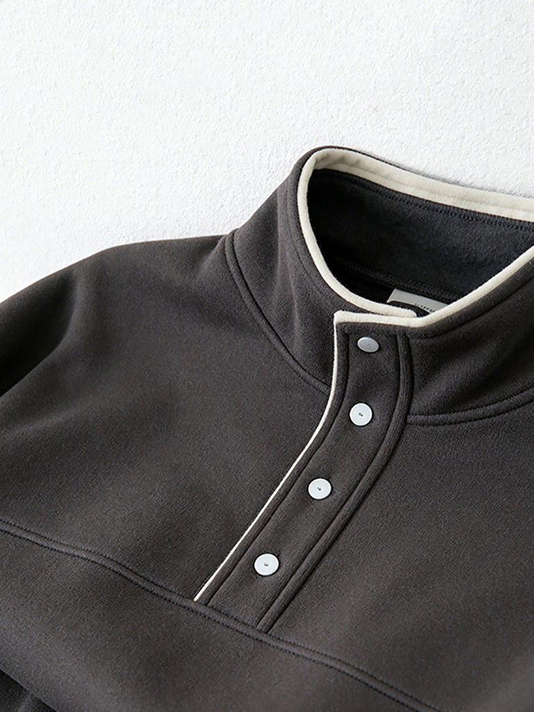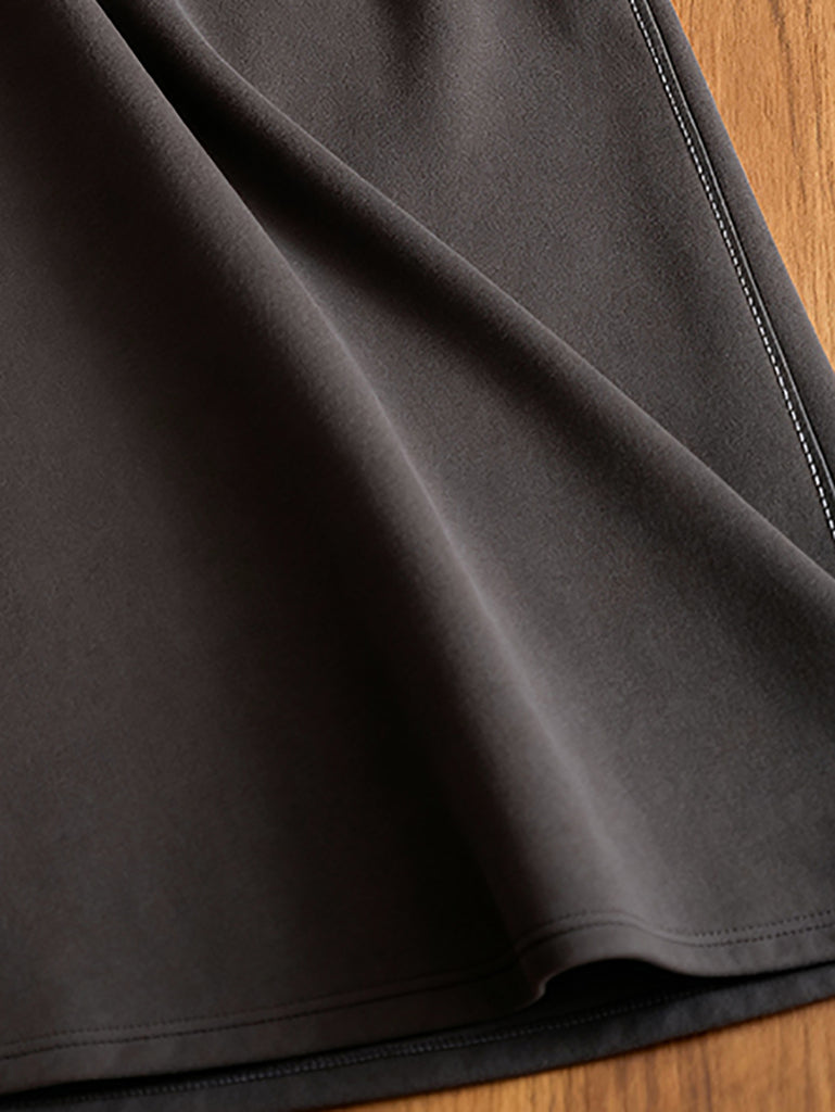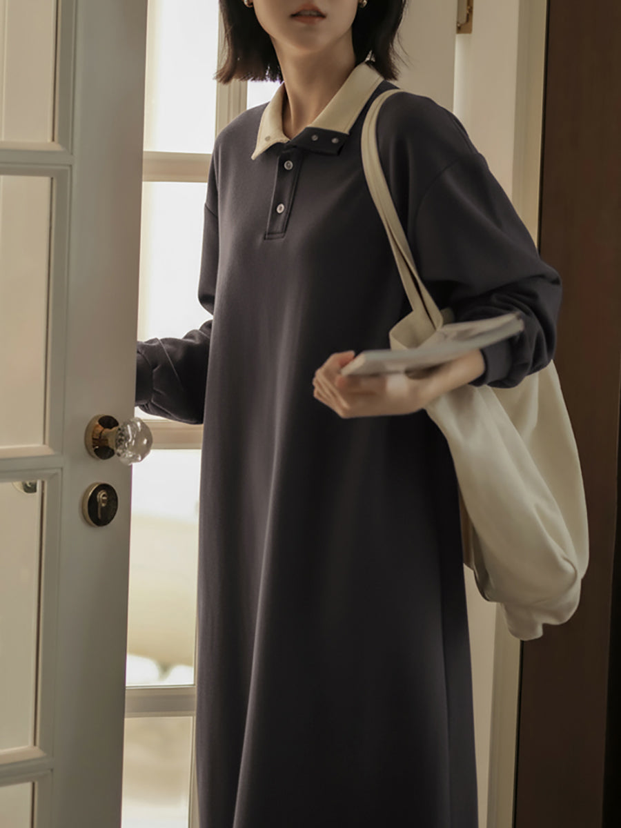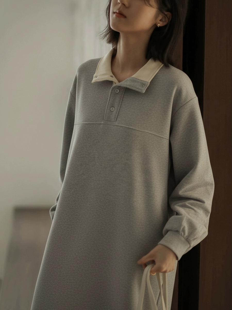 Women Autumn Pure Color Fleece-lined Stand Collar Dress