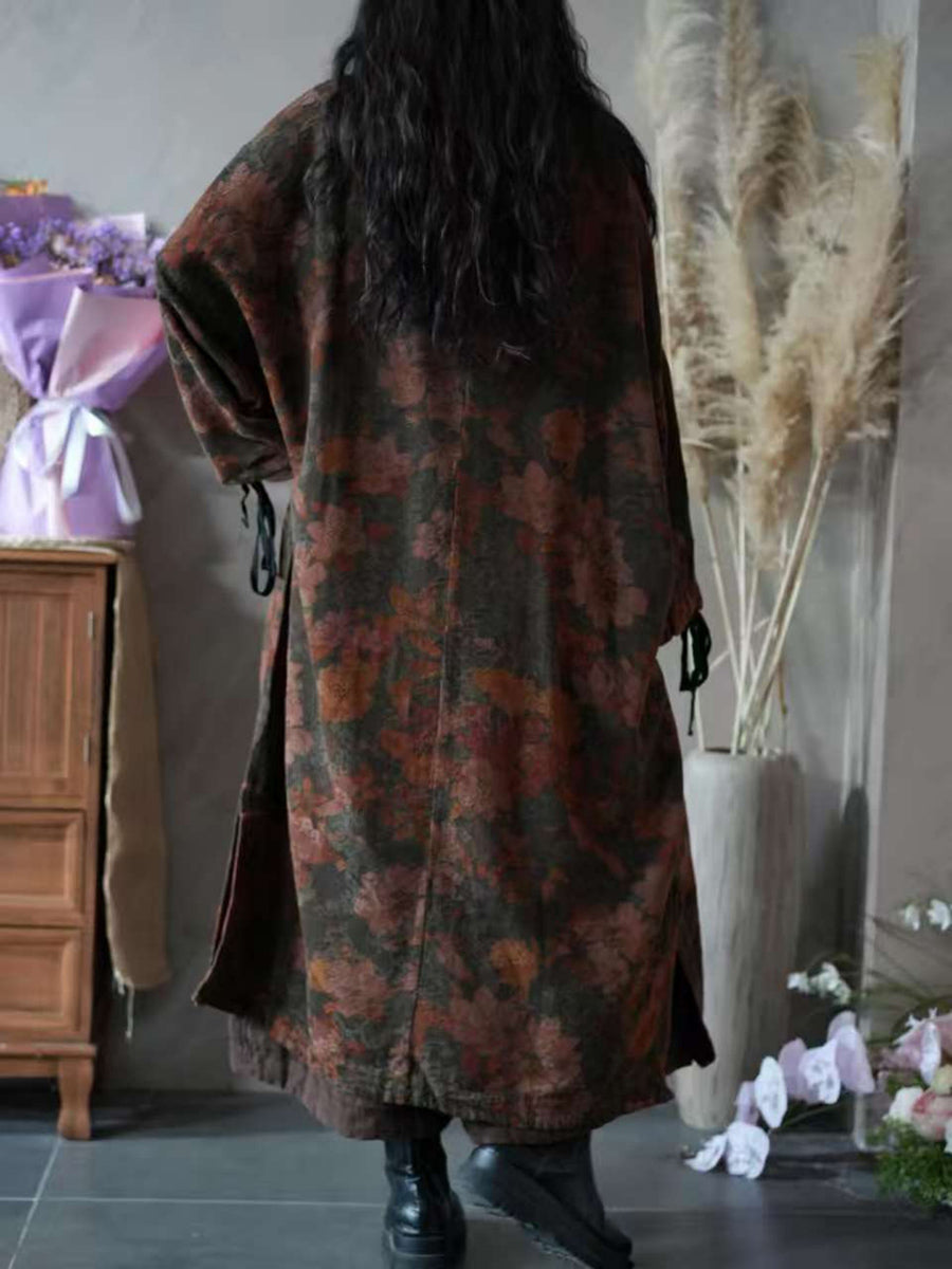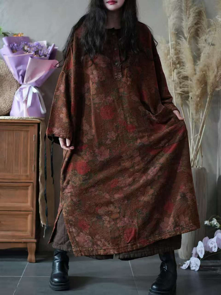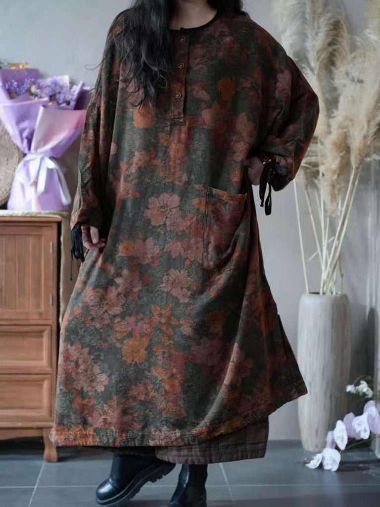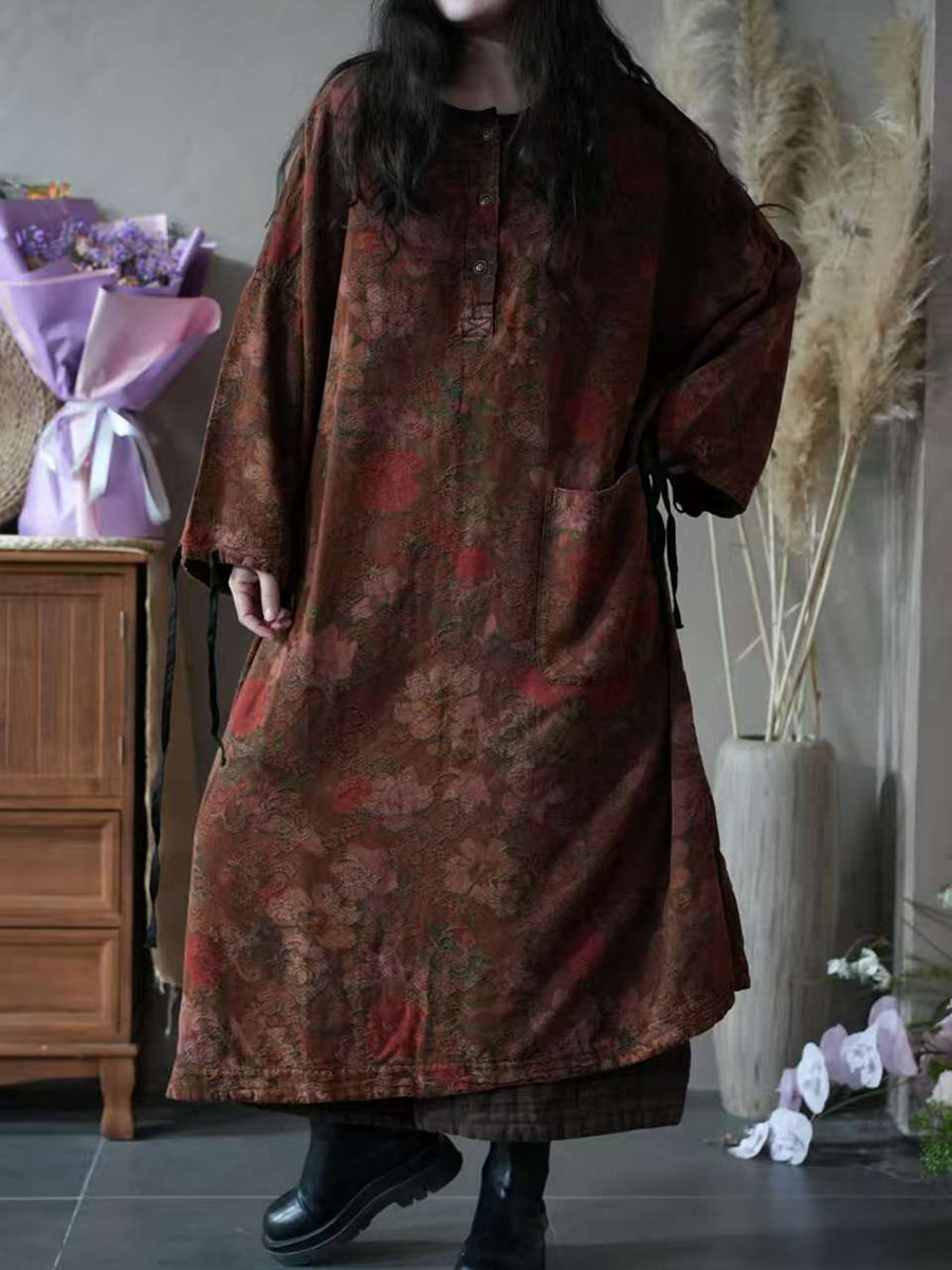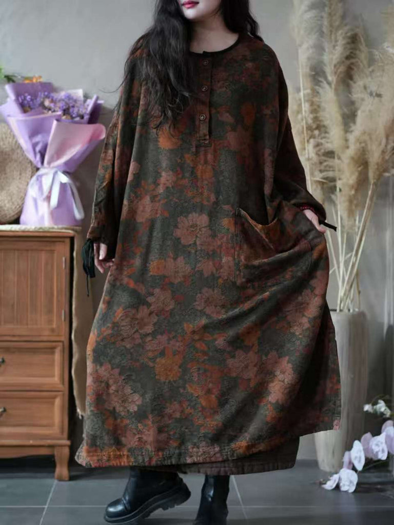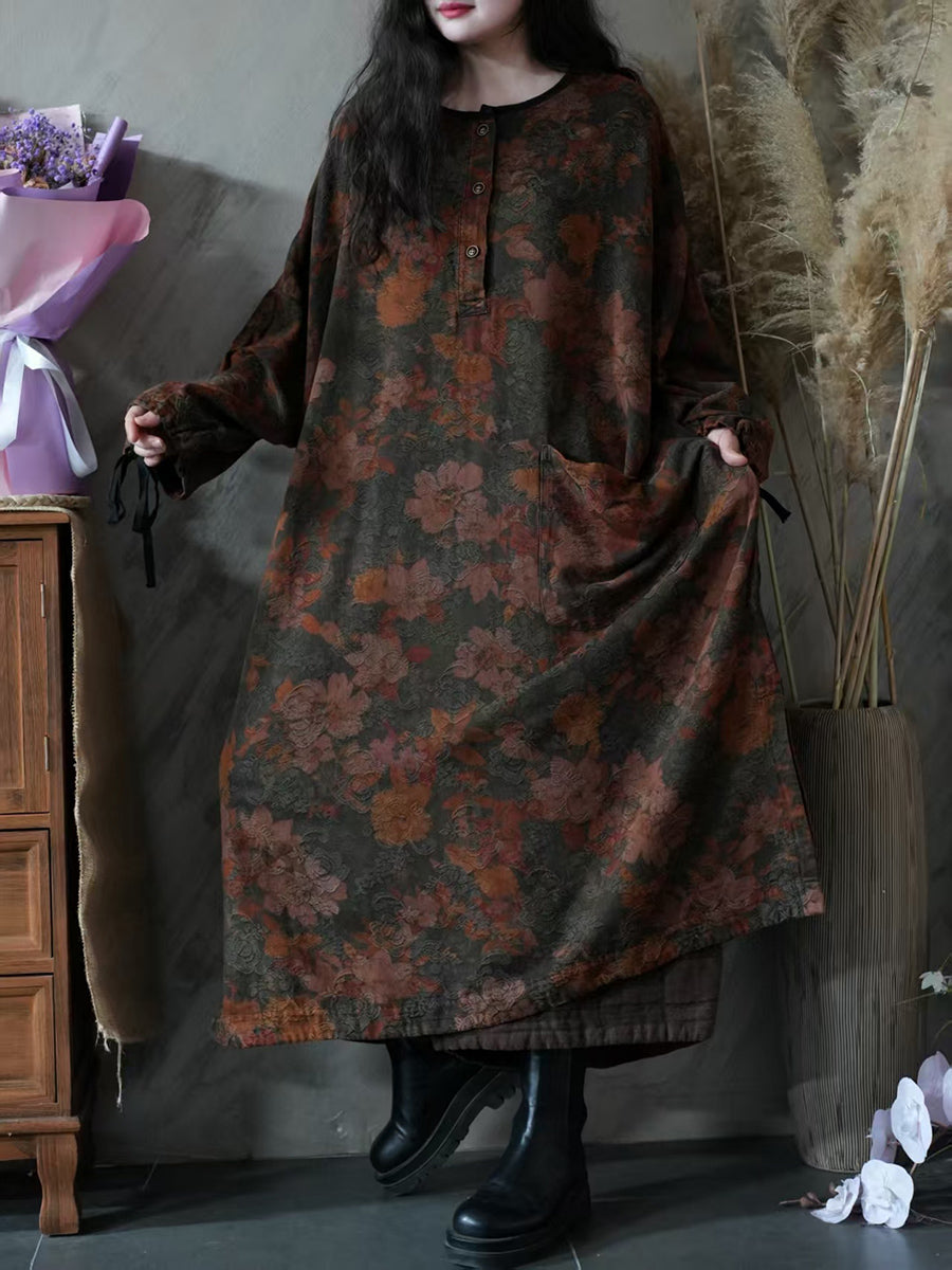 Women Autumn Vintage Flower O-Neck Dress