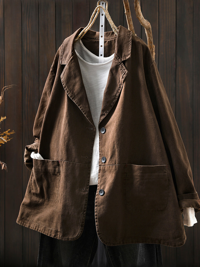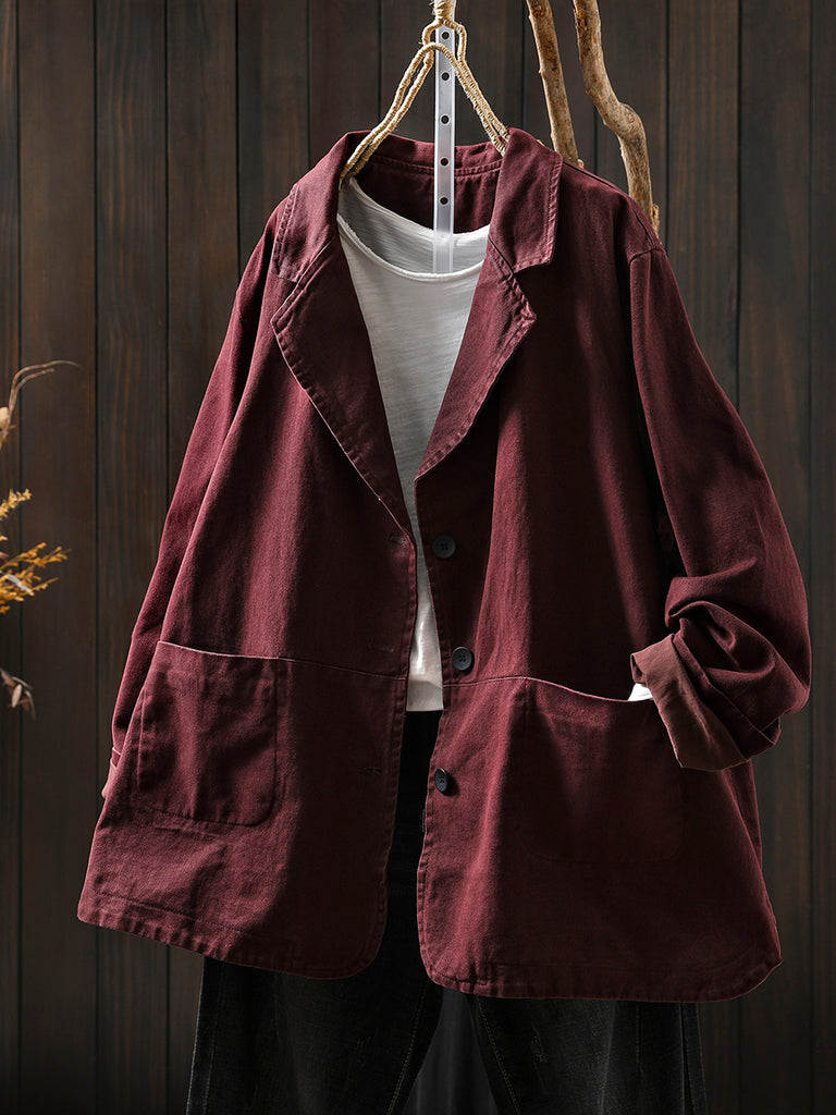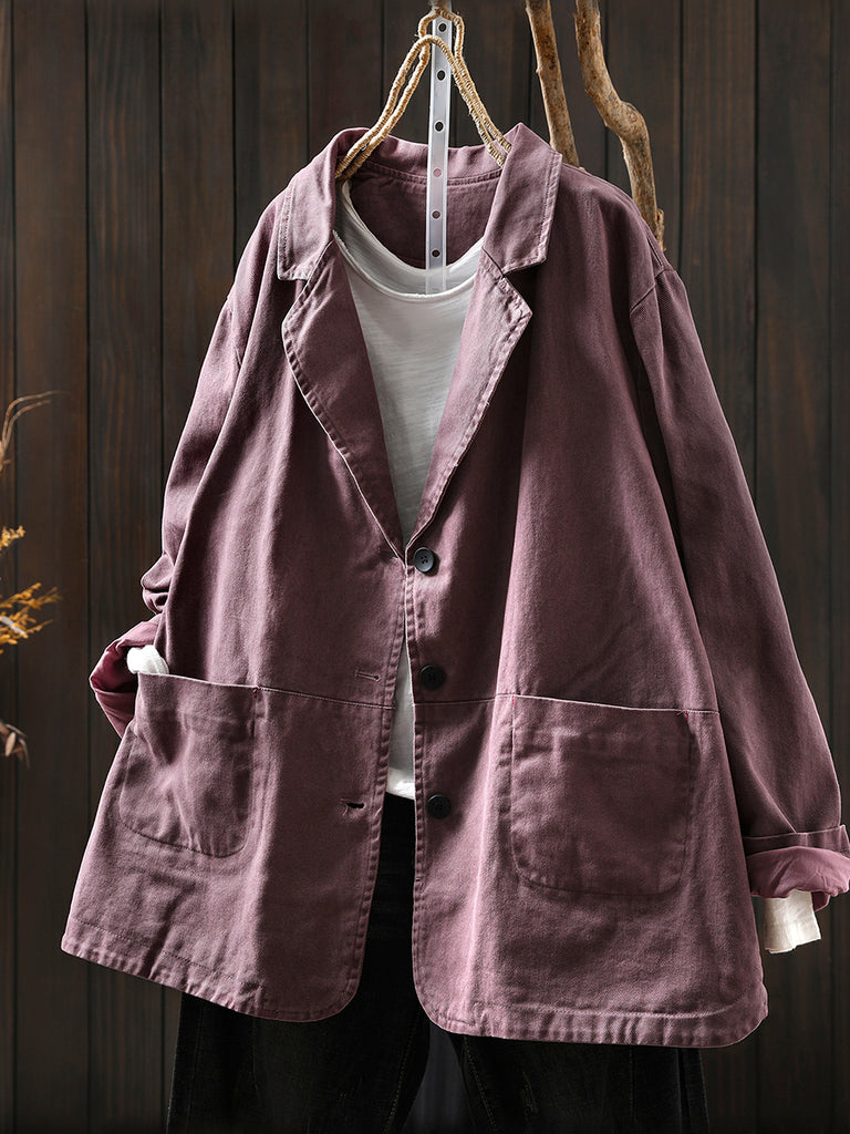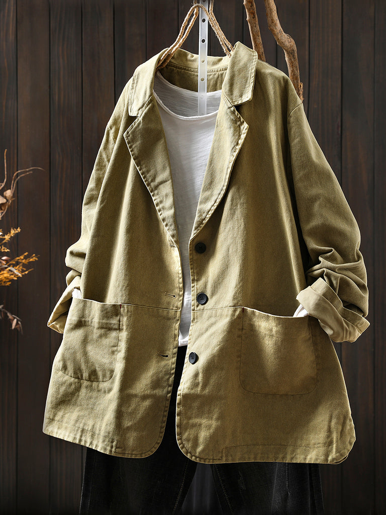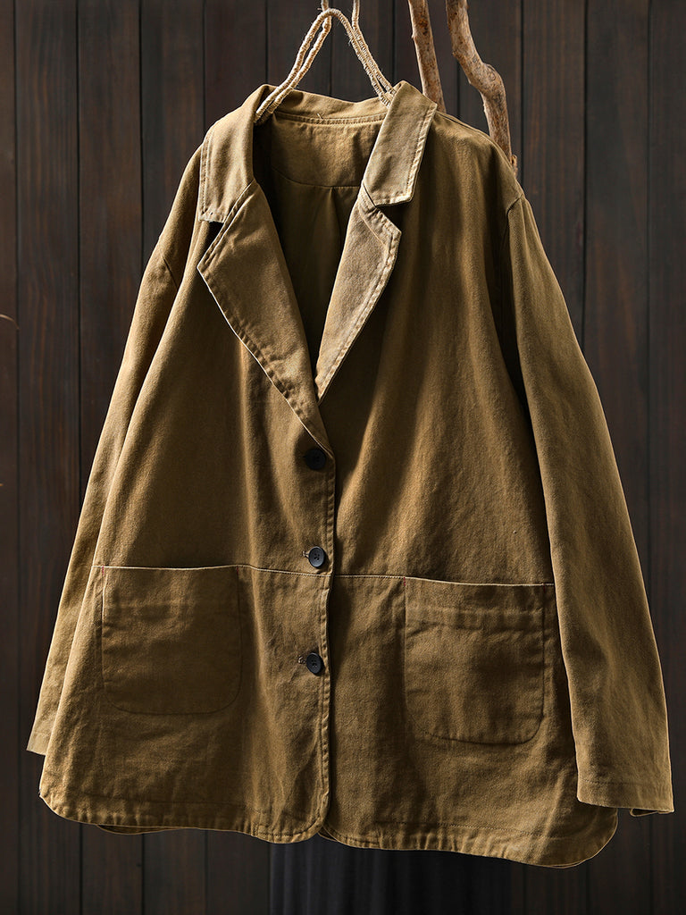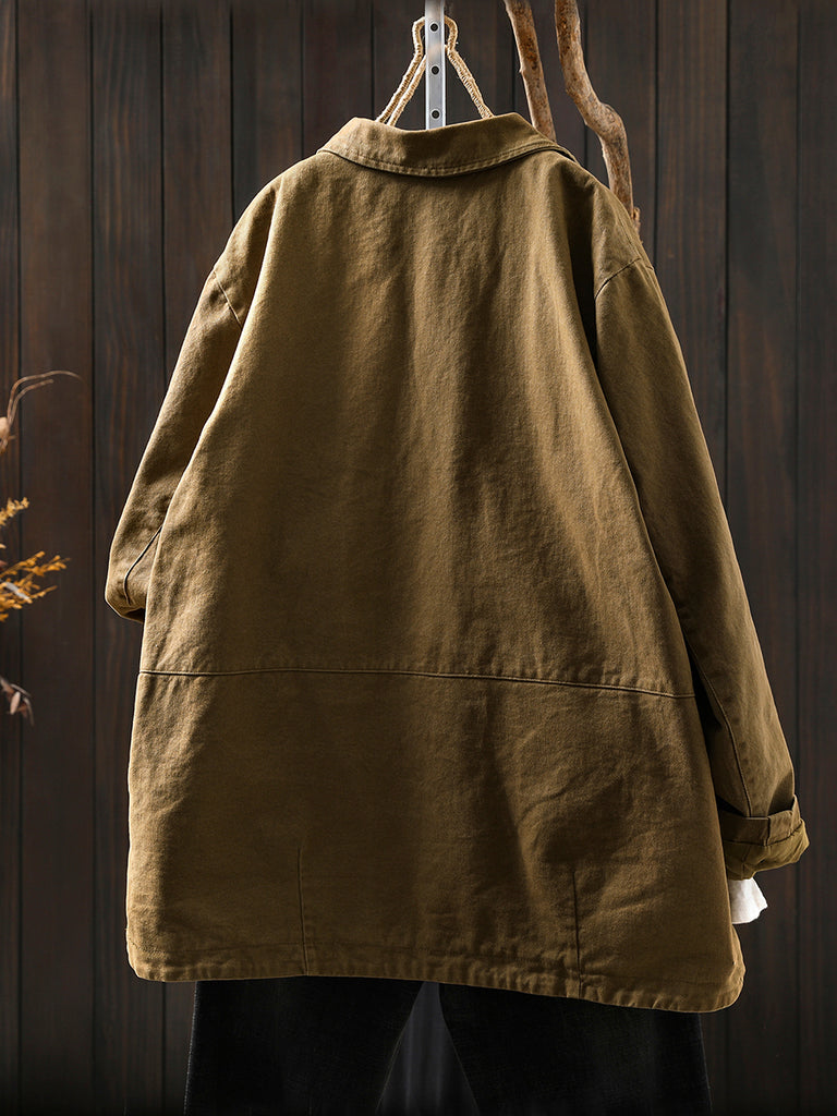 Women Autumn Vintage Pure Color Cotton Jacket