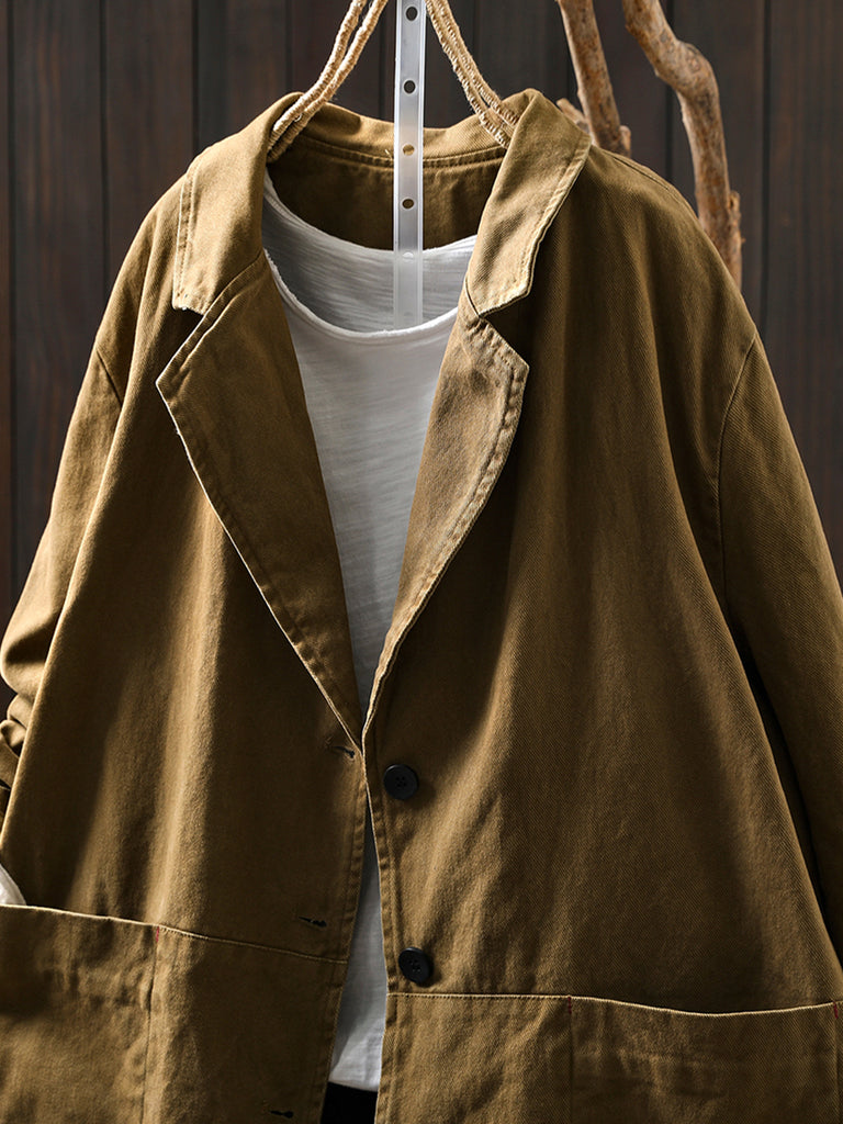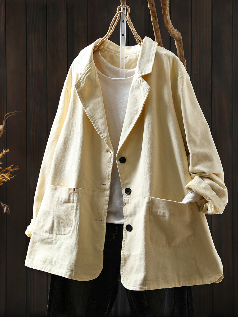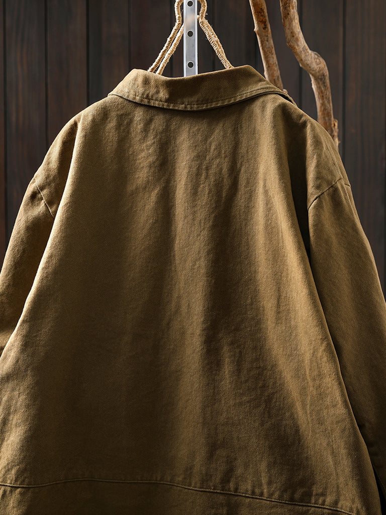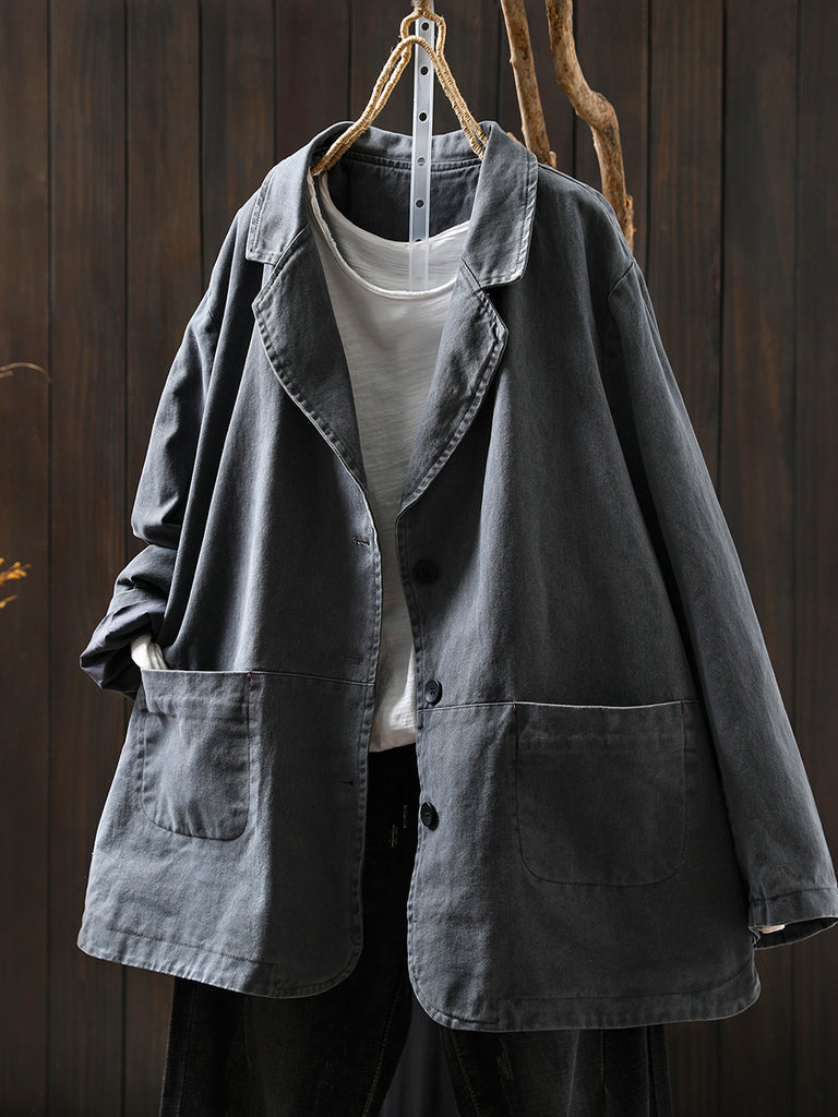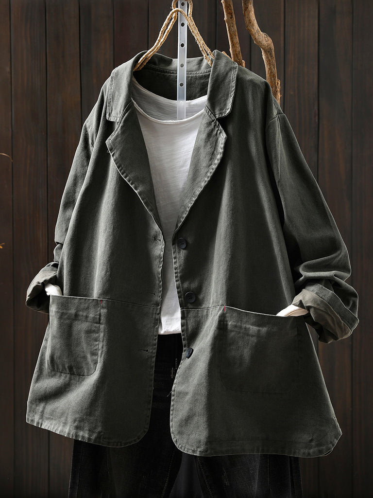 Women Autumn Vintage Pure Color Cotton Jacket