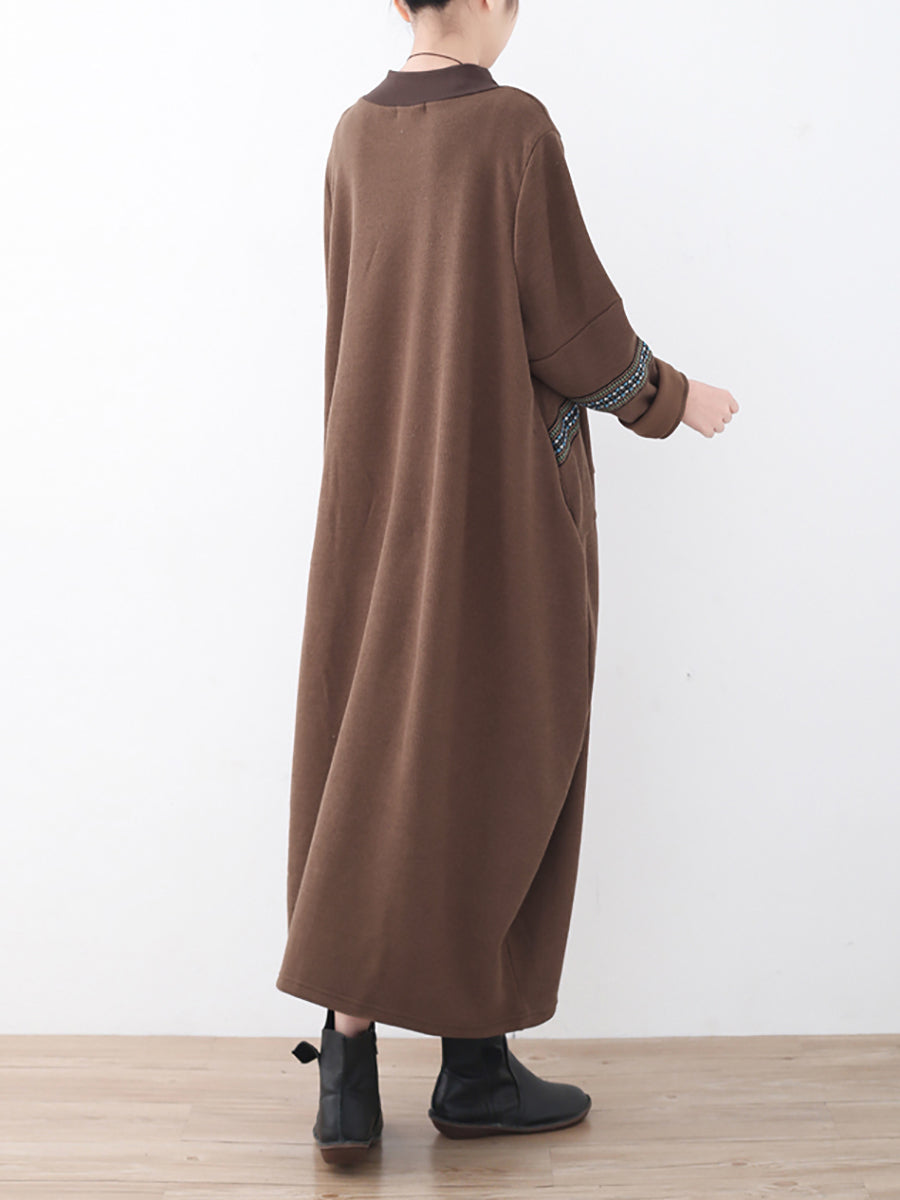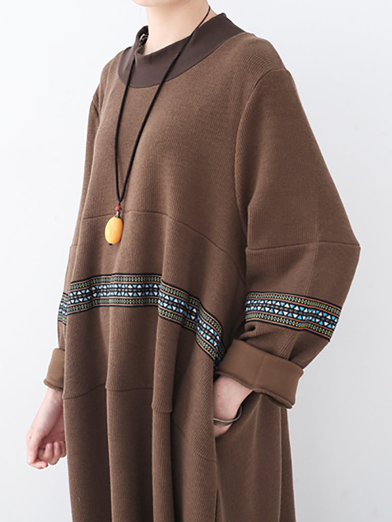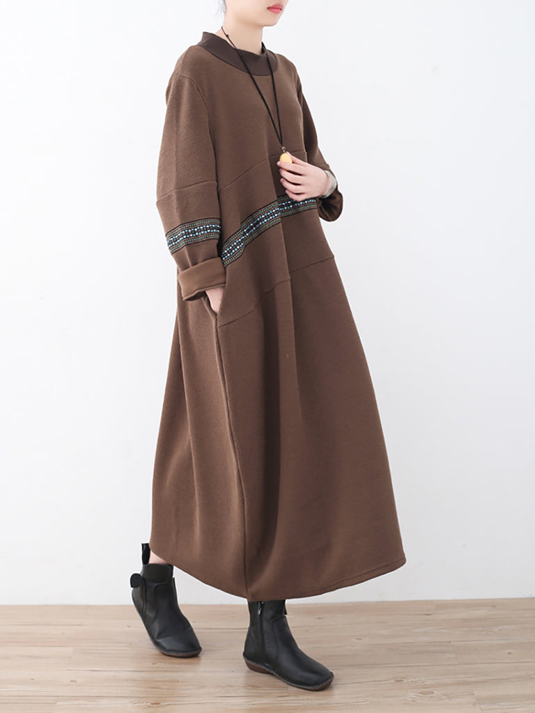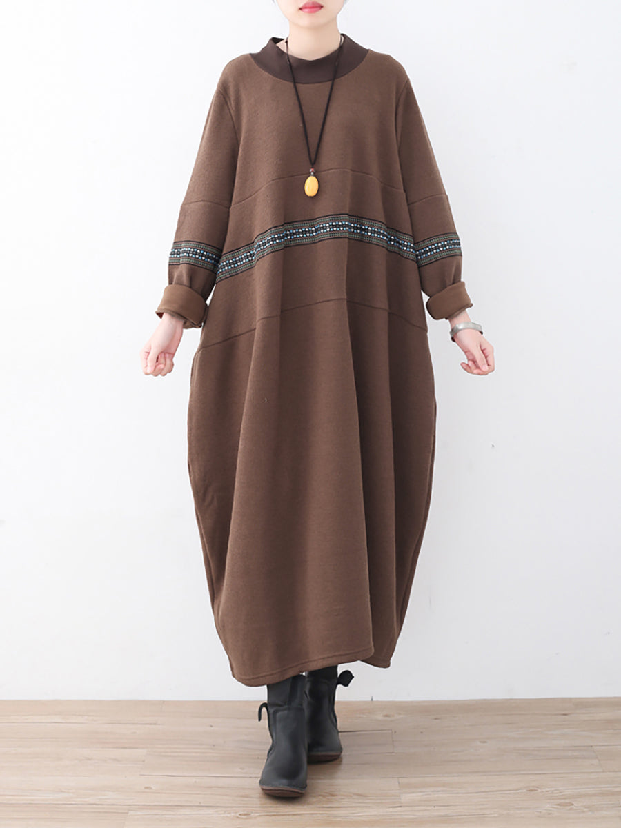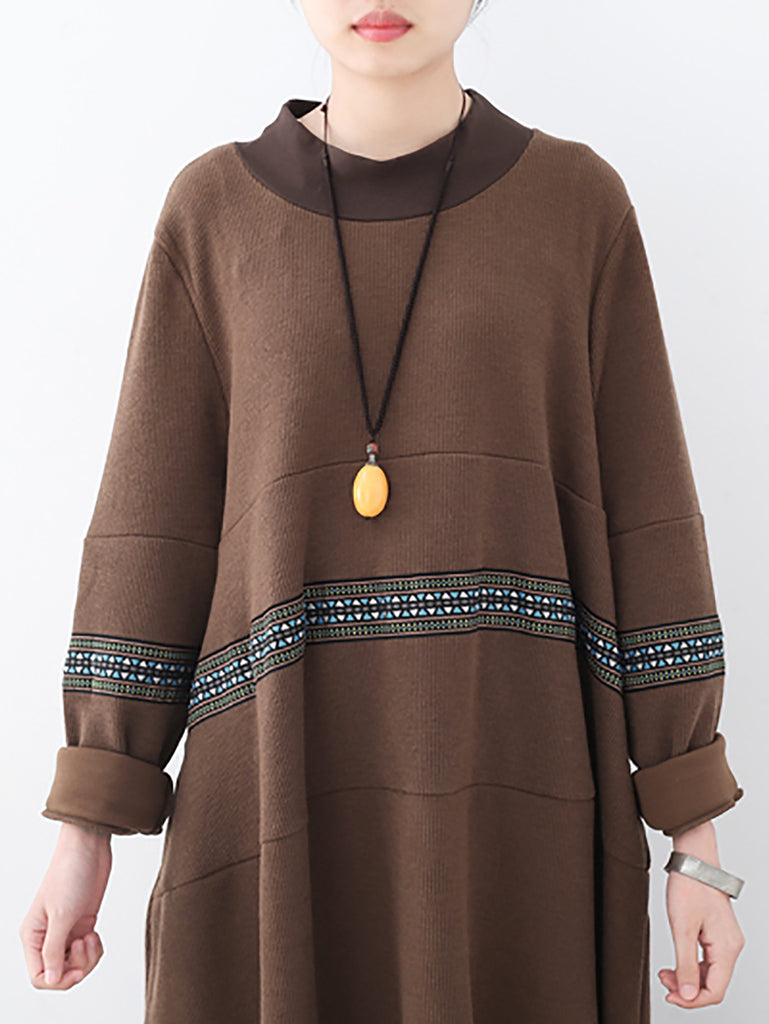 This dress is made from a material blend of polyester and spandex, featuring a half turtleneck collar and colorblock design. The sleeves are regular length and full, while the dress itself falls to ankle length. This dress is perfect for the spring and autumn seasons, adding a pop of color to your wardrobe.