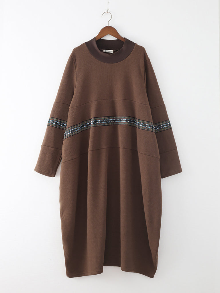 Women Casual Autumn Colorblock Half Turtleneck Spliced Dress