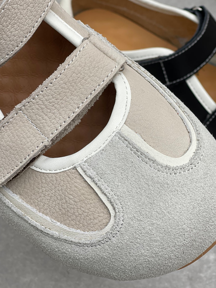 Women Casual Genuine Leather Spliced Low Heel Shoes