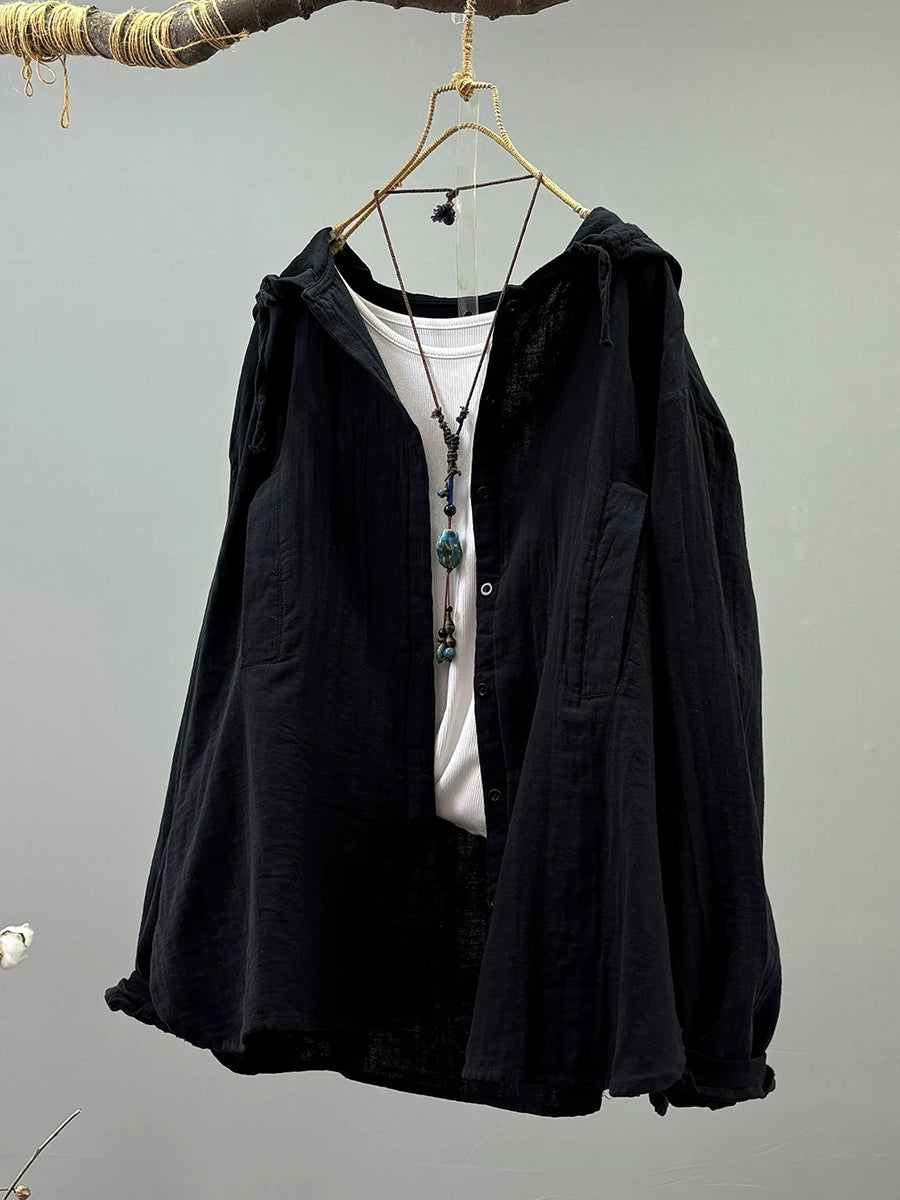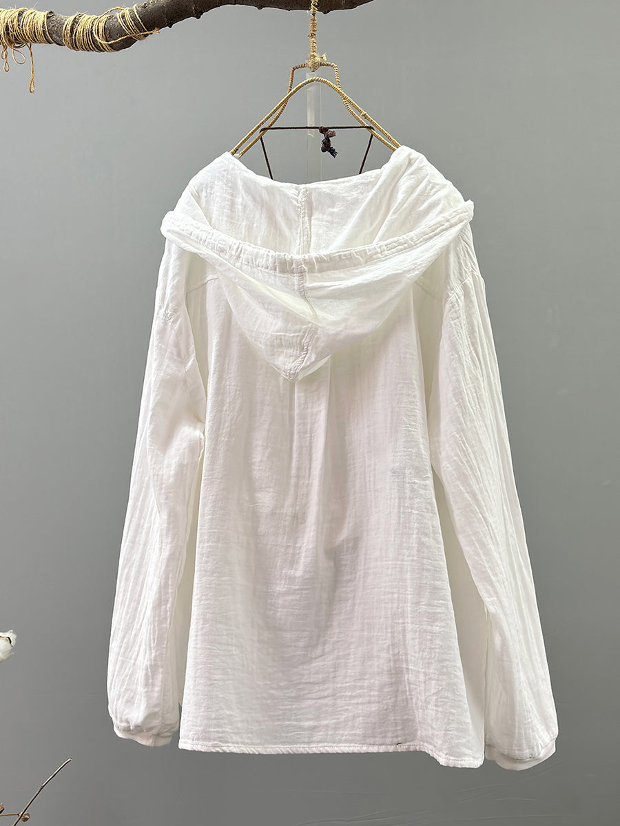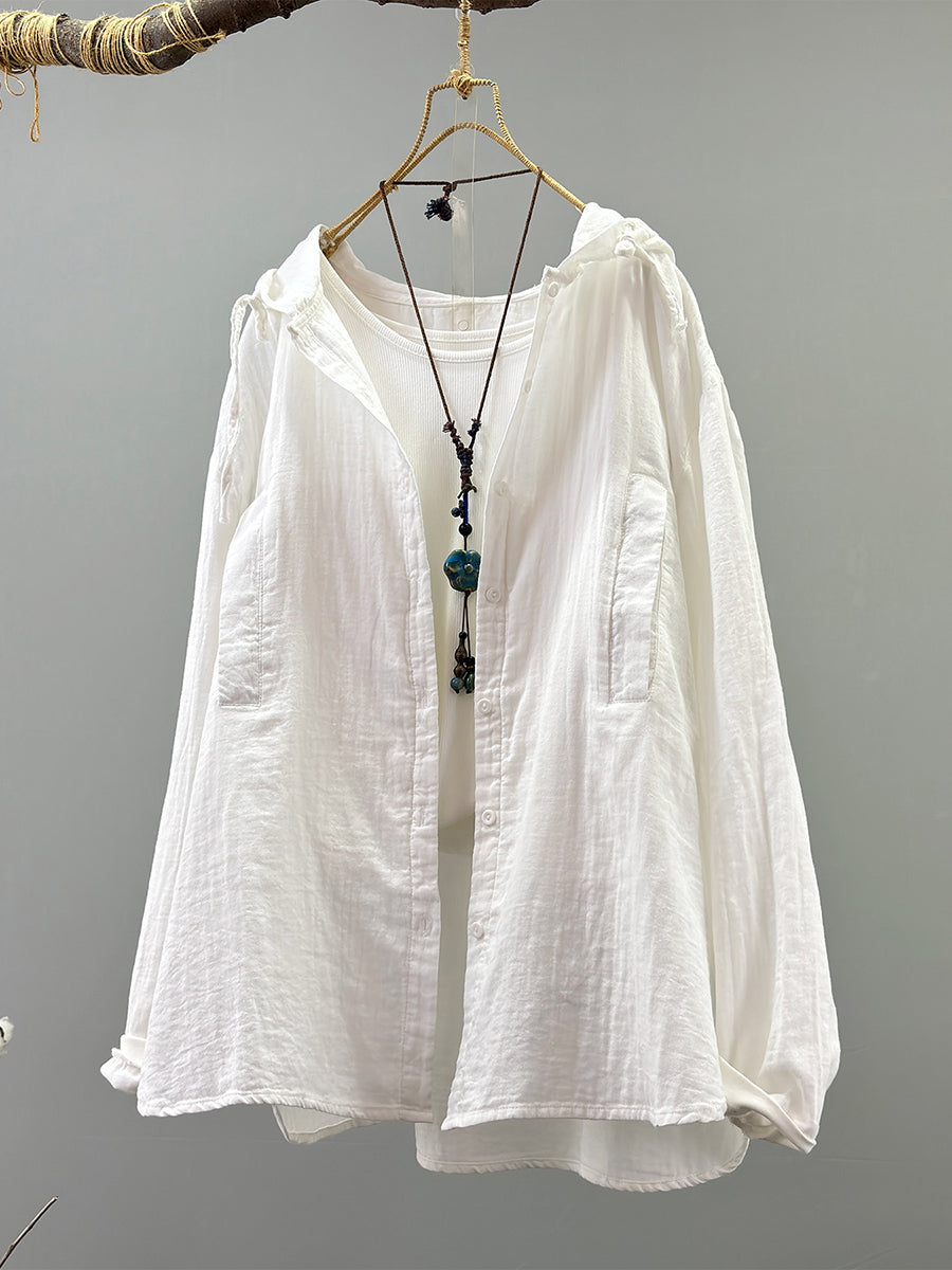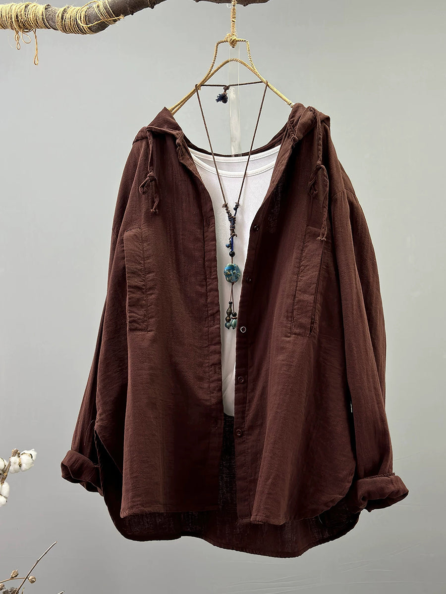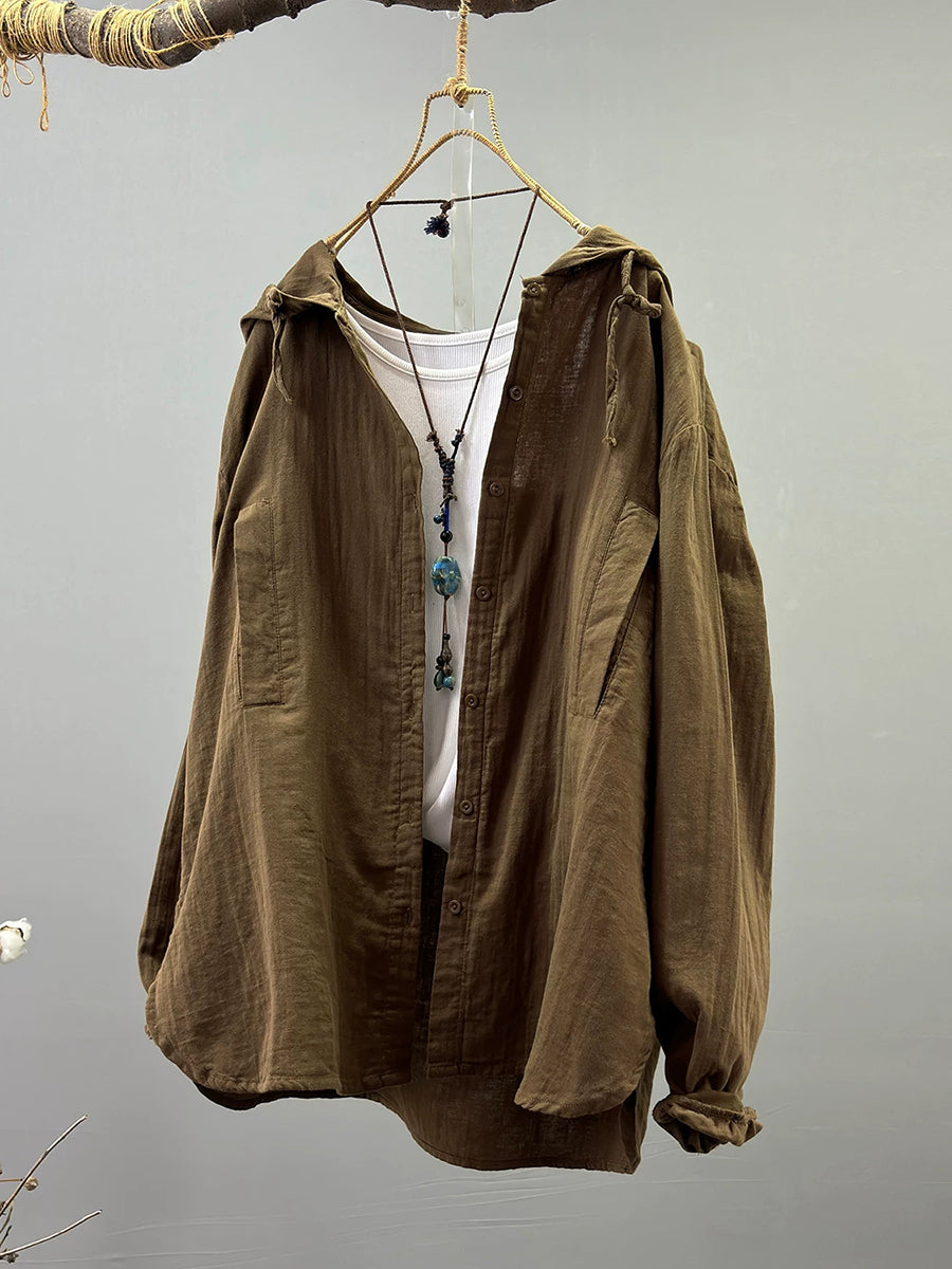 Women Casual Pure Color 100%Cotton Hooded Coat