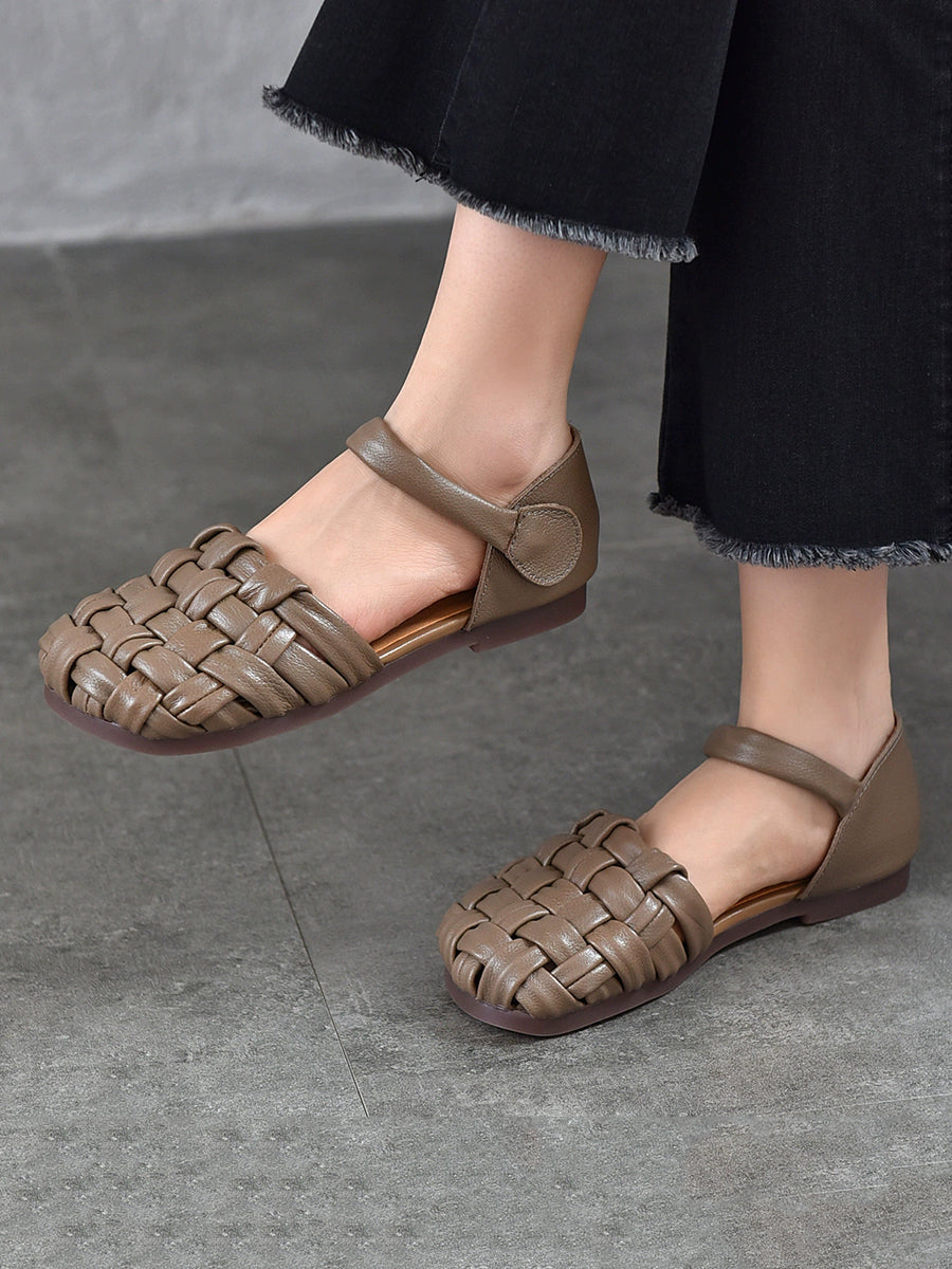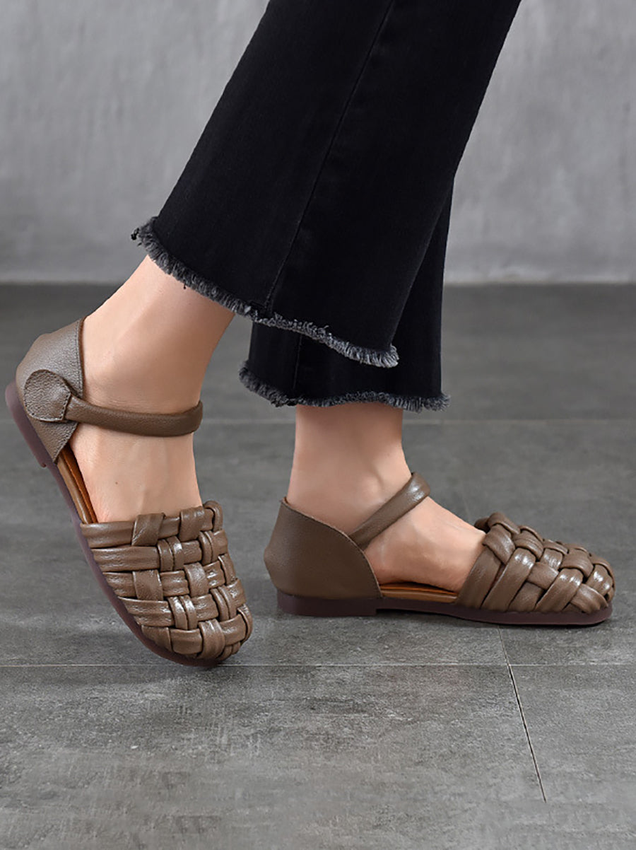 Women Casual Summer Leather Flat Sandals