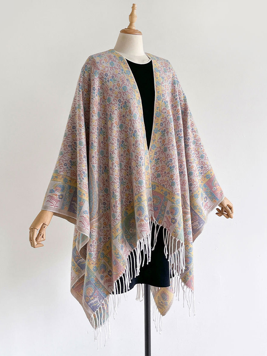 Women Ethnic Floral Jacquard Tassel Shawl Scarf