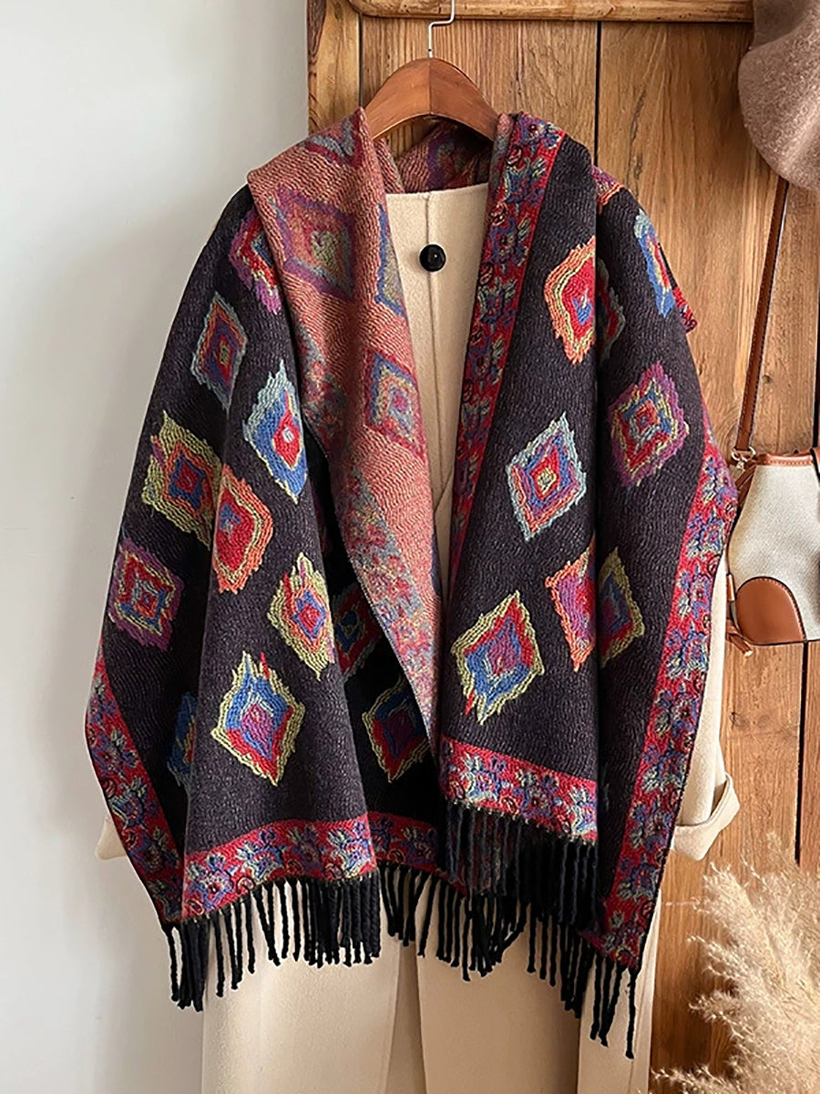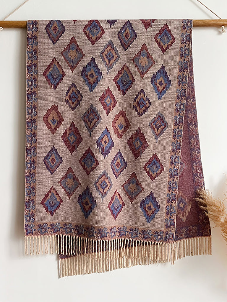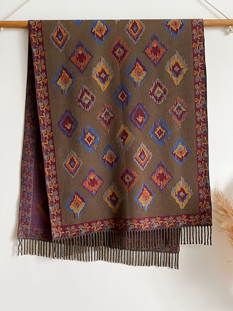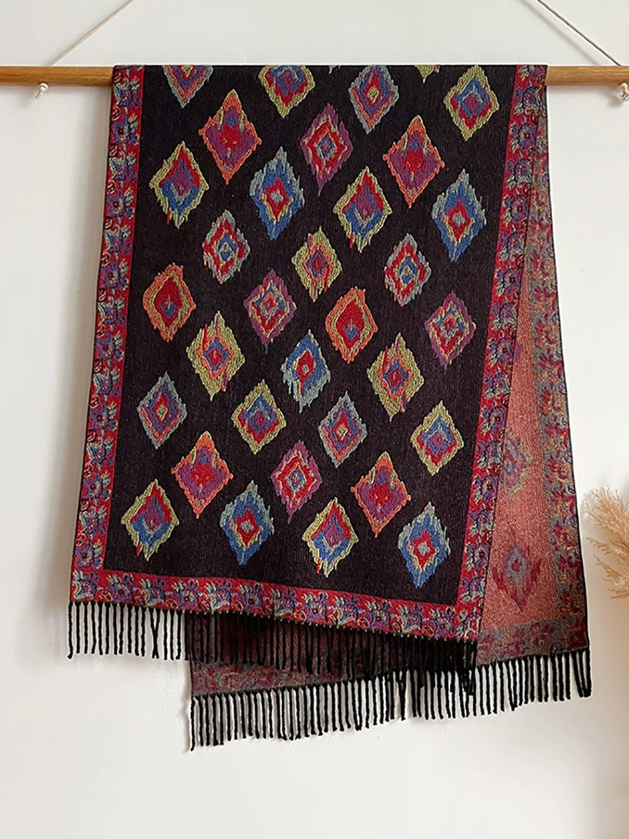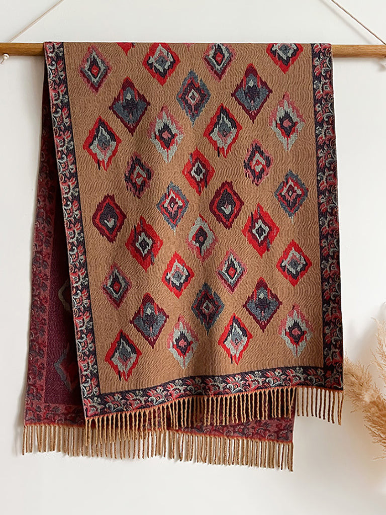 Women Ethnic Rhomboids Tassel Shawl Scarf