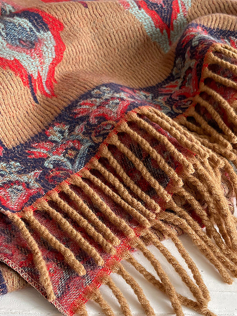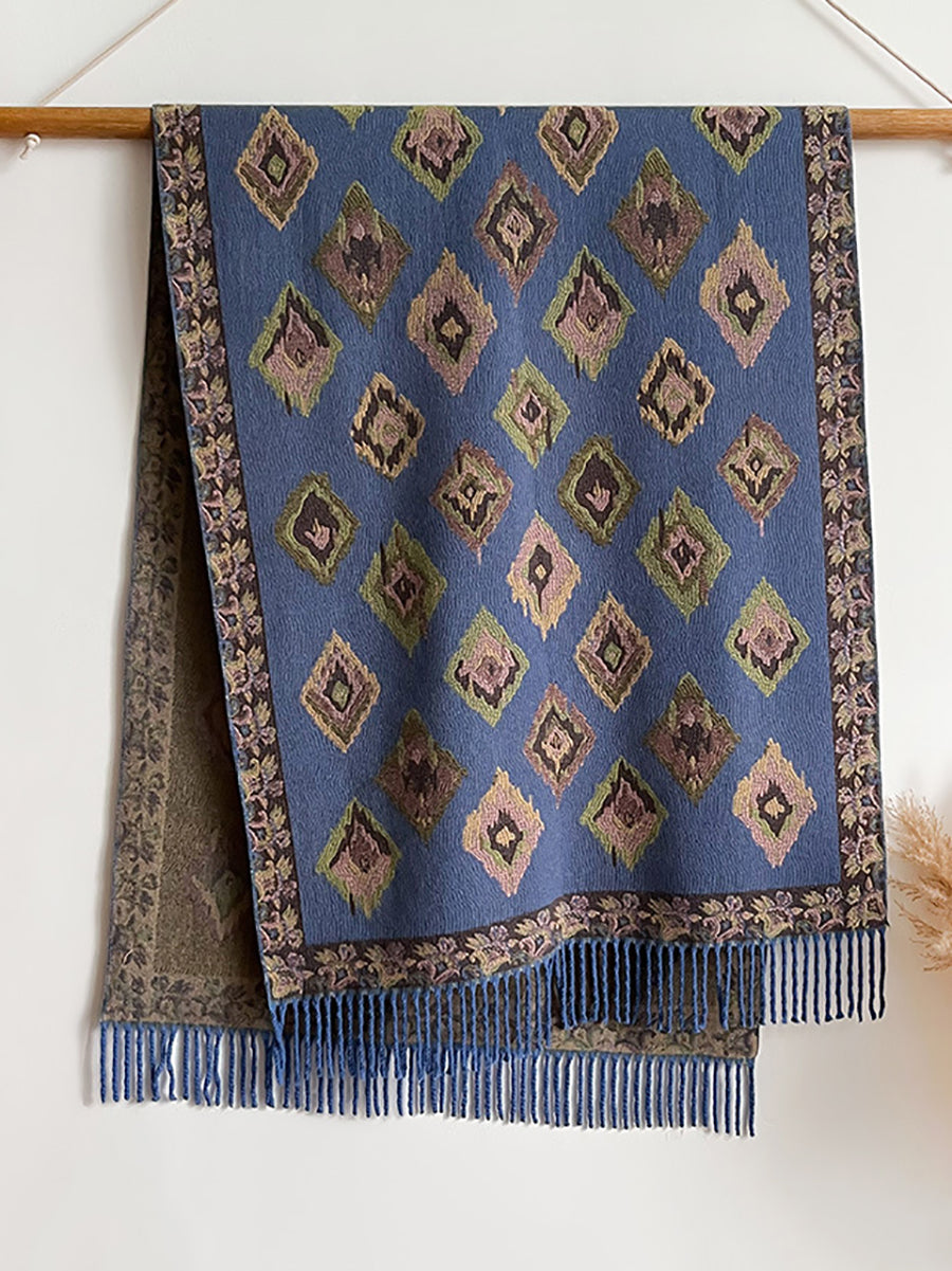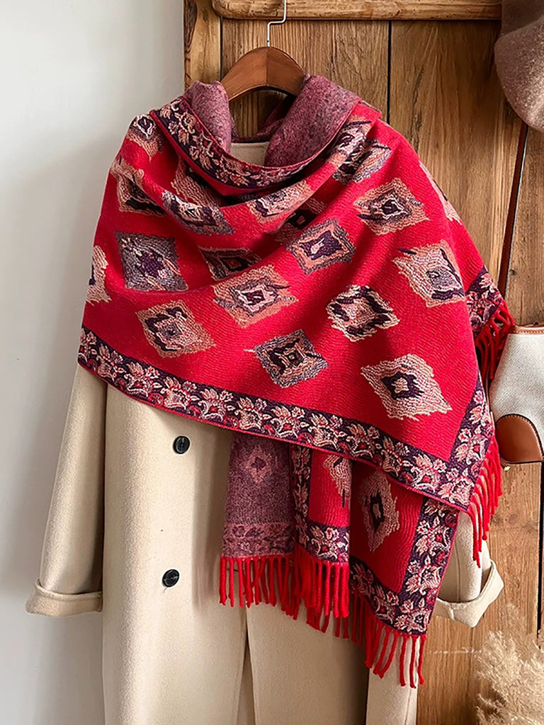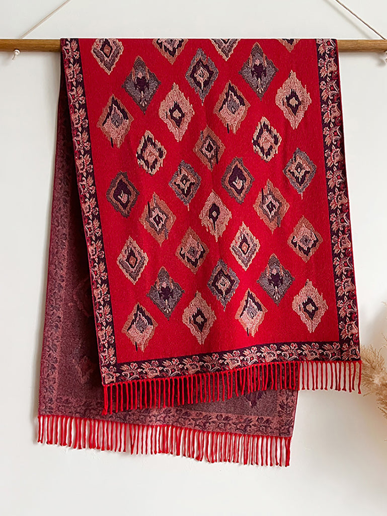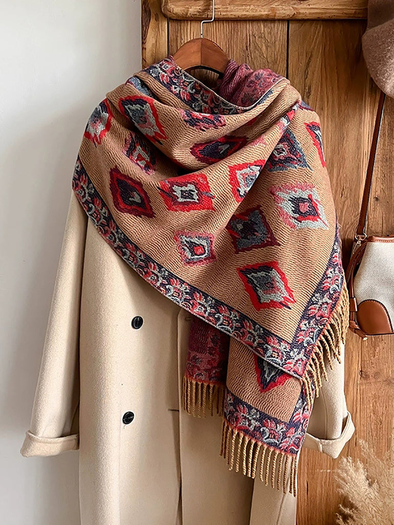 Women Ethnic Rhomboids Tassel Shawl Scarf