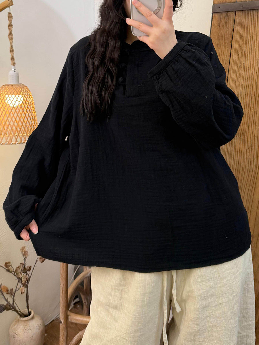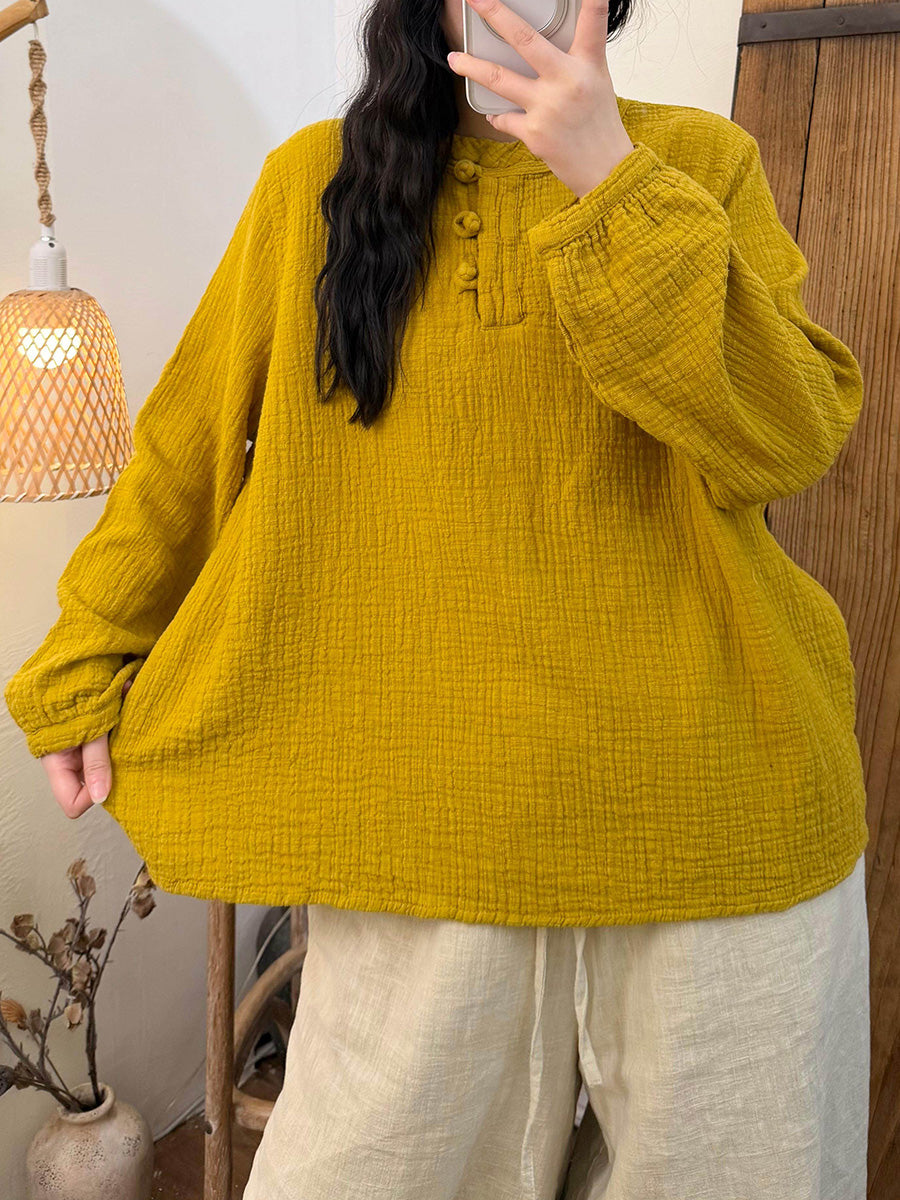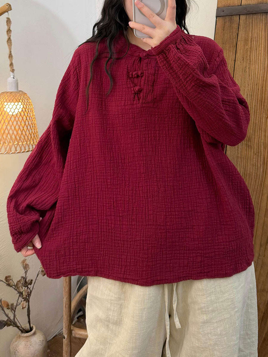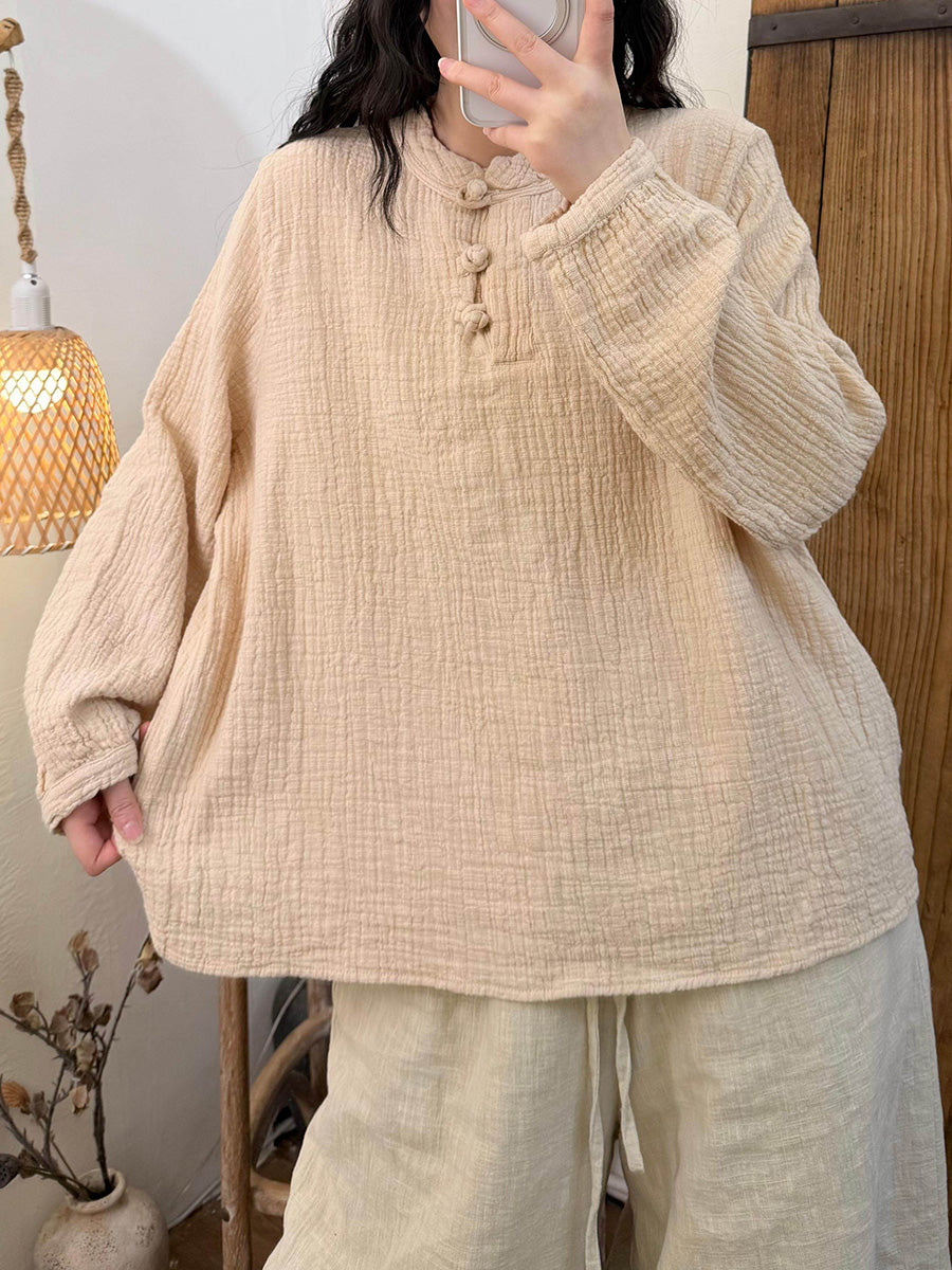 Women Ethnic Spring Pure Color Stand Collar Blouse