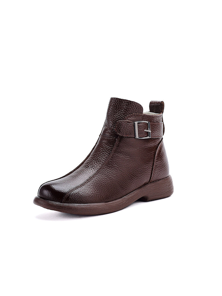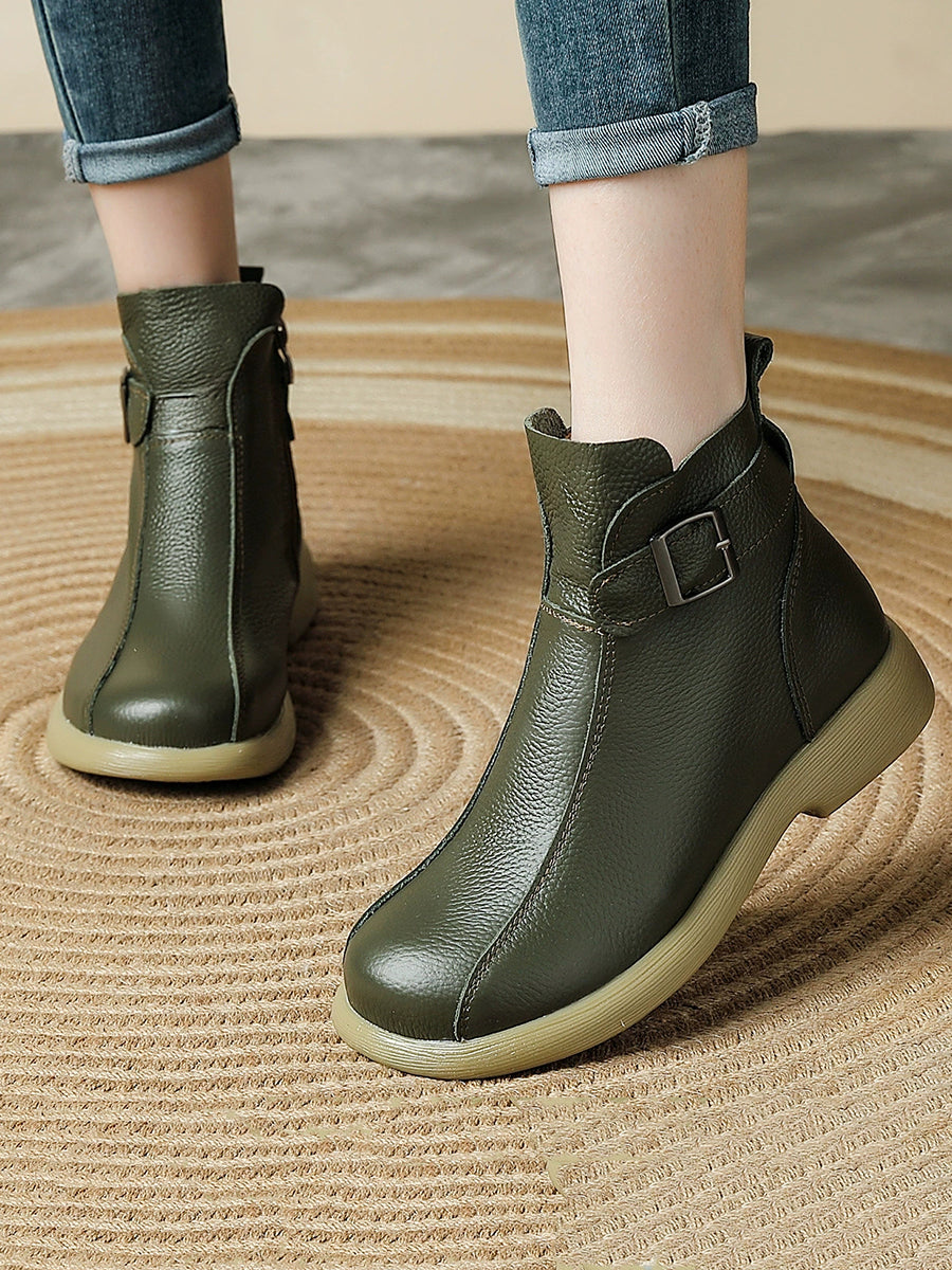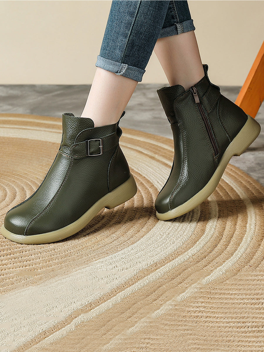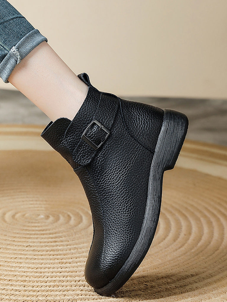 Women Genuine Leather Fleece-lined Ankle Boots