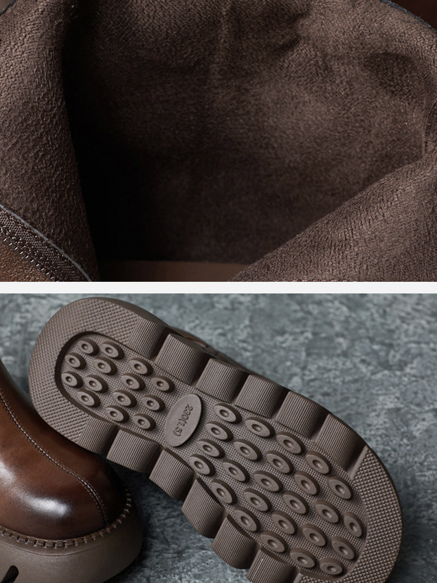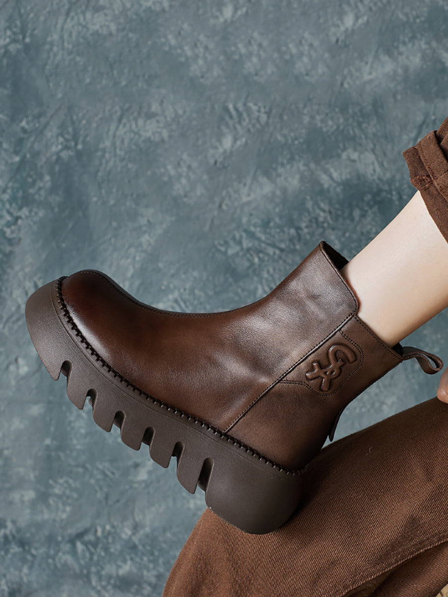 Women Retro Genuine Leather Platform Boots