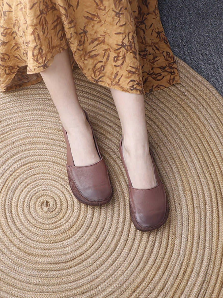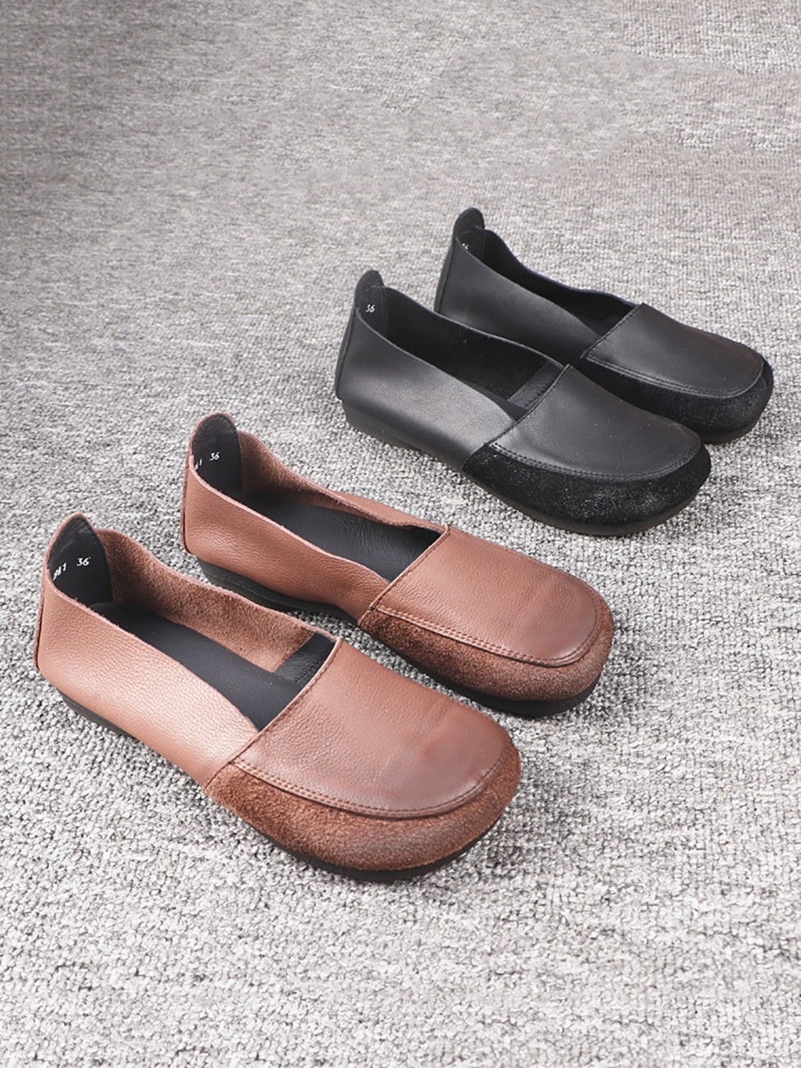 Women Retro Genuine Leather Spliced Low Heel Shoes