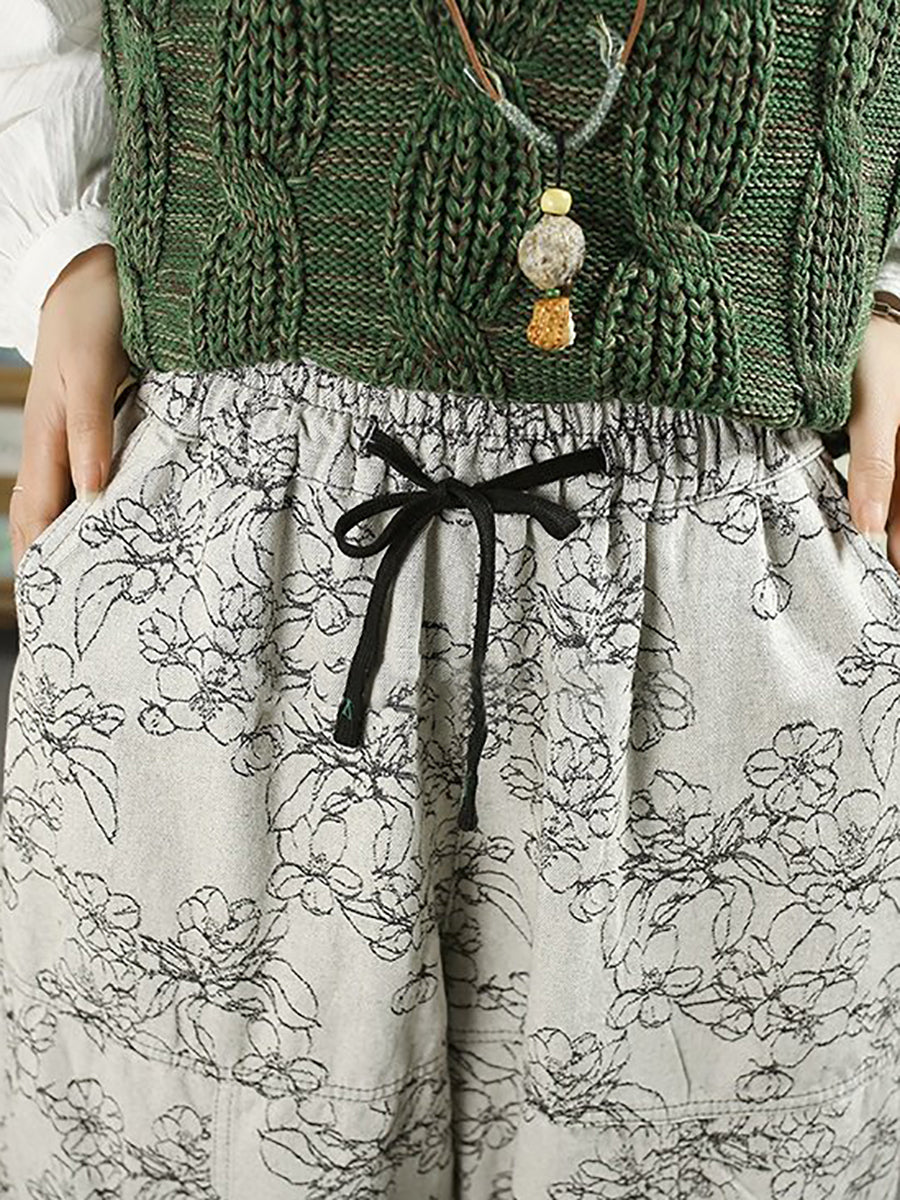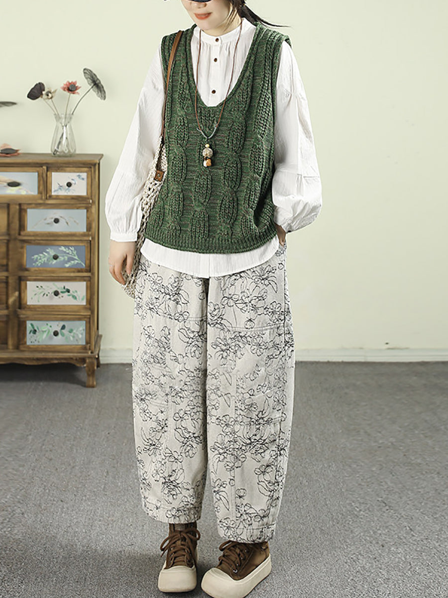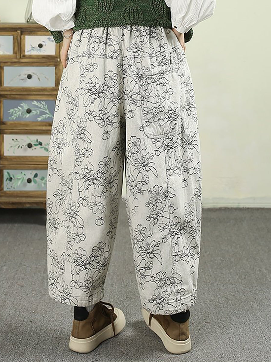 Women Spring Artsy Denim Flower Harem Pants