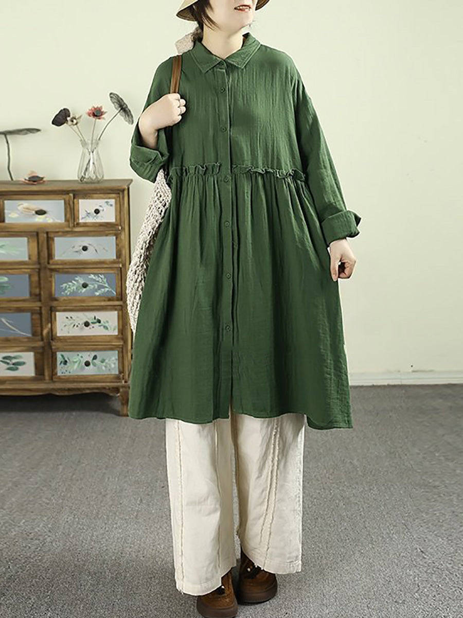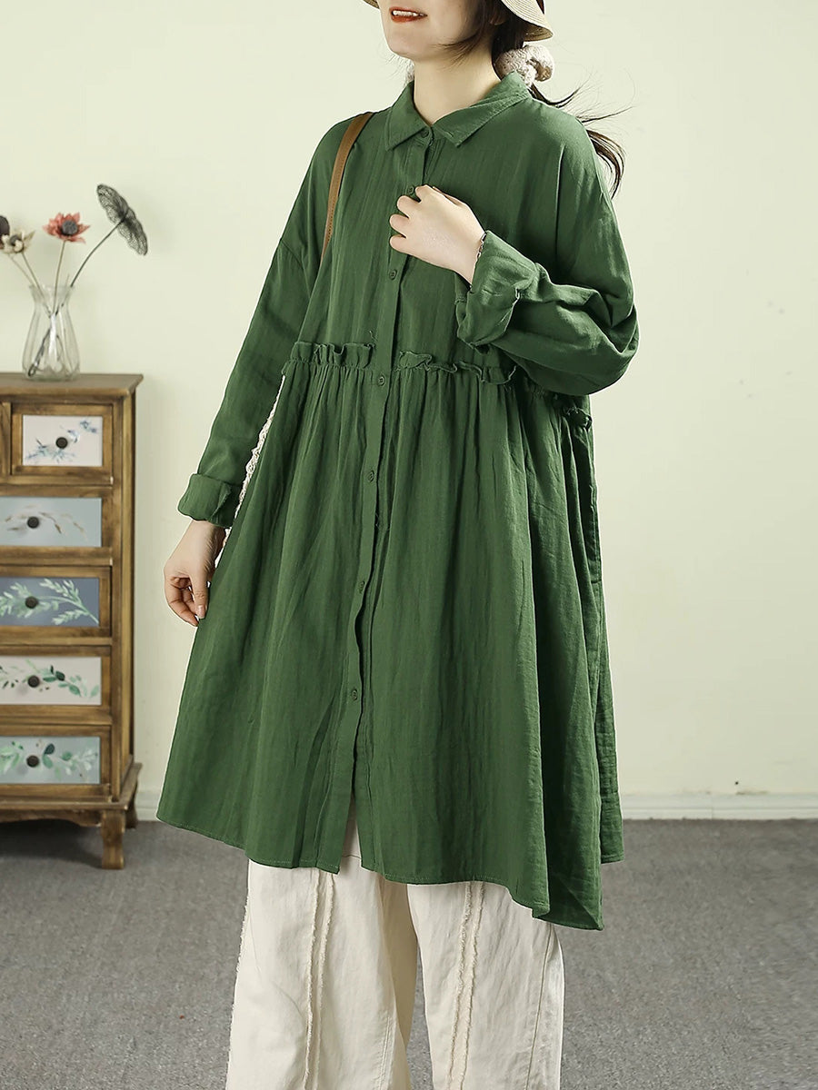 Women Spring Artsy Pure Color 100%Cotton Dress