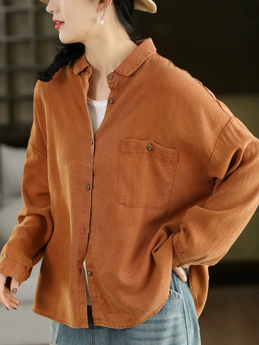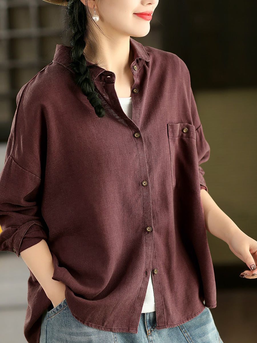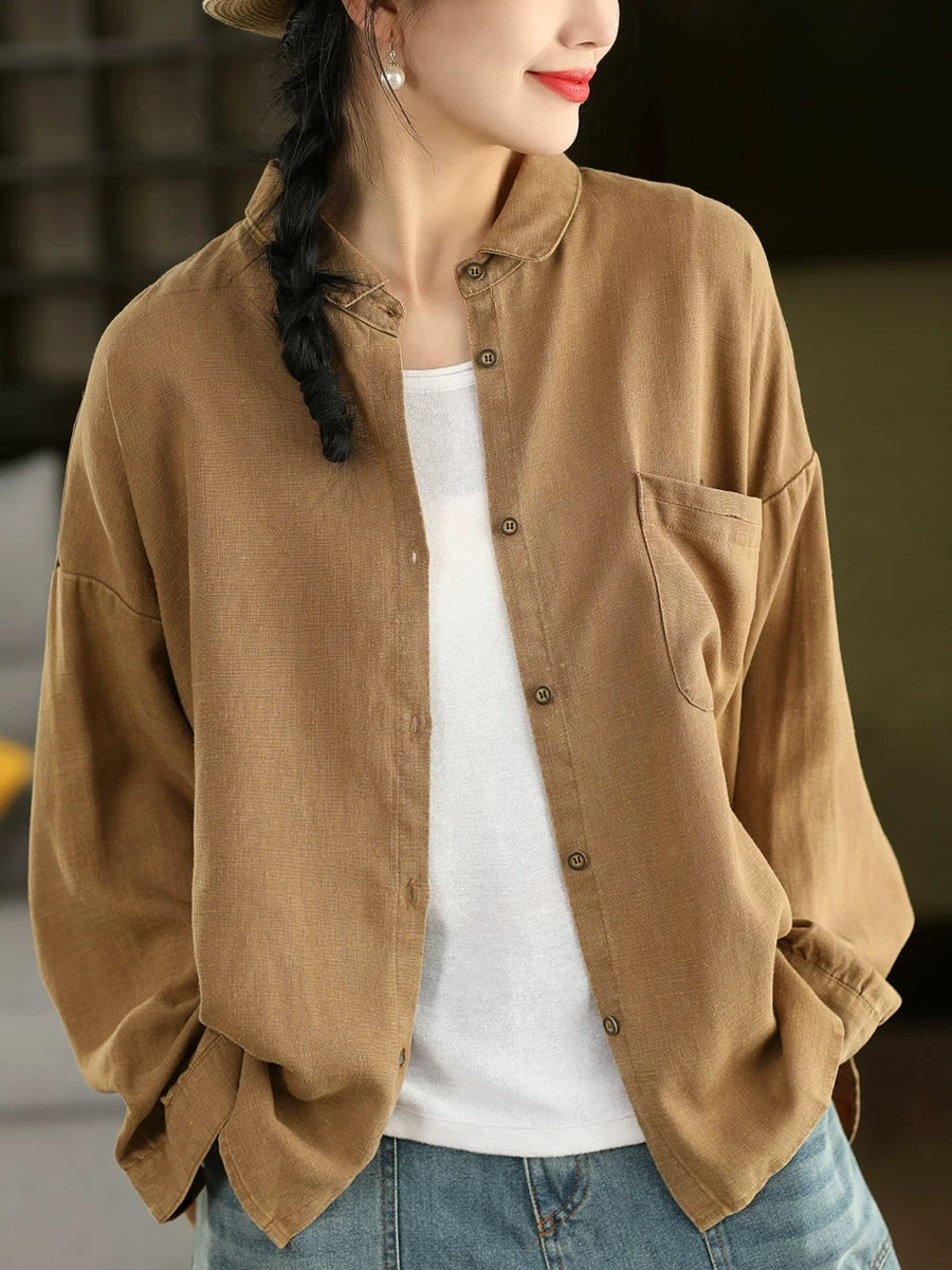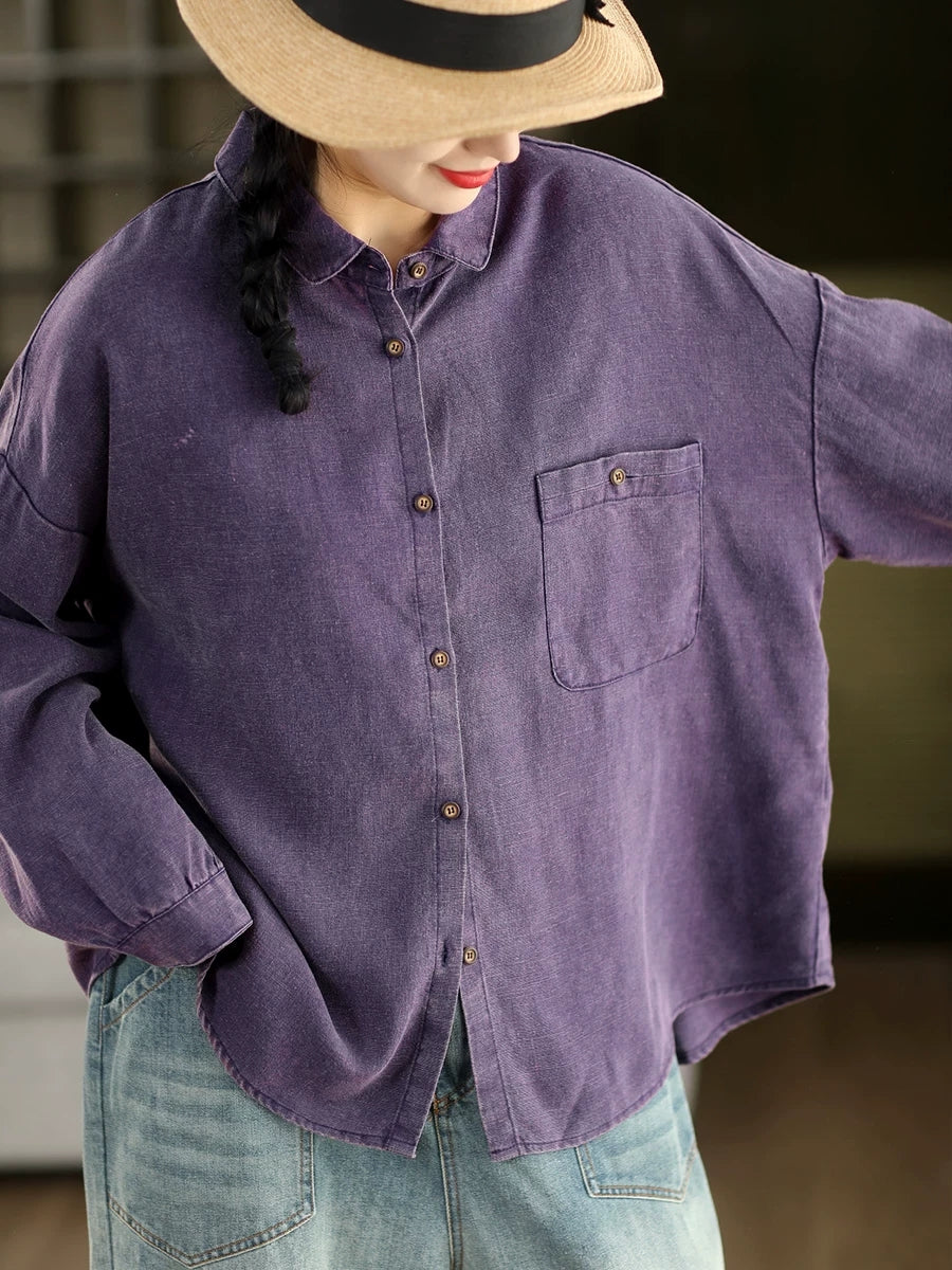 Women Spring Artsy Pure Color 100%Linen Shirt