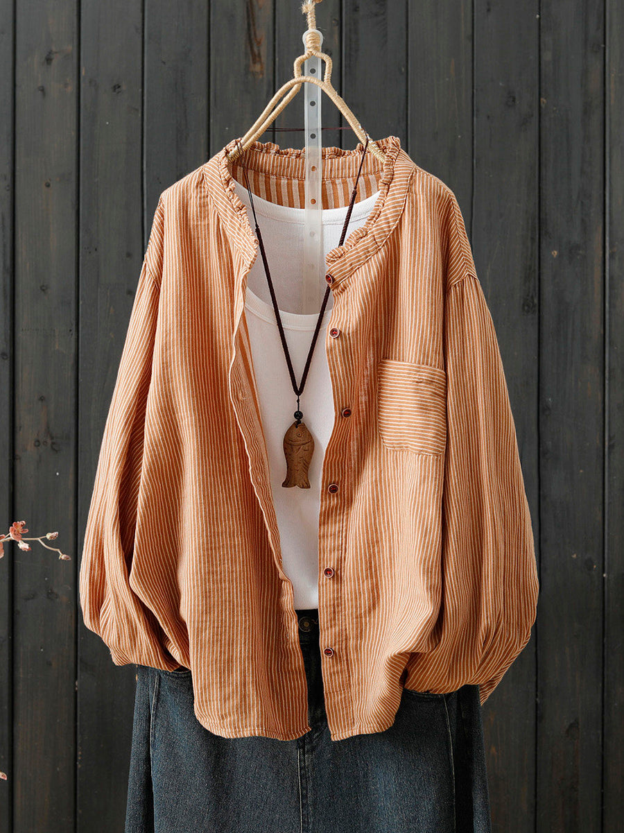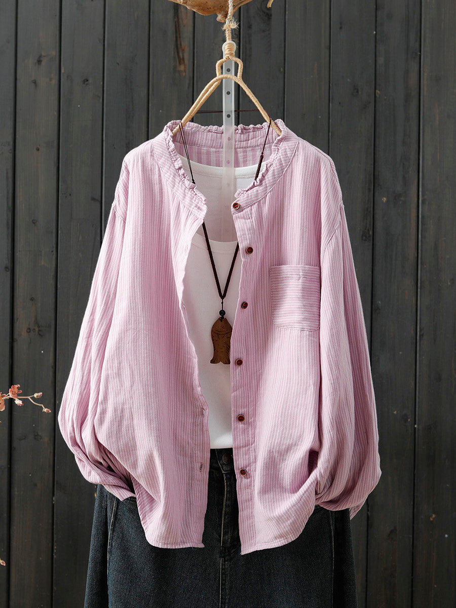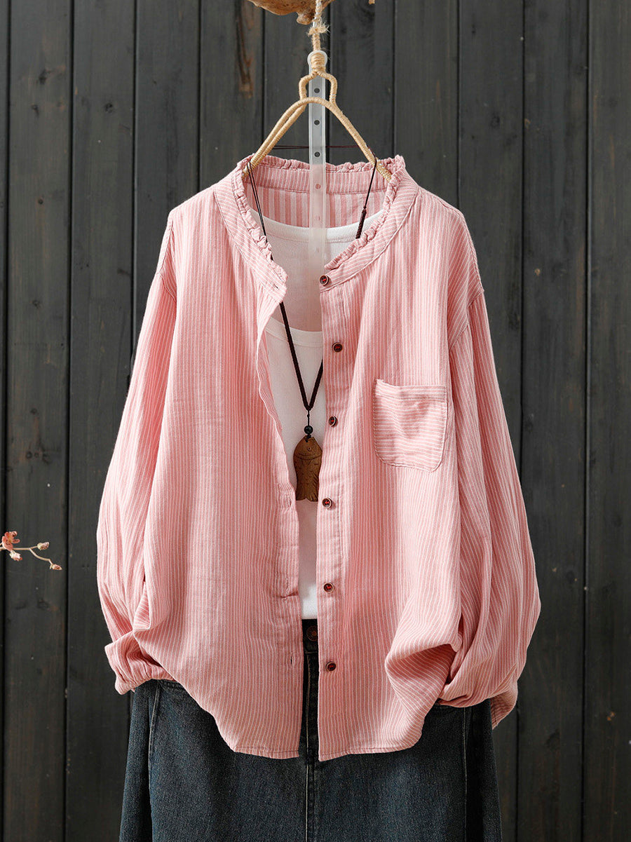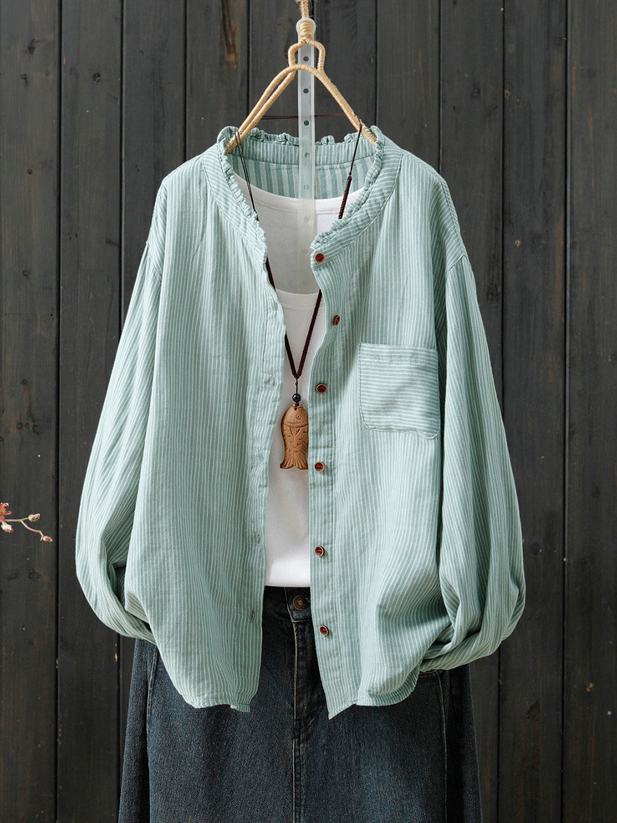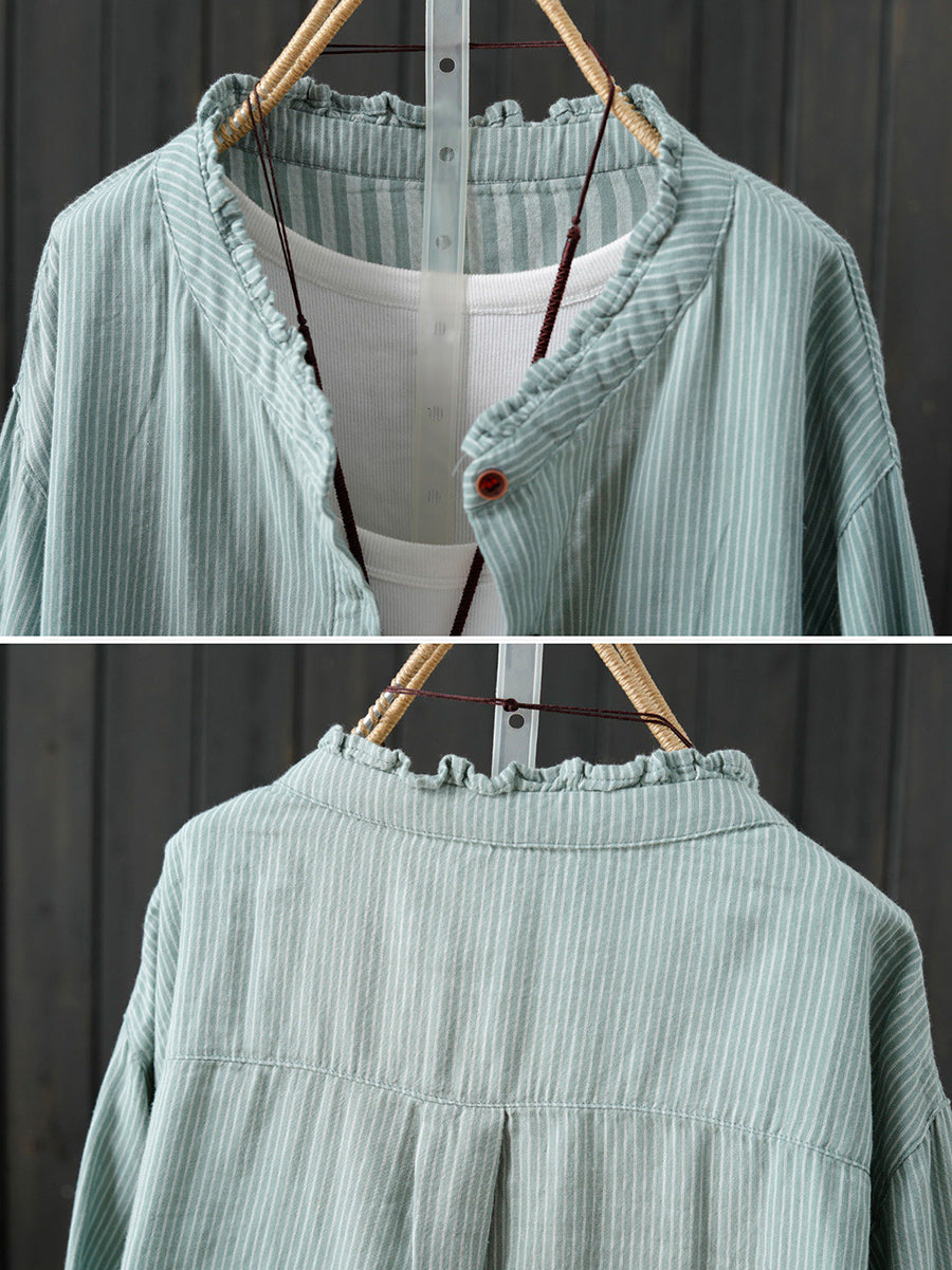 Women Spring Artsy Stripe 100%Cotton Shirt
